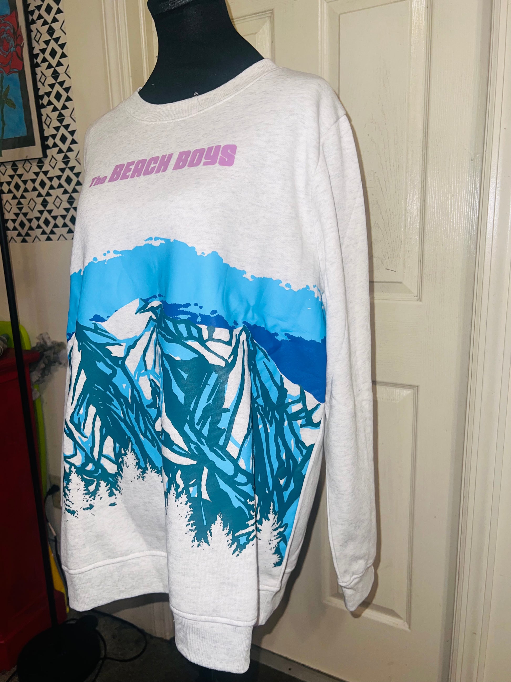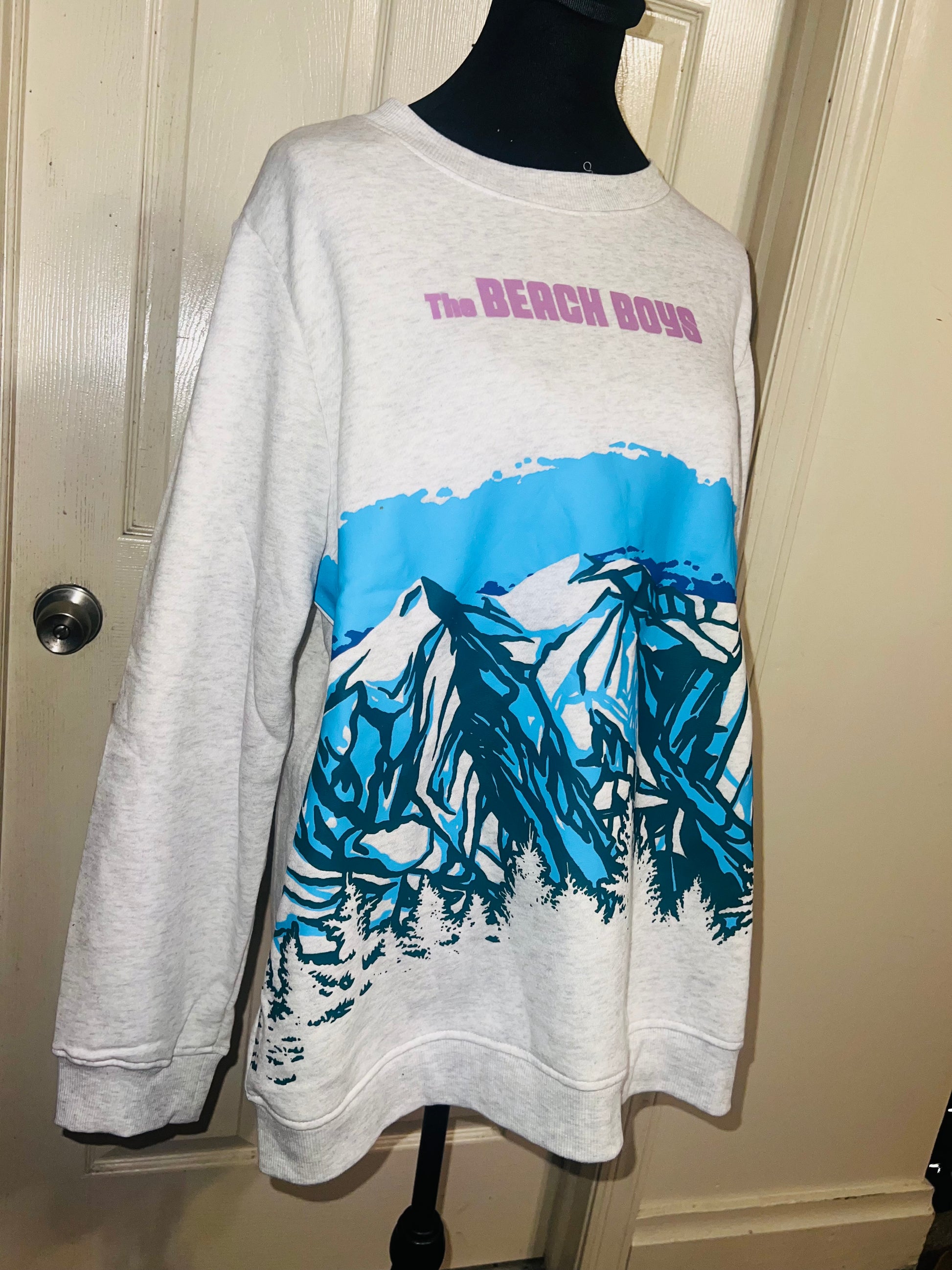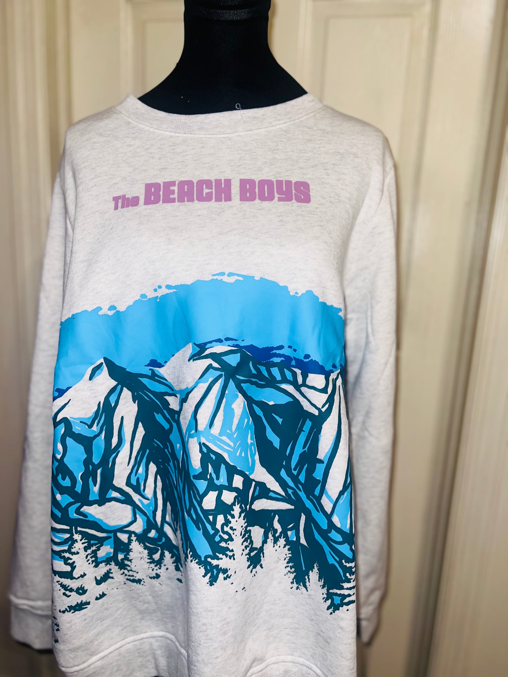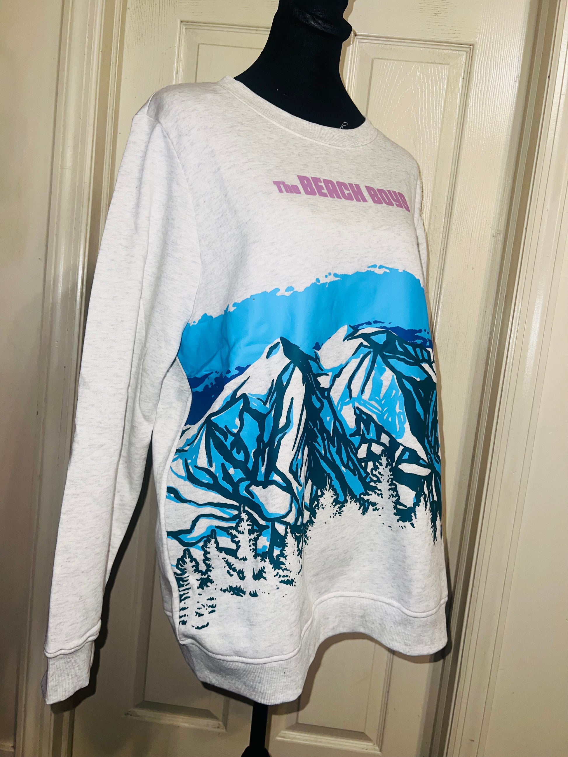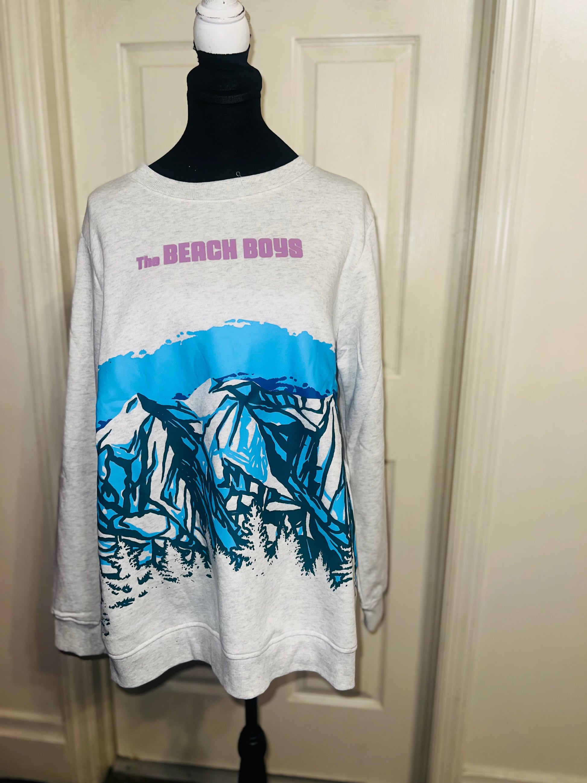 This is a preorder. Please allow extra processing time. Beach Boys sweatshirt with a cool mountain landscape on the front. I love this one. Size large, oversized.