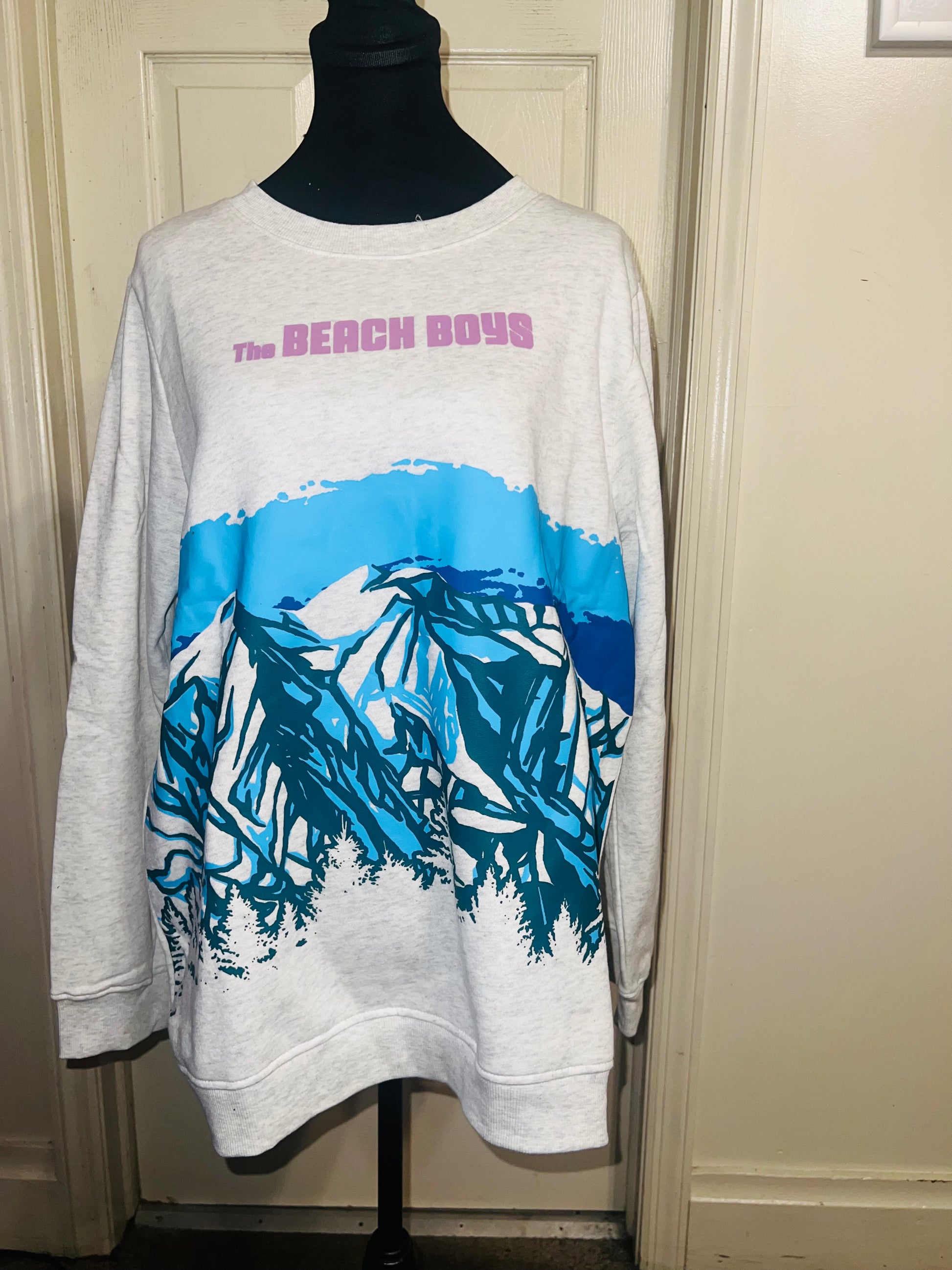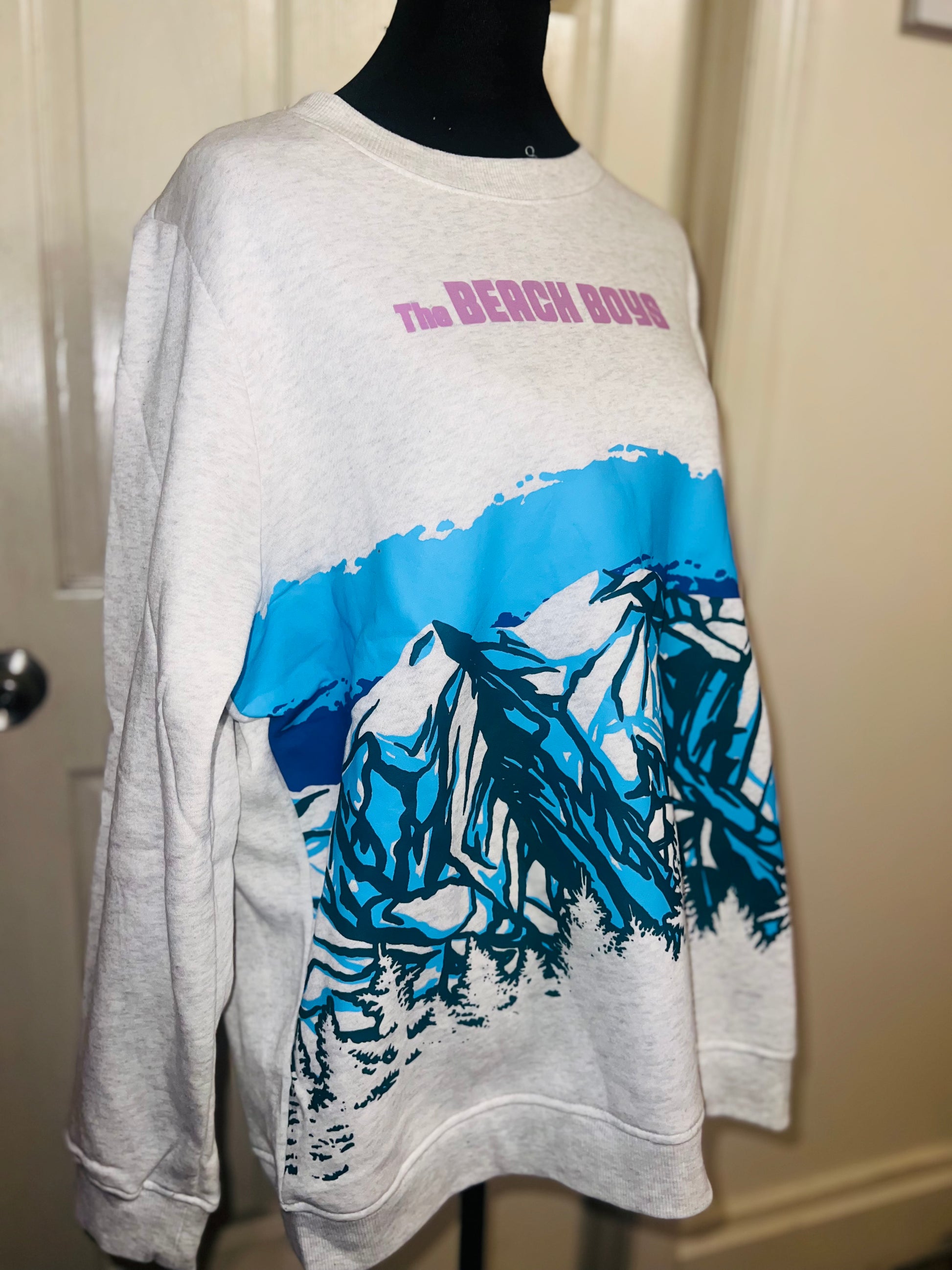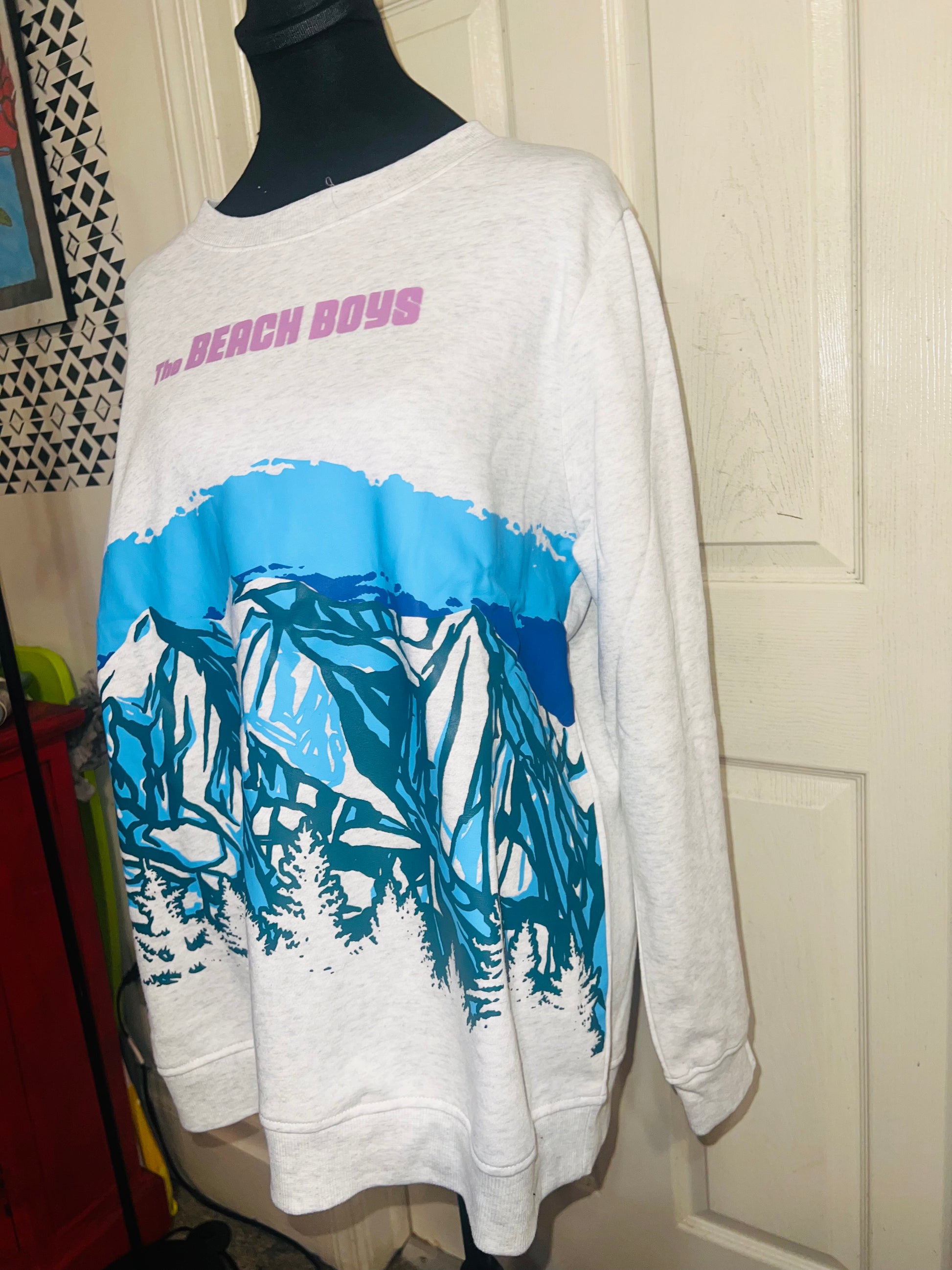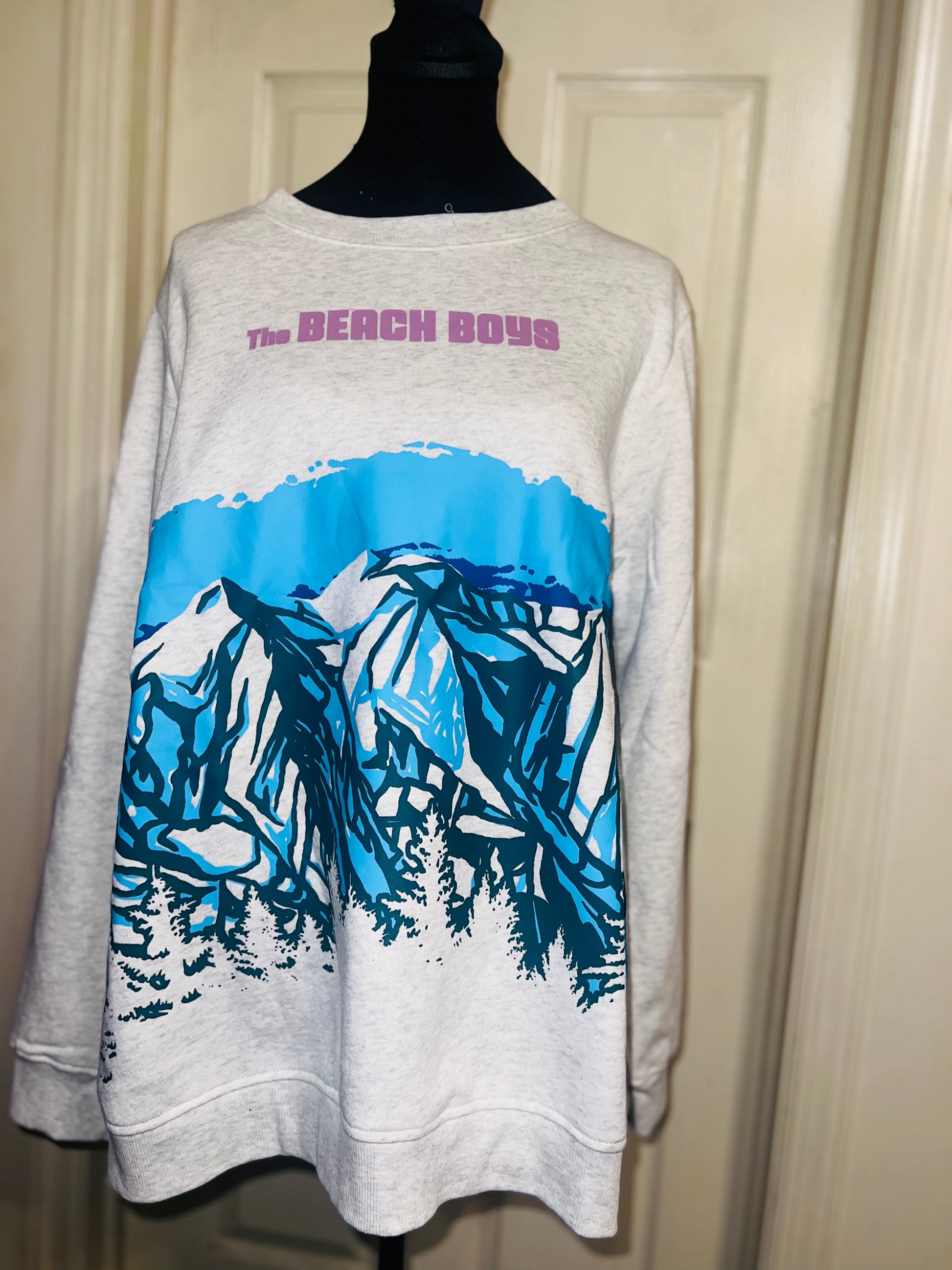 This is a preorder. Please allow extra processing time. Beach Boys sweatshirt with a cool mountain landscape on the front. I love this one. Size large, oversized.