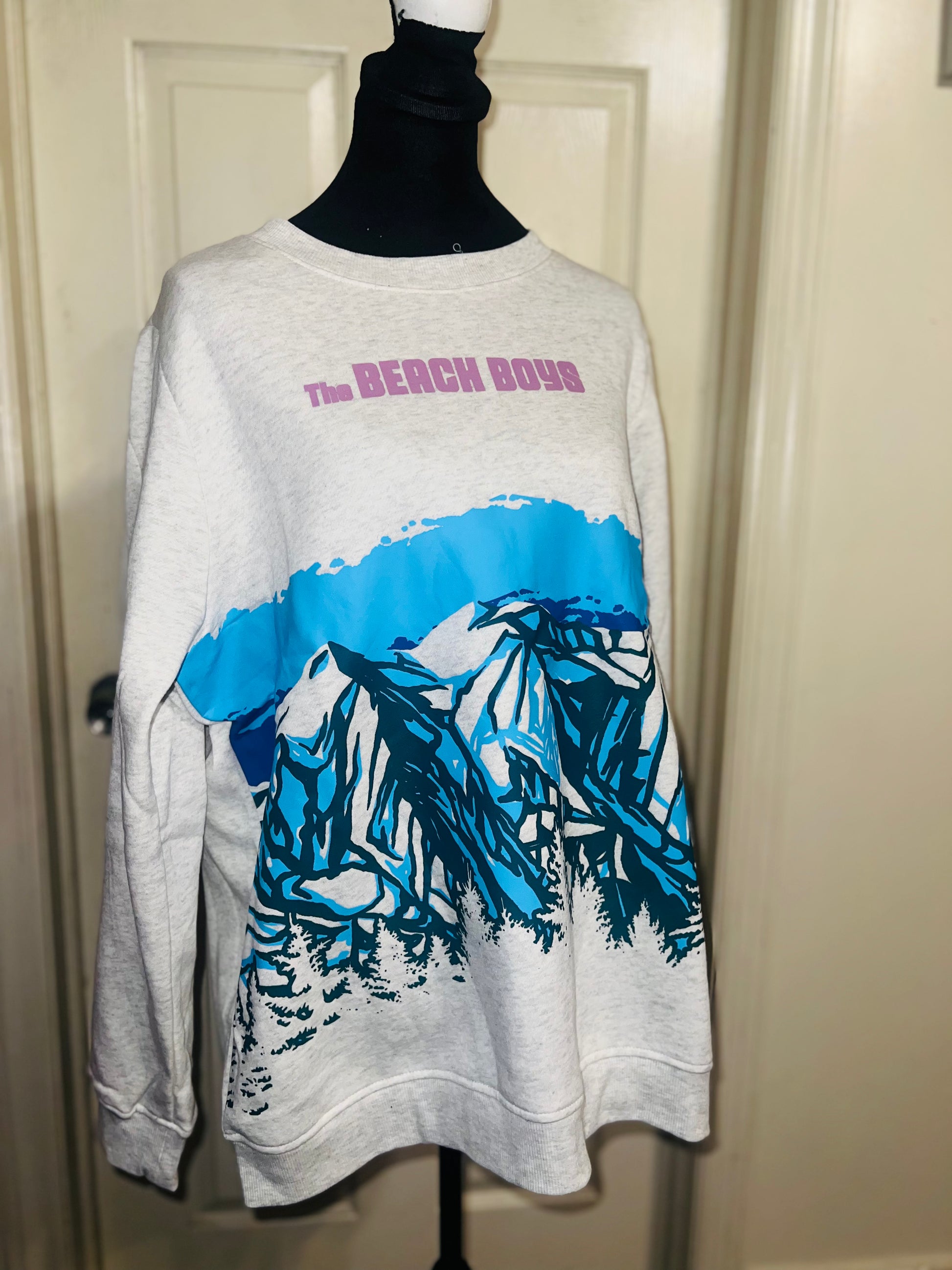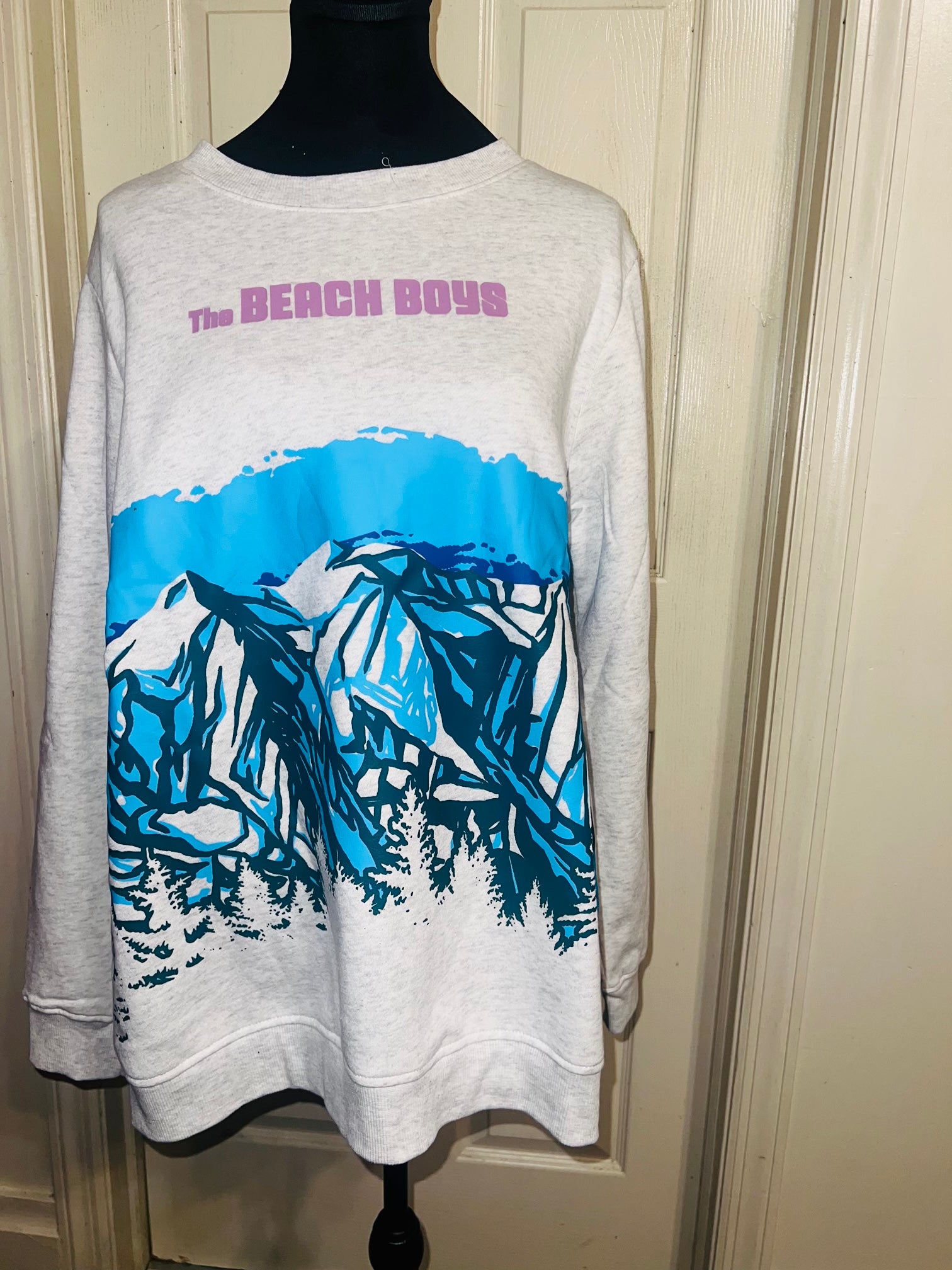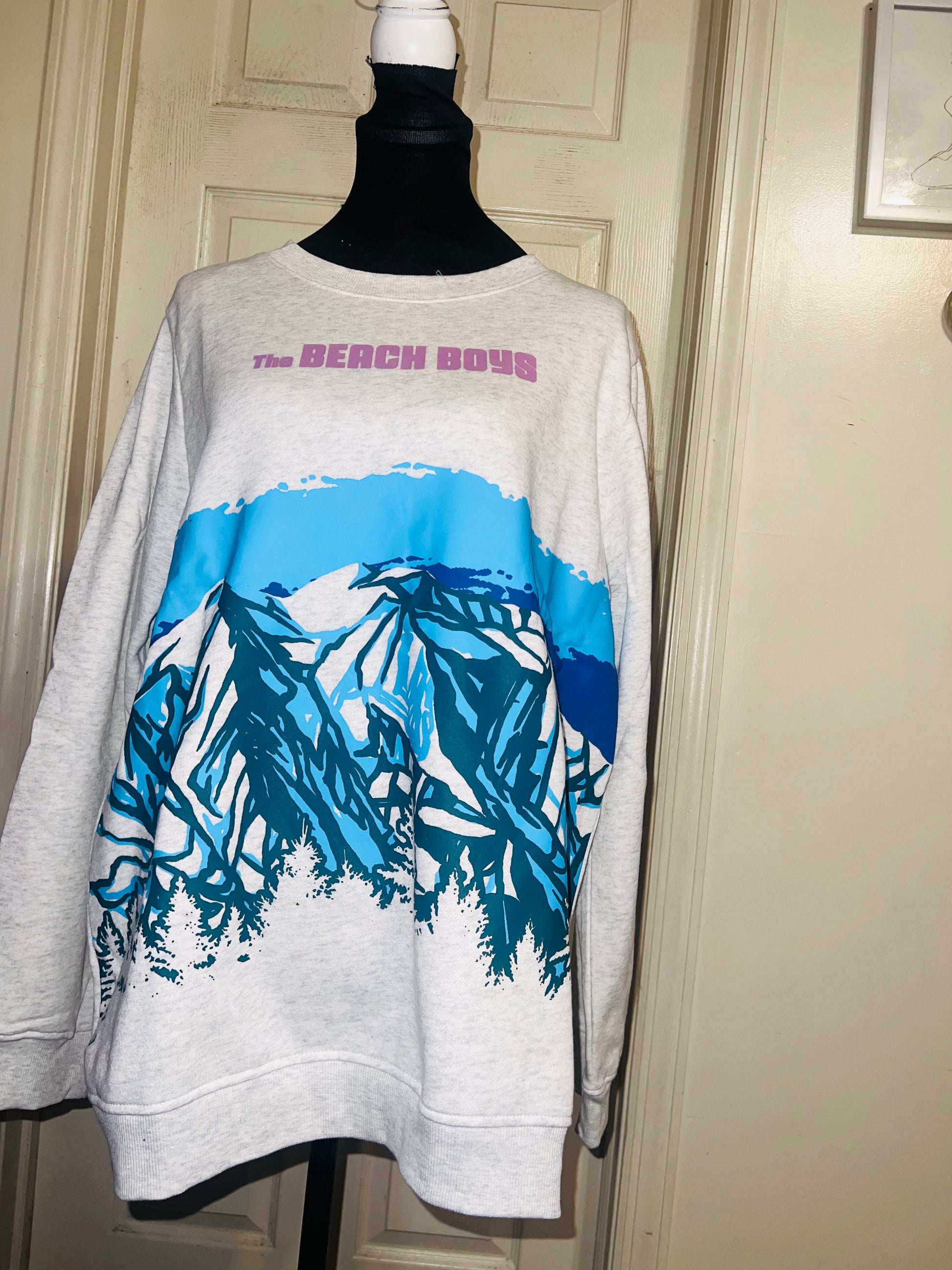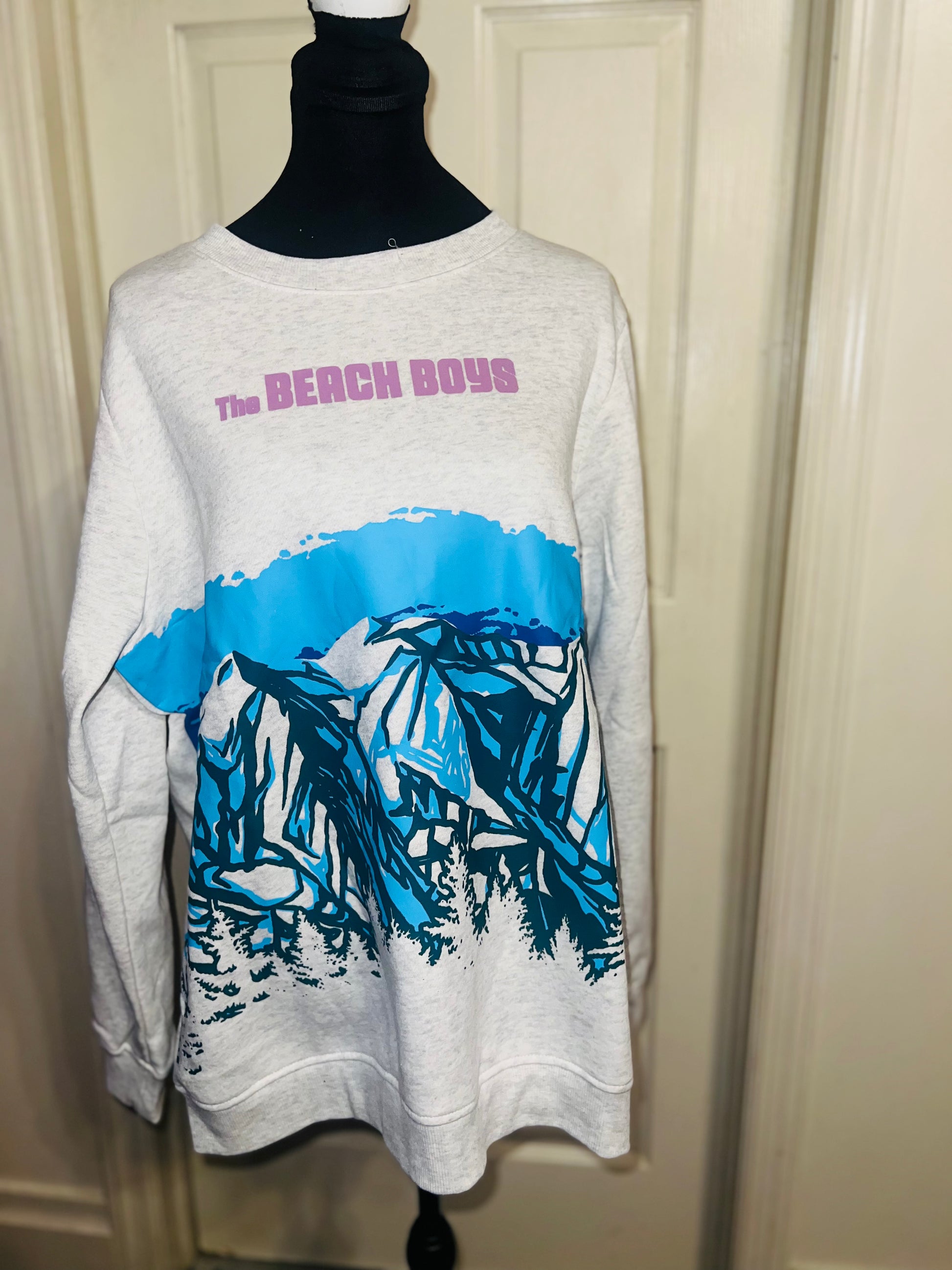 This is a preorder. Please allow extra processing time. Beach Boys sweatshirt with a cool mountain landscape on the front. I love this one. Size large, oversized.