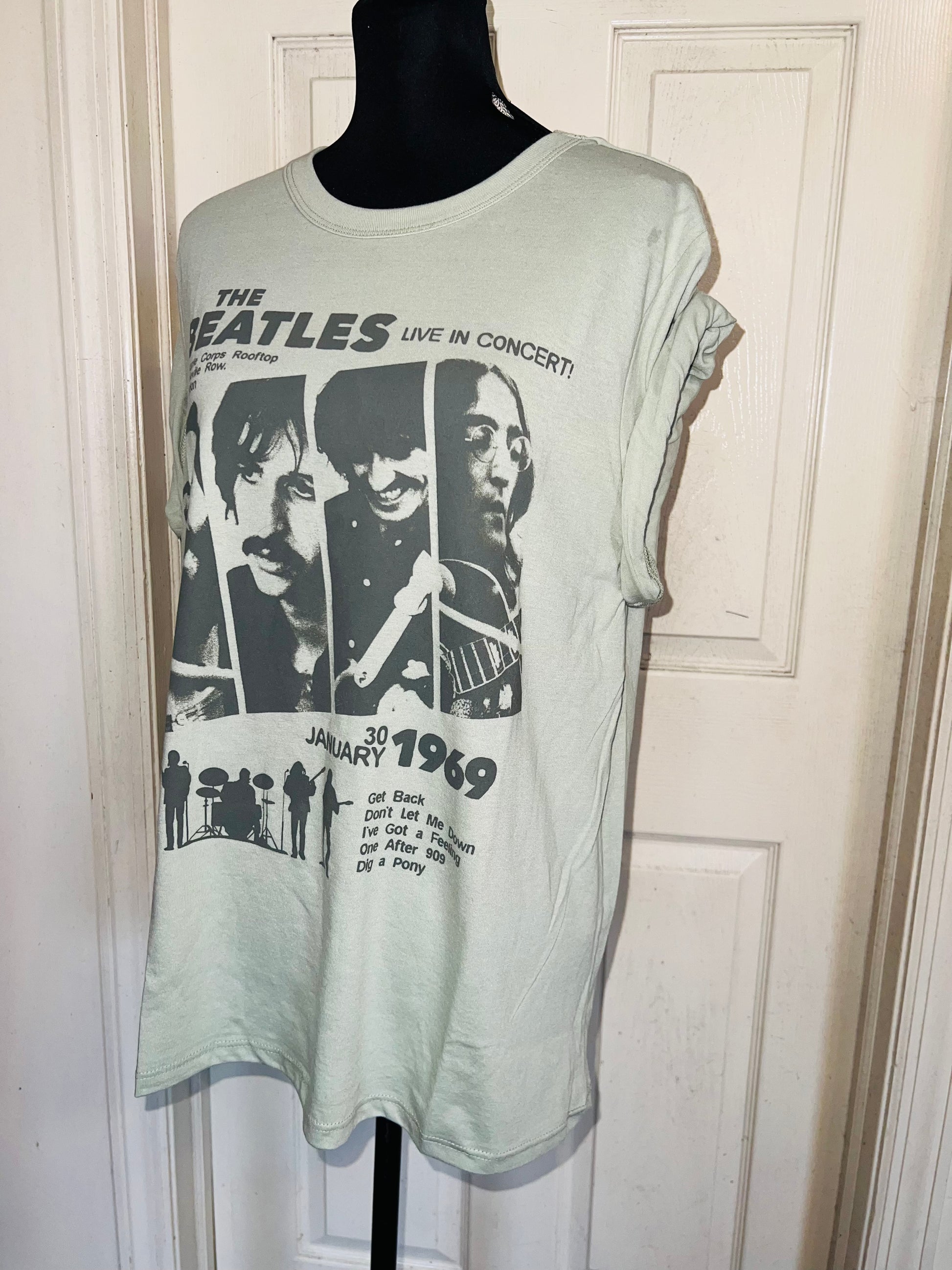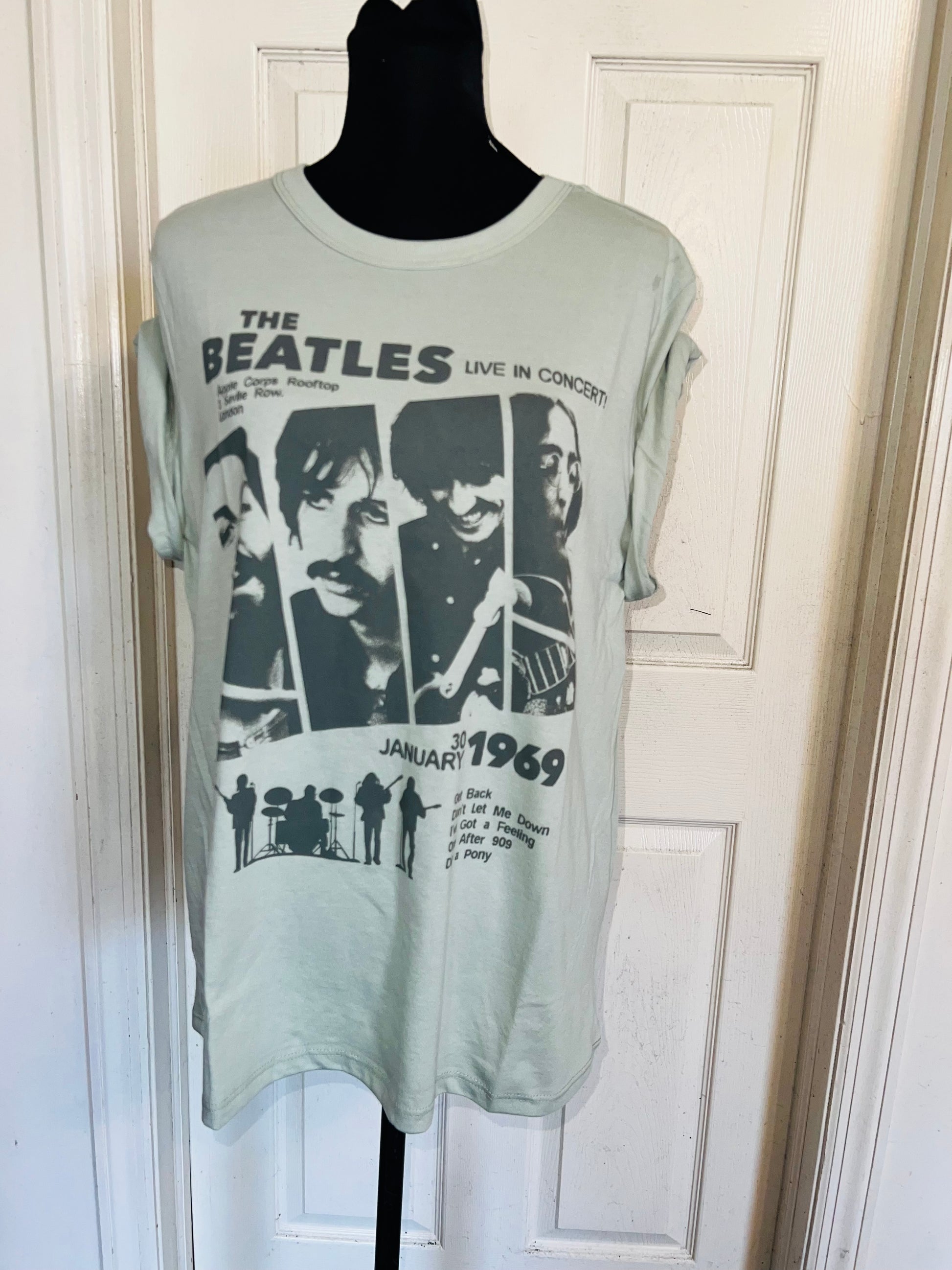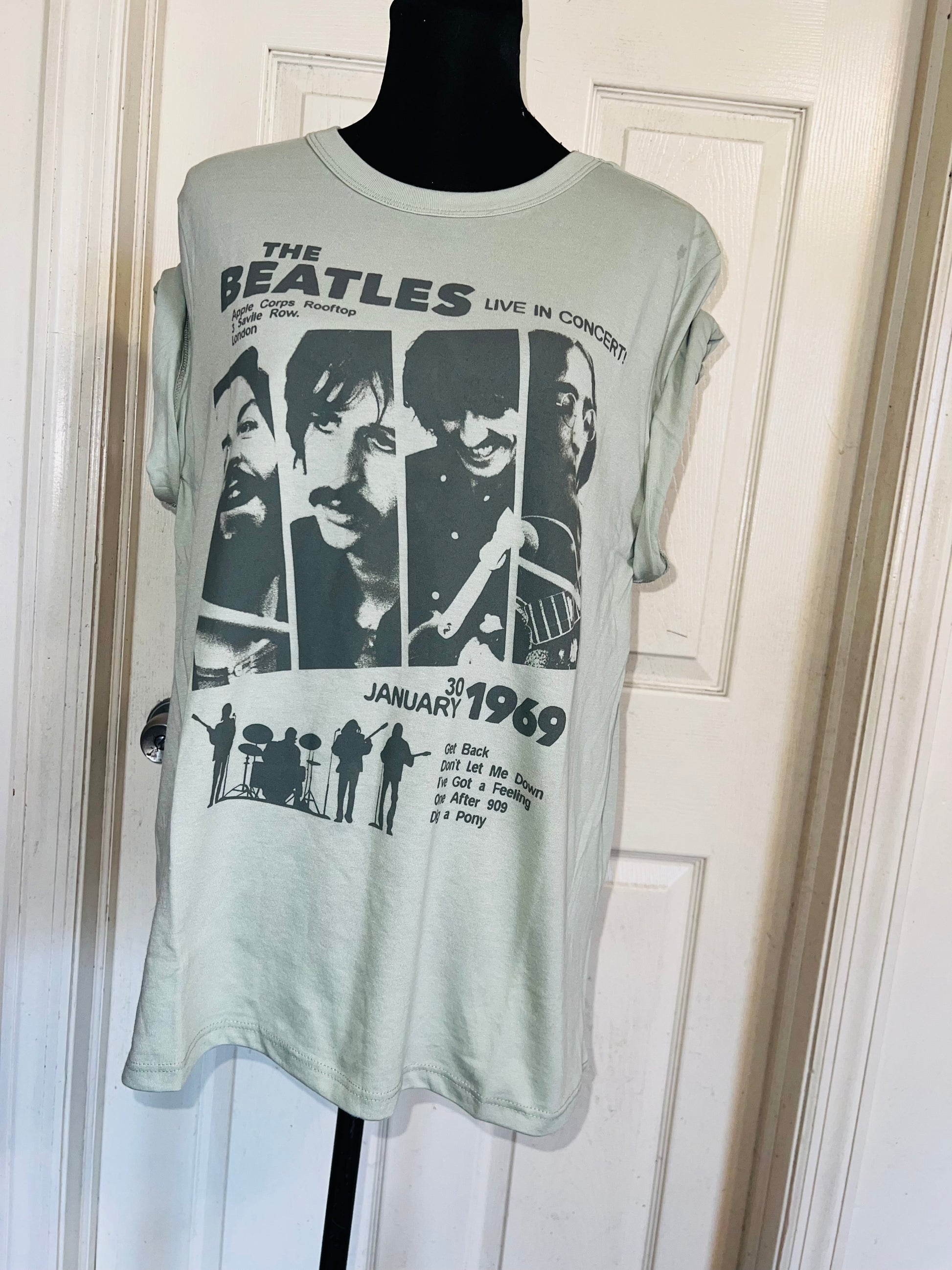 This is now a preorder. A pretty green Beatles ‘69 Live in Concert with tracks at the bottom! Size XL, oversized.