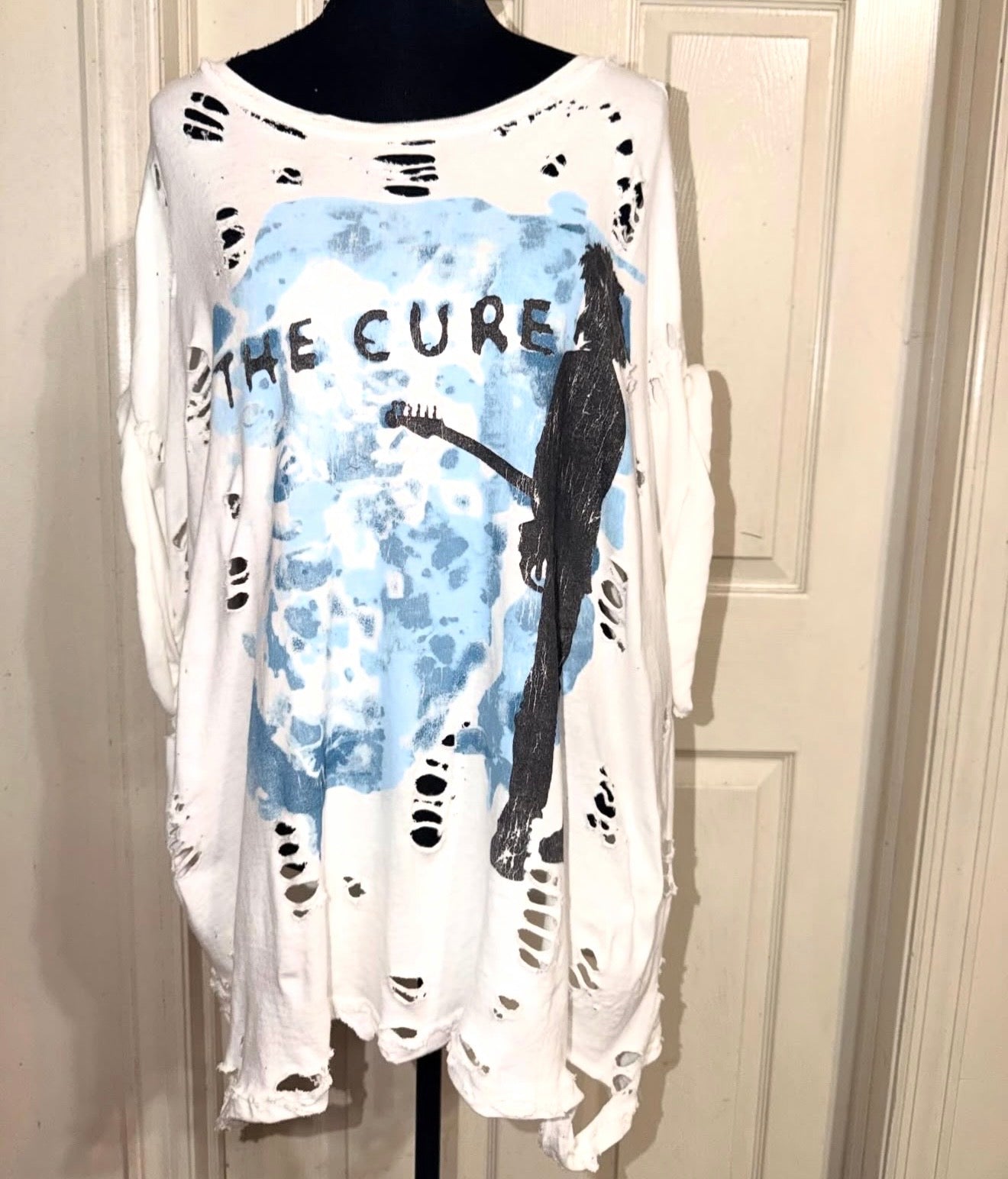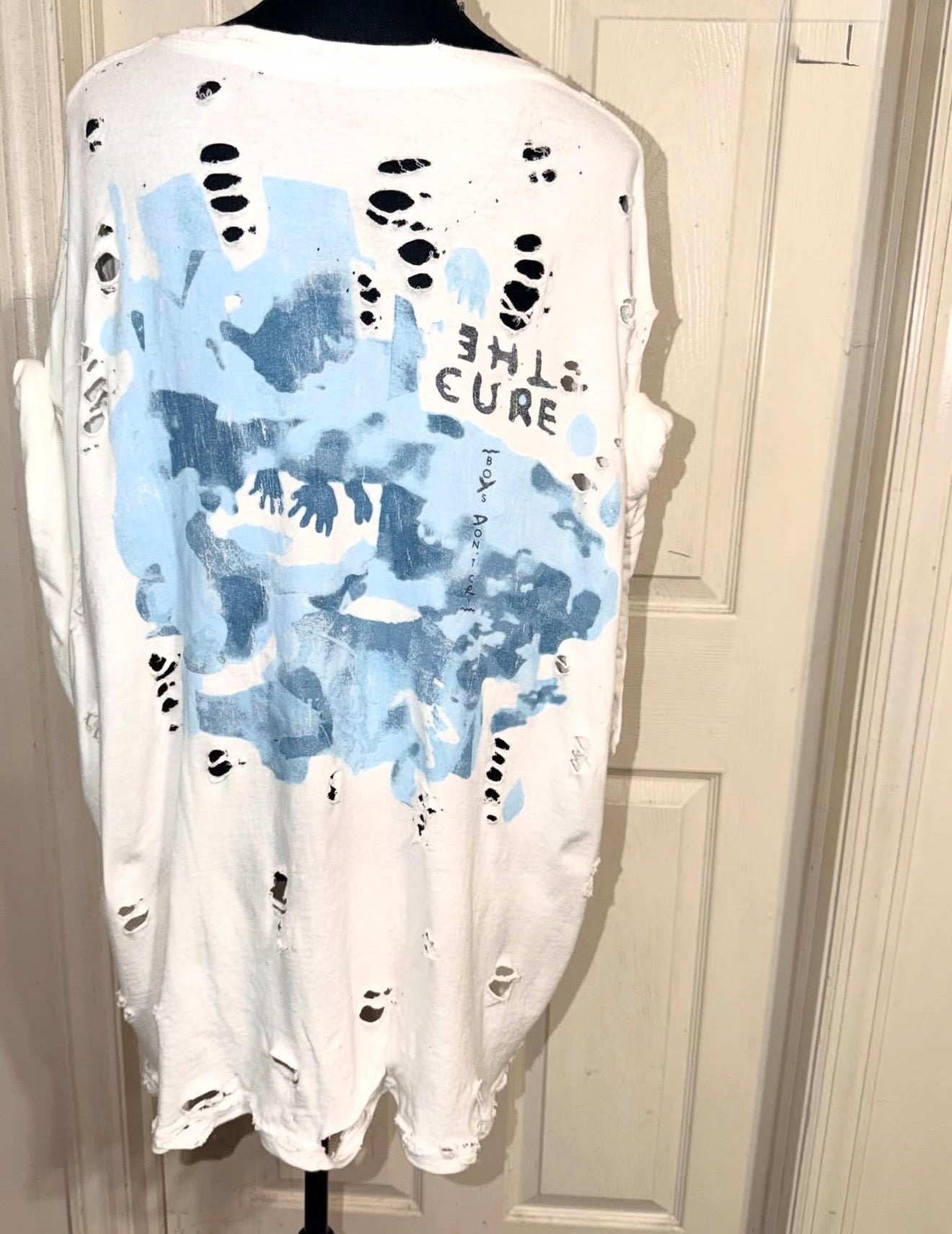 The Cure white double sided tee with such pretty blue graphics. Oversized.