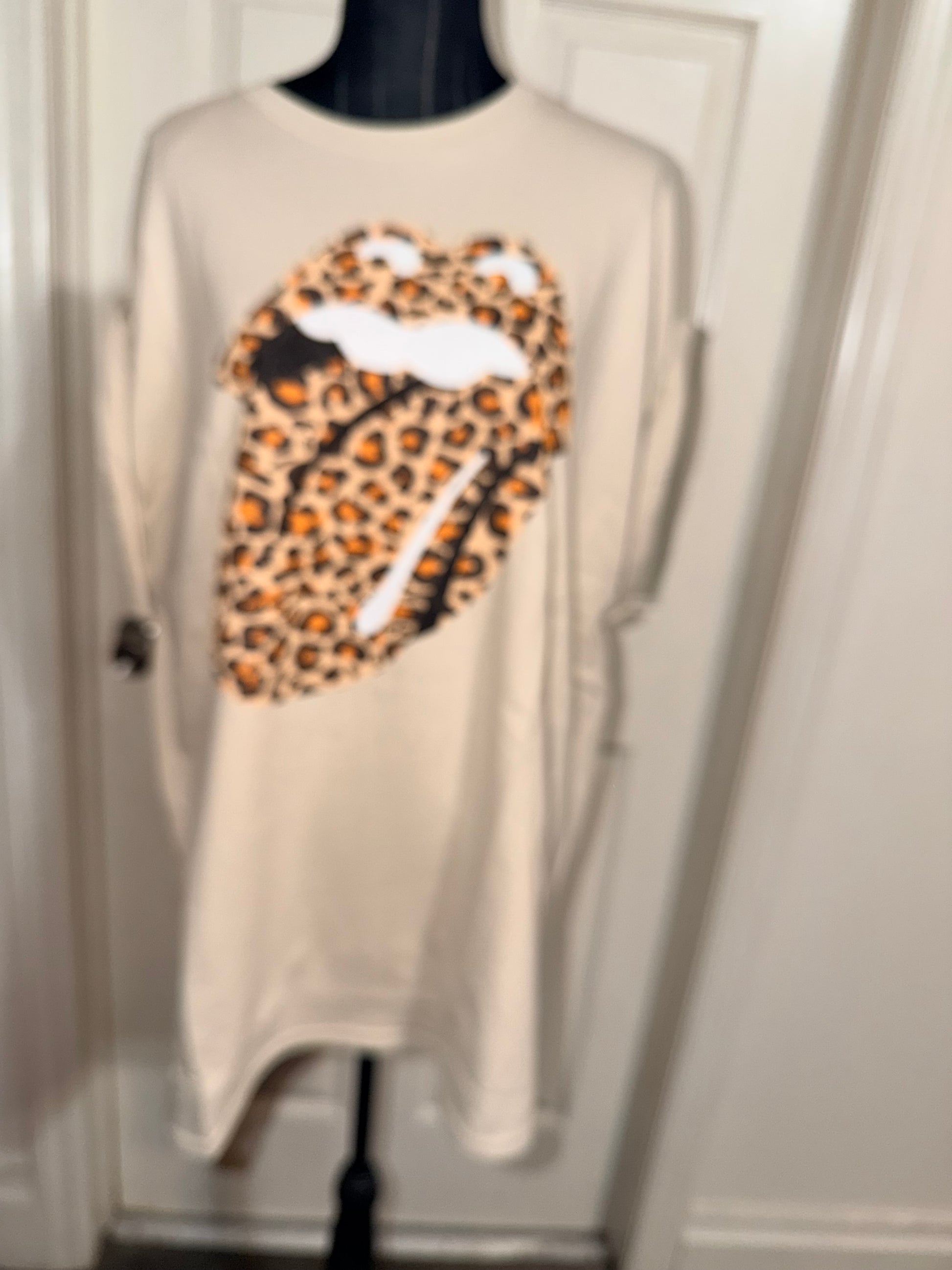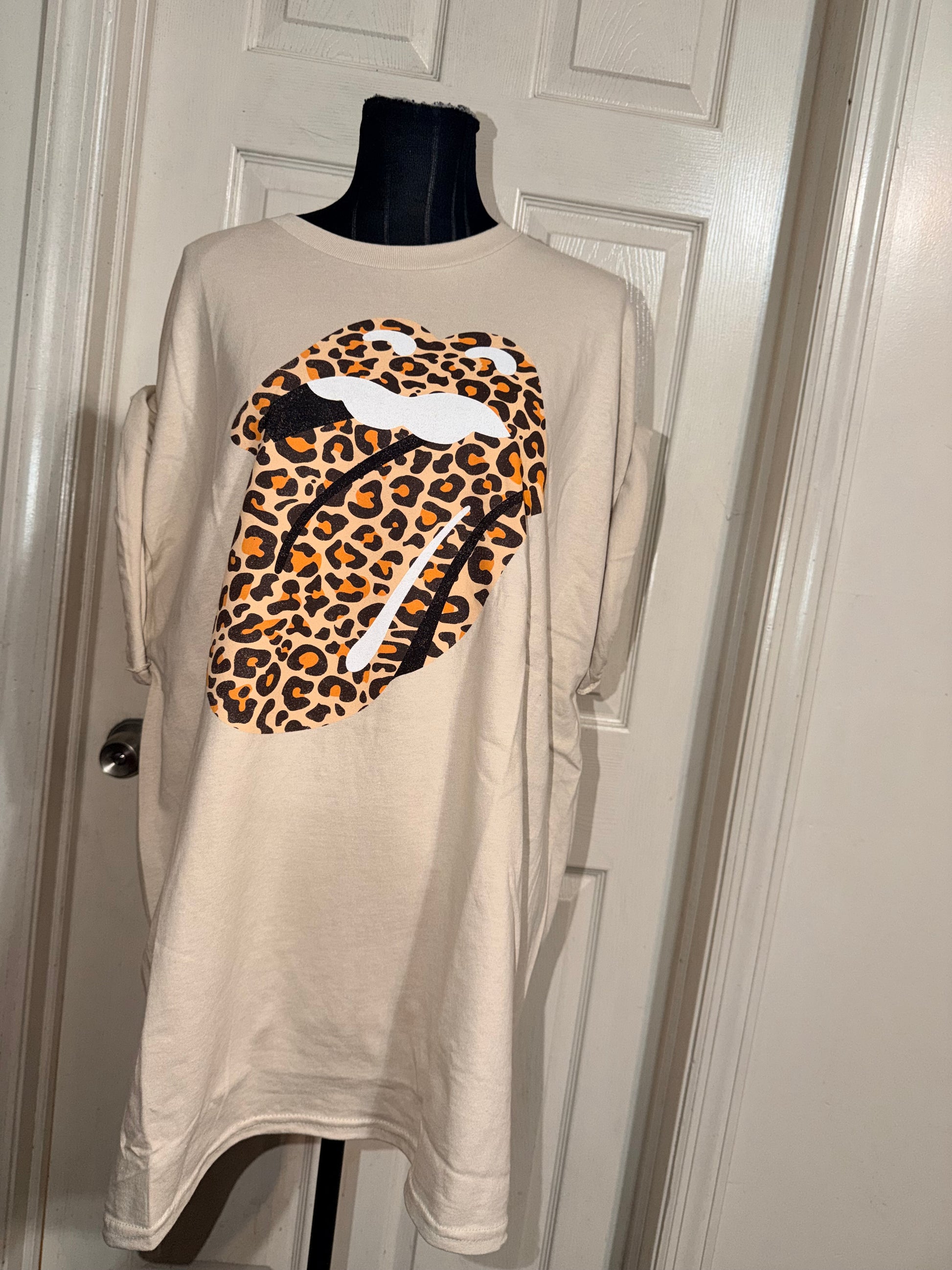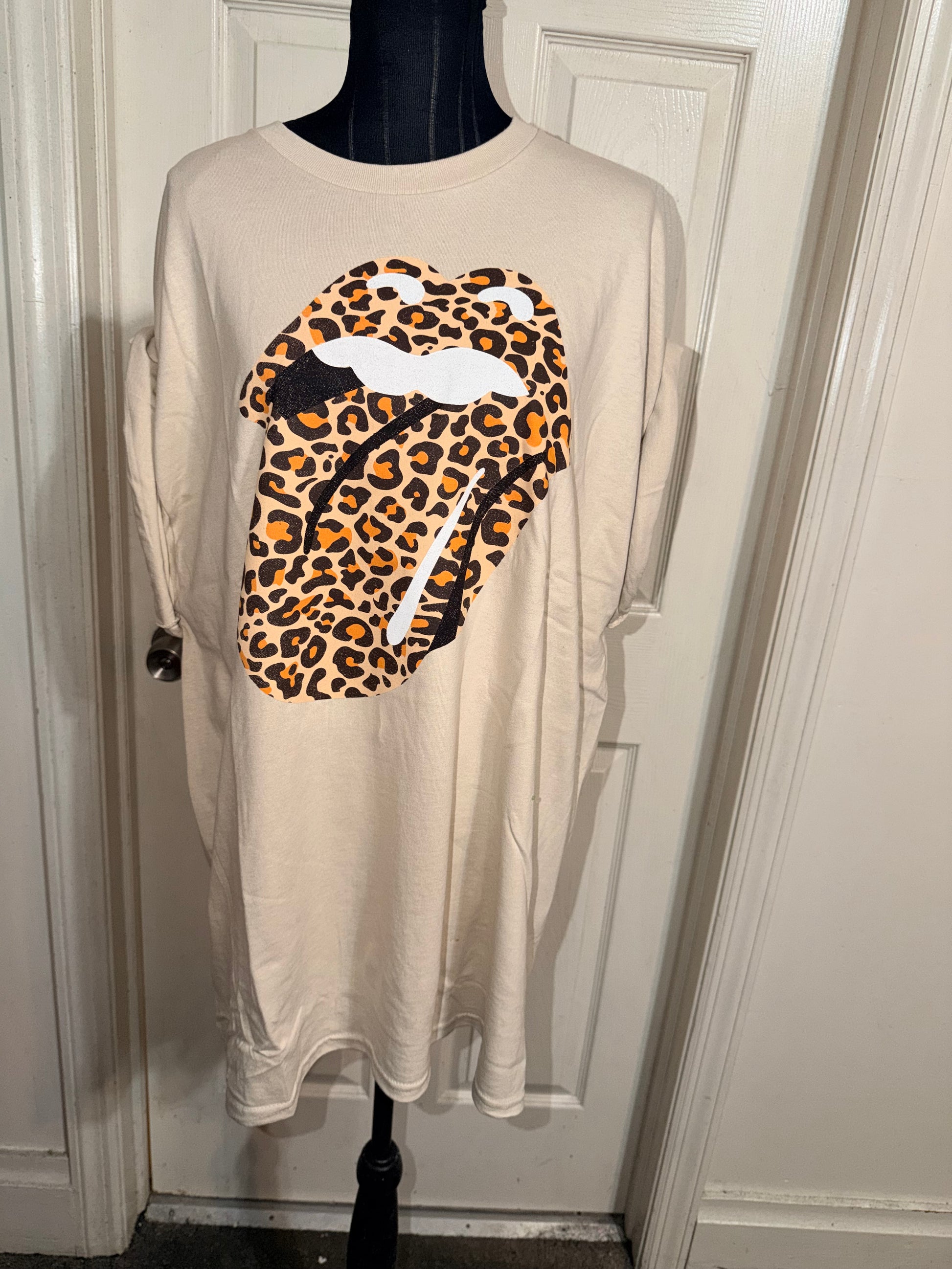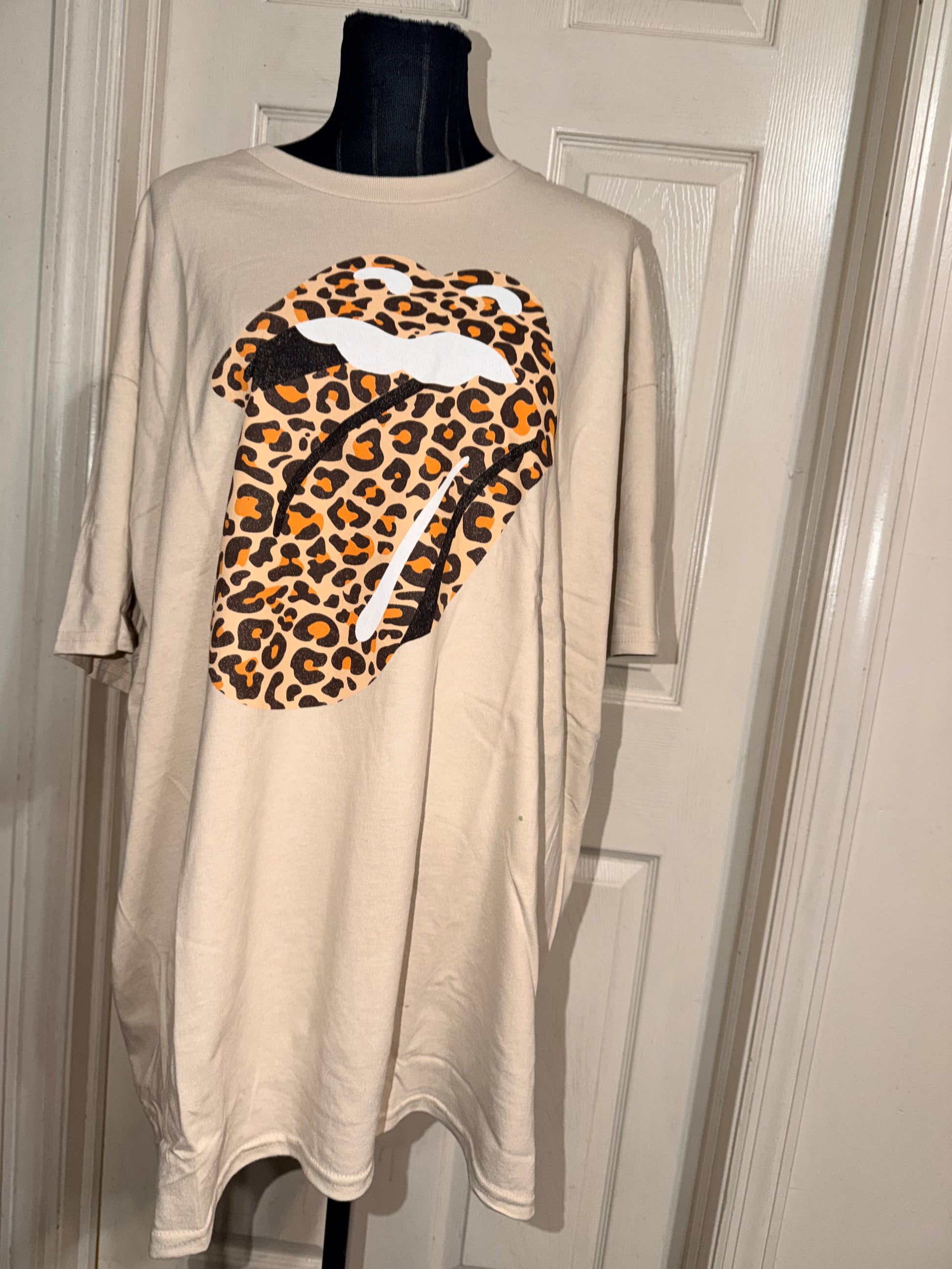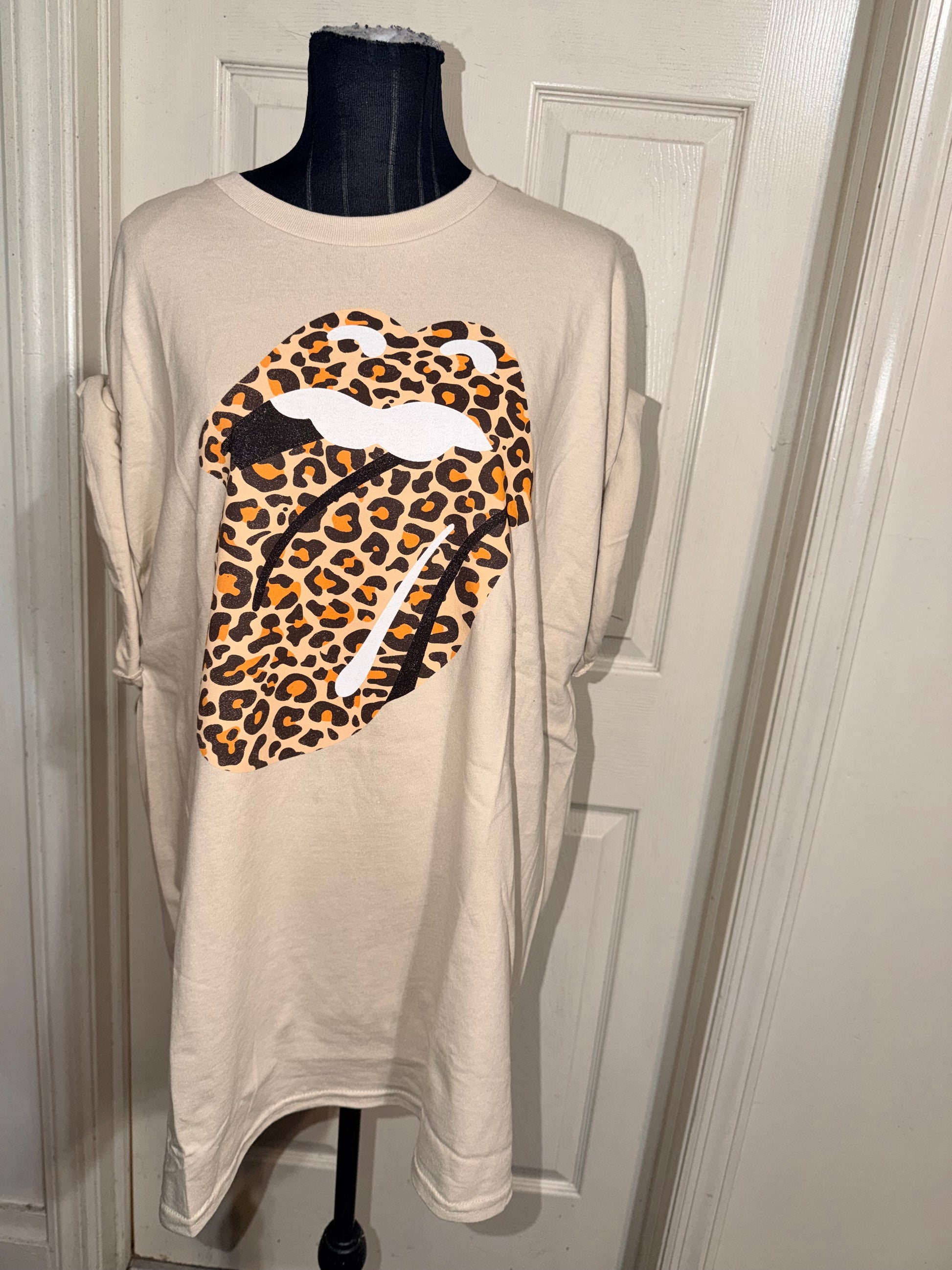 This is now a preorder. A tan Rolling Stones cheetah logo tee. Oversized.