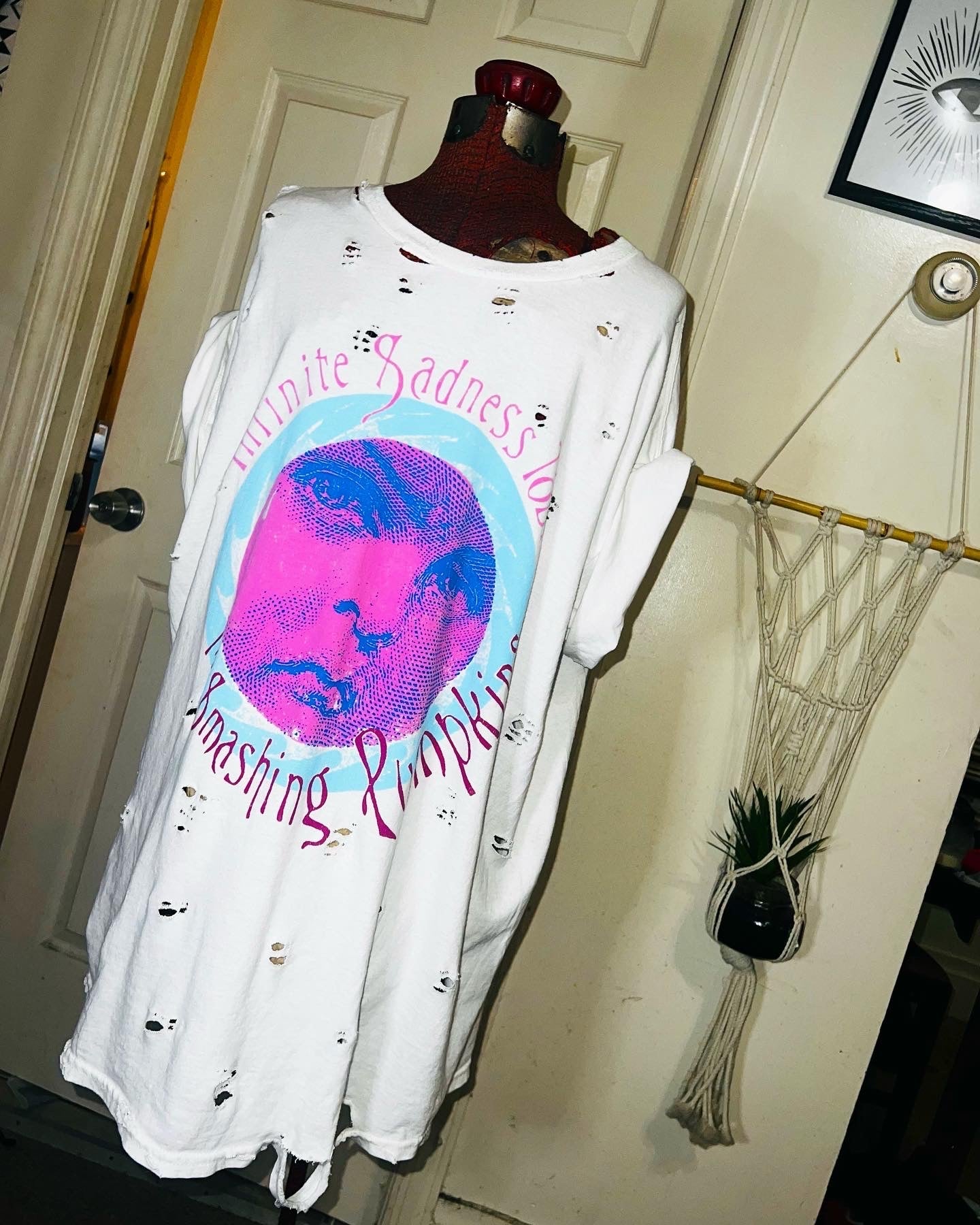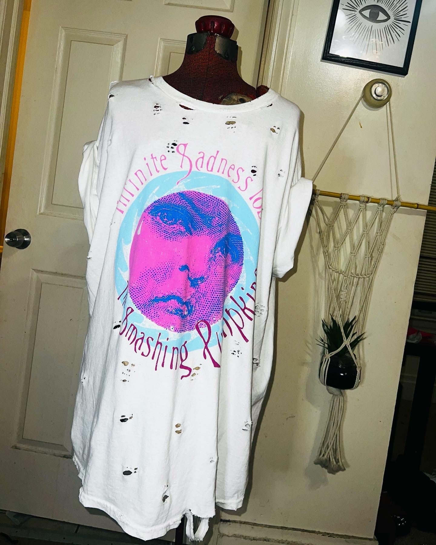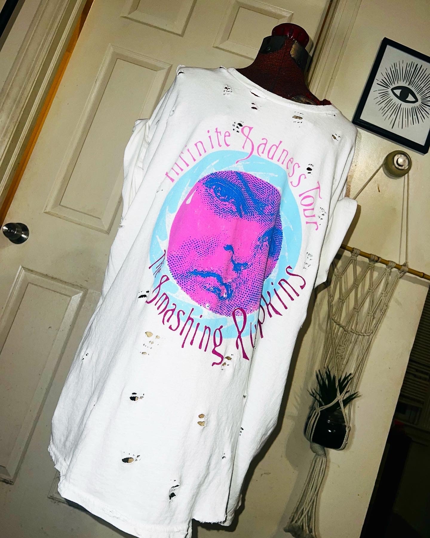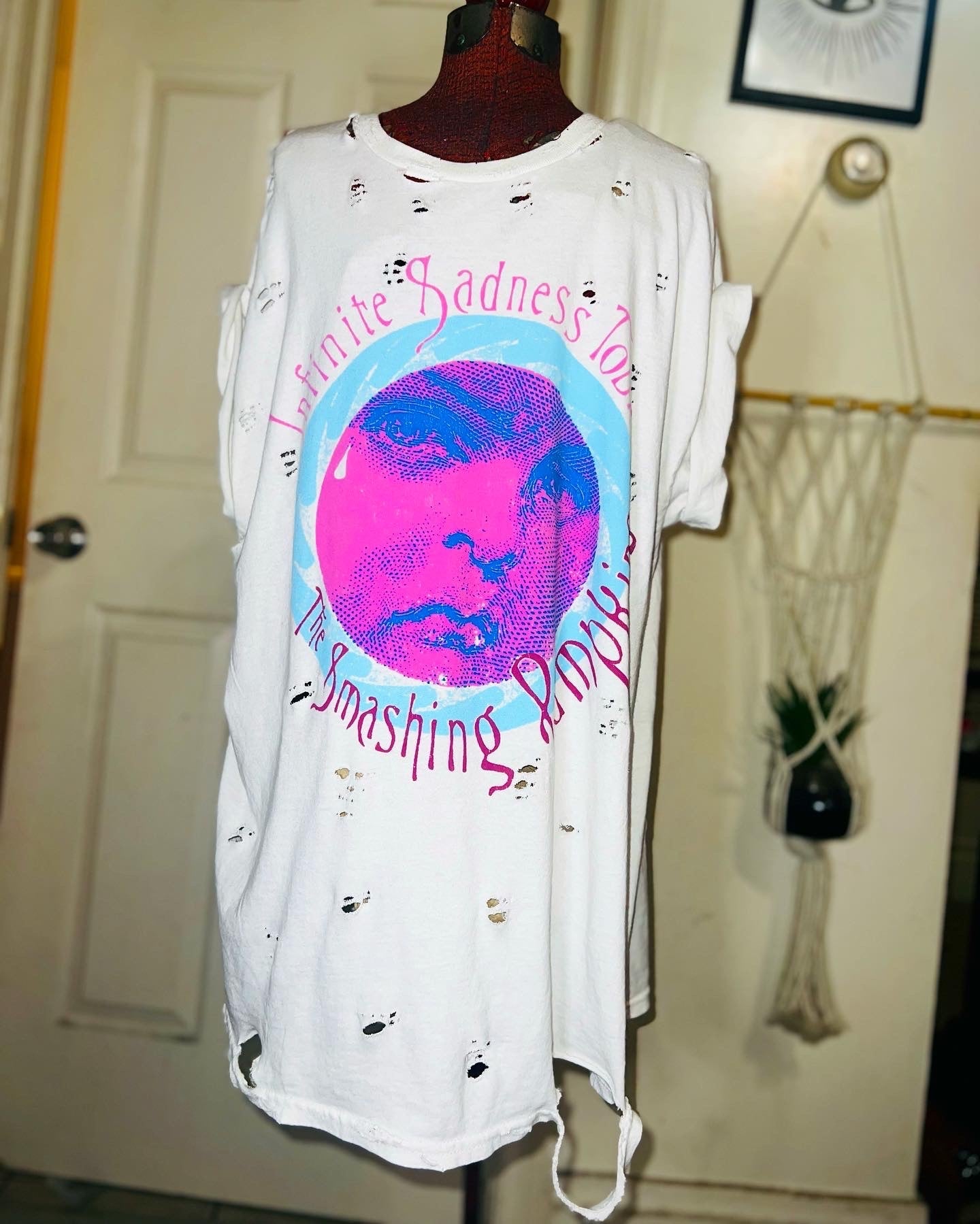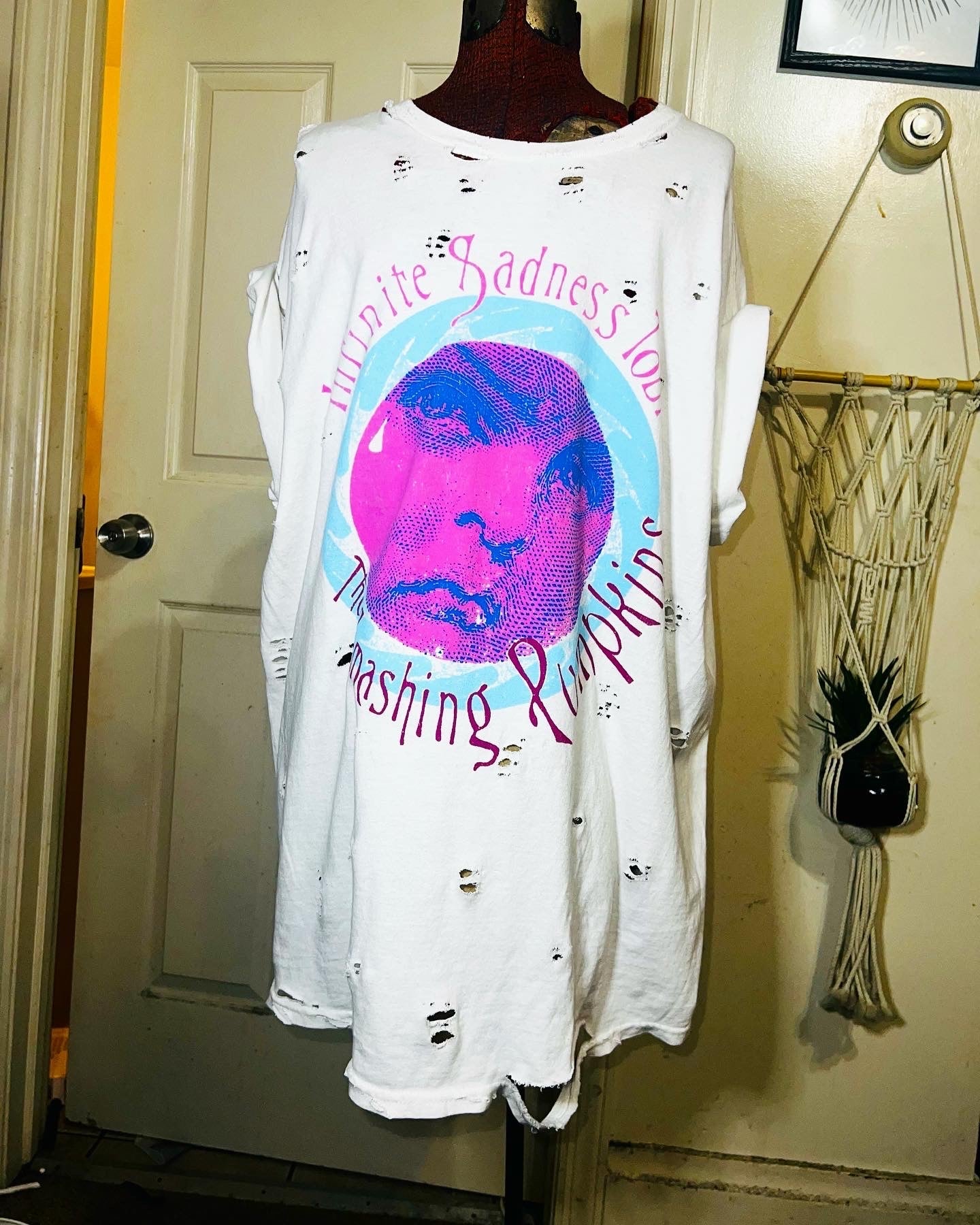 A white Smashing Pumpkins “Infinite Sadness Tour” tee with pastel contrast, this is an oversized shirt perfect for styling in the summer! Size L/XL!