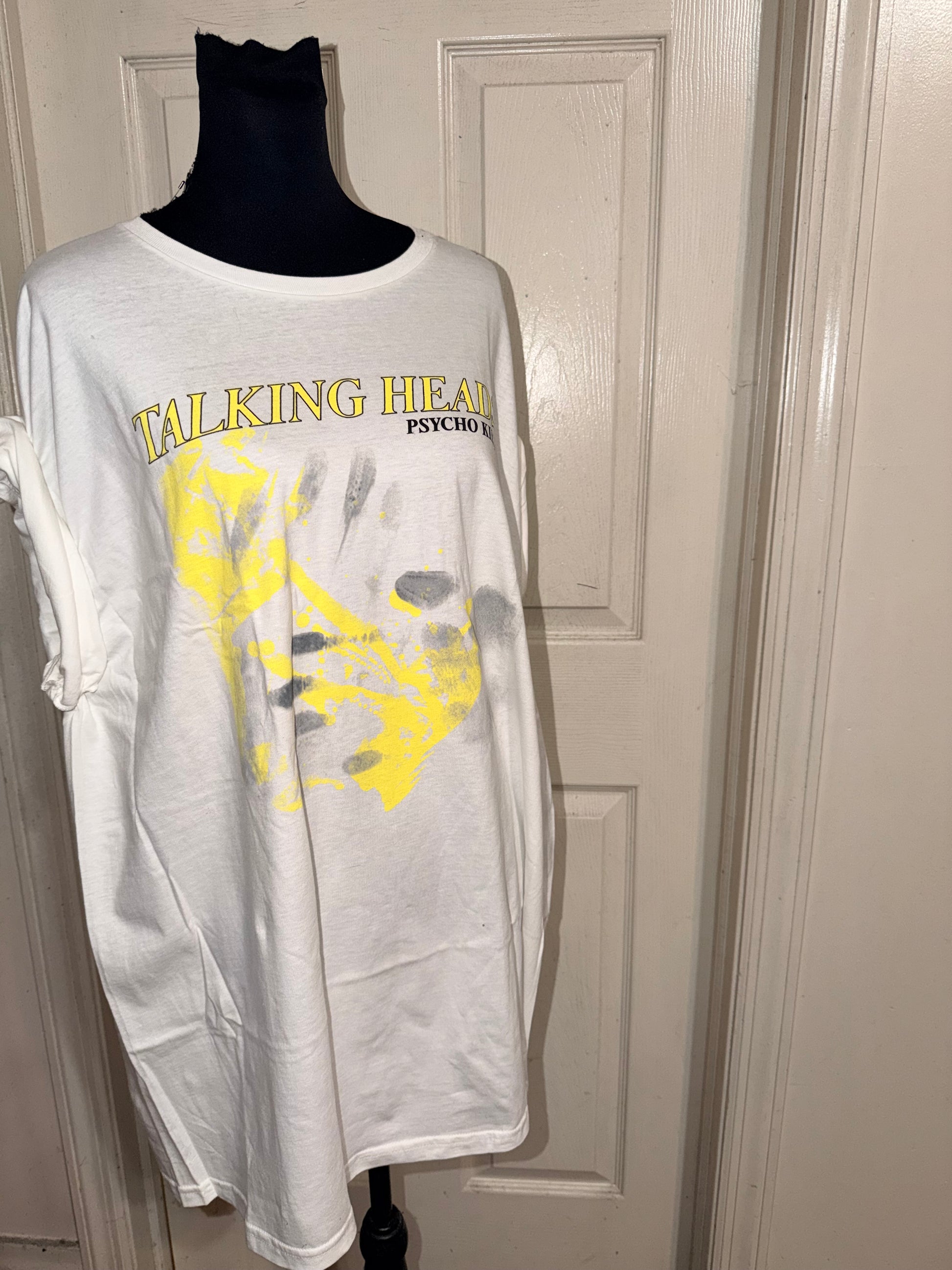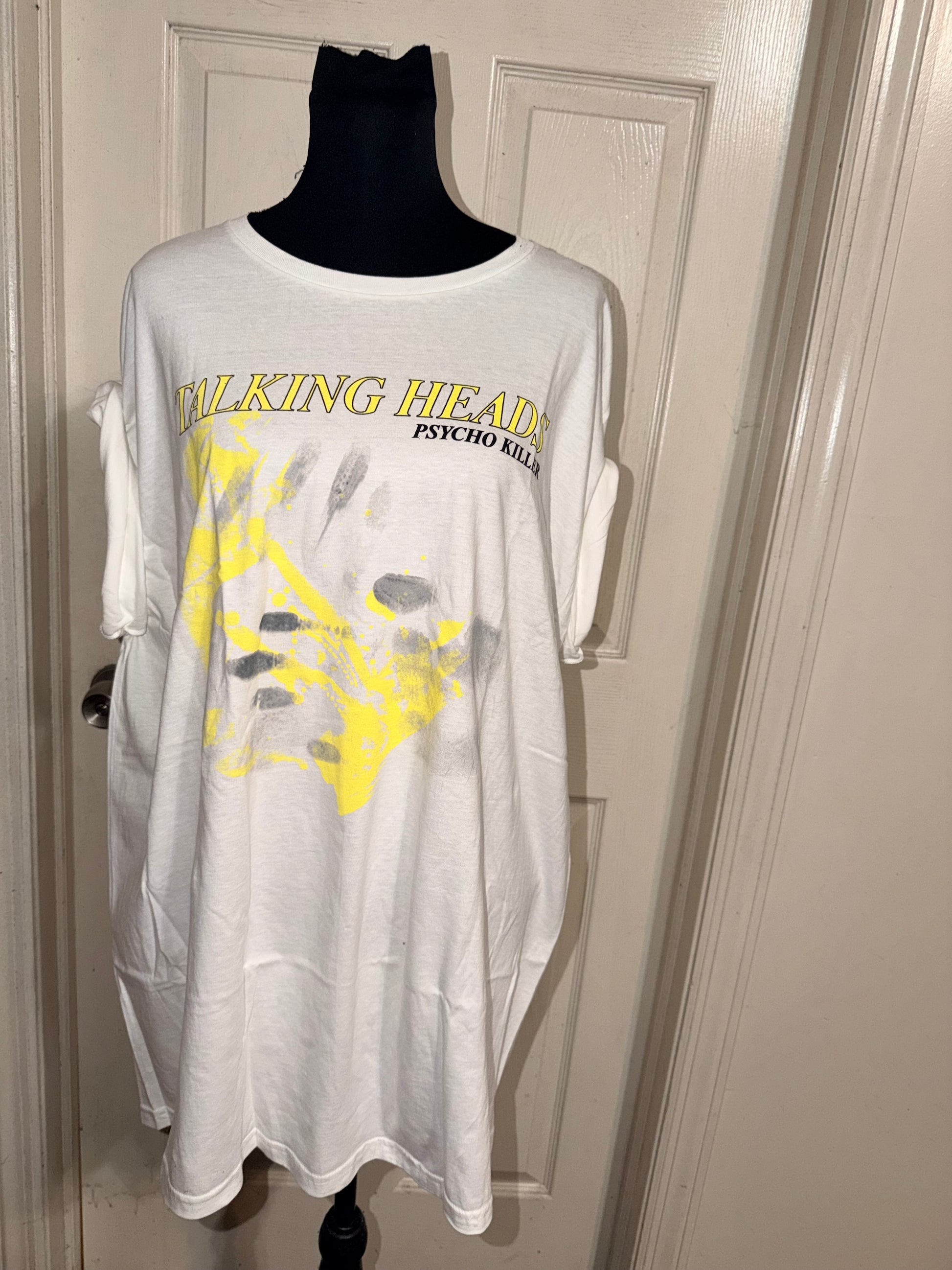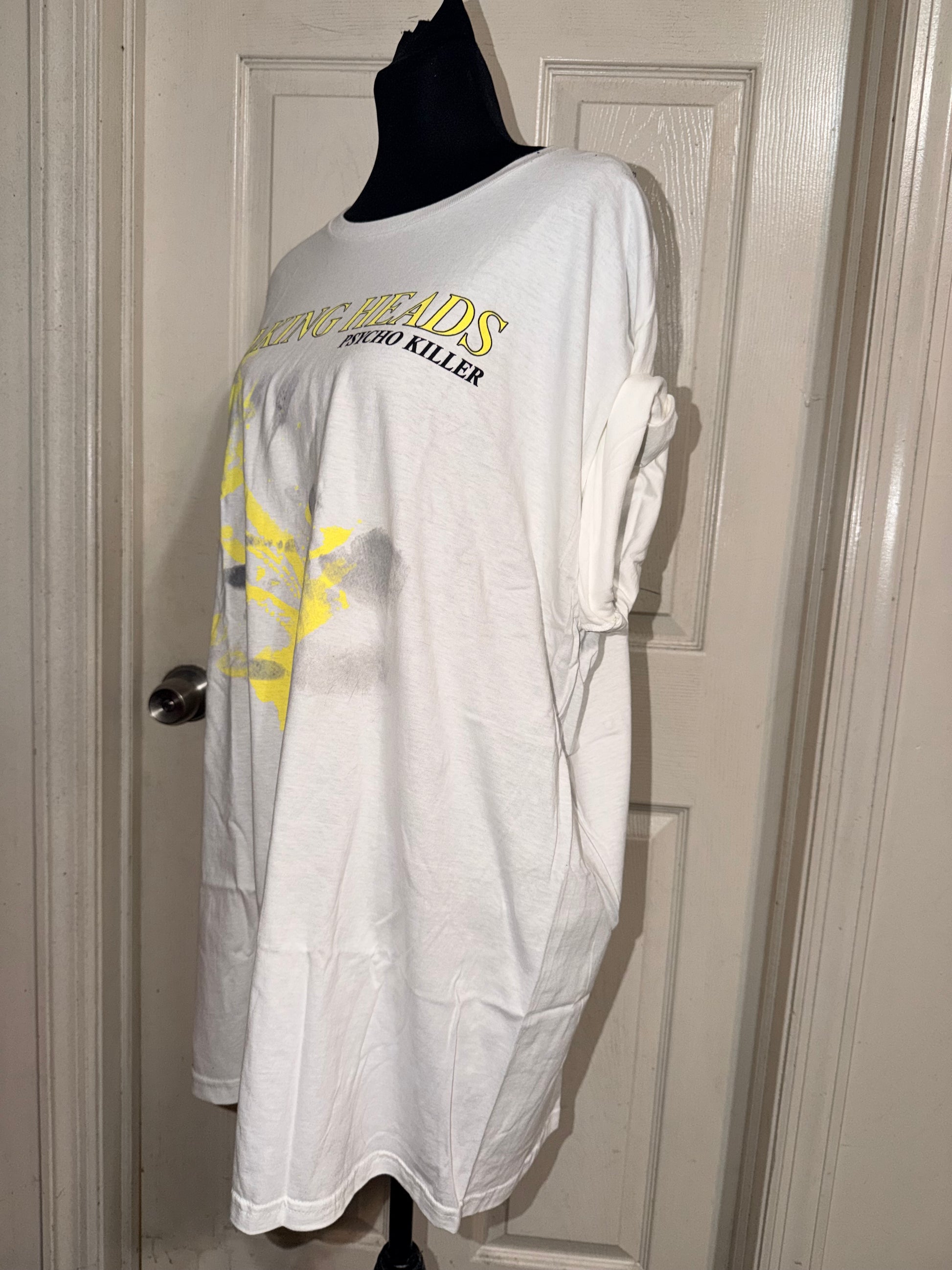 This is now a preorder. A white Talking Heads Psycho Killer tee. Oversized.