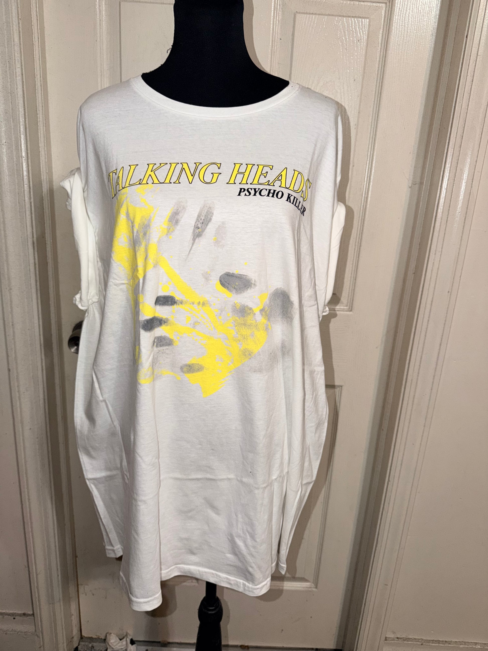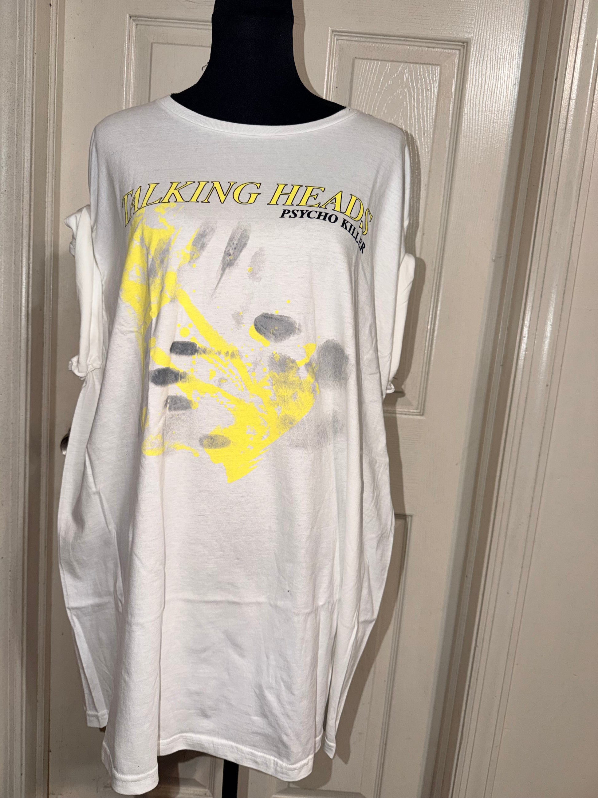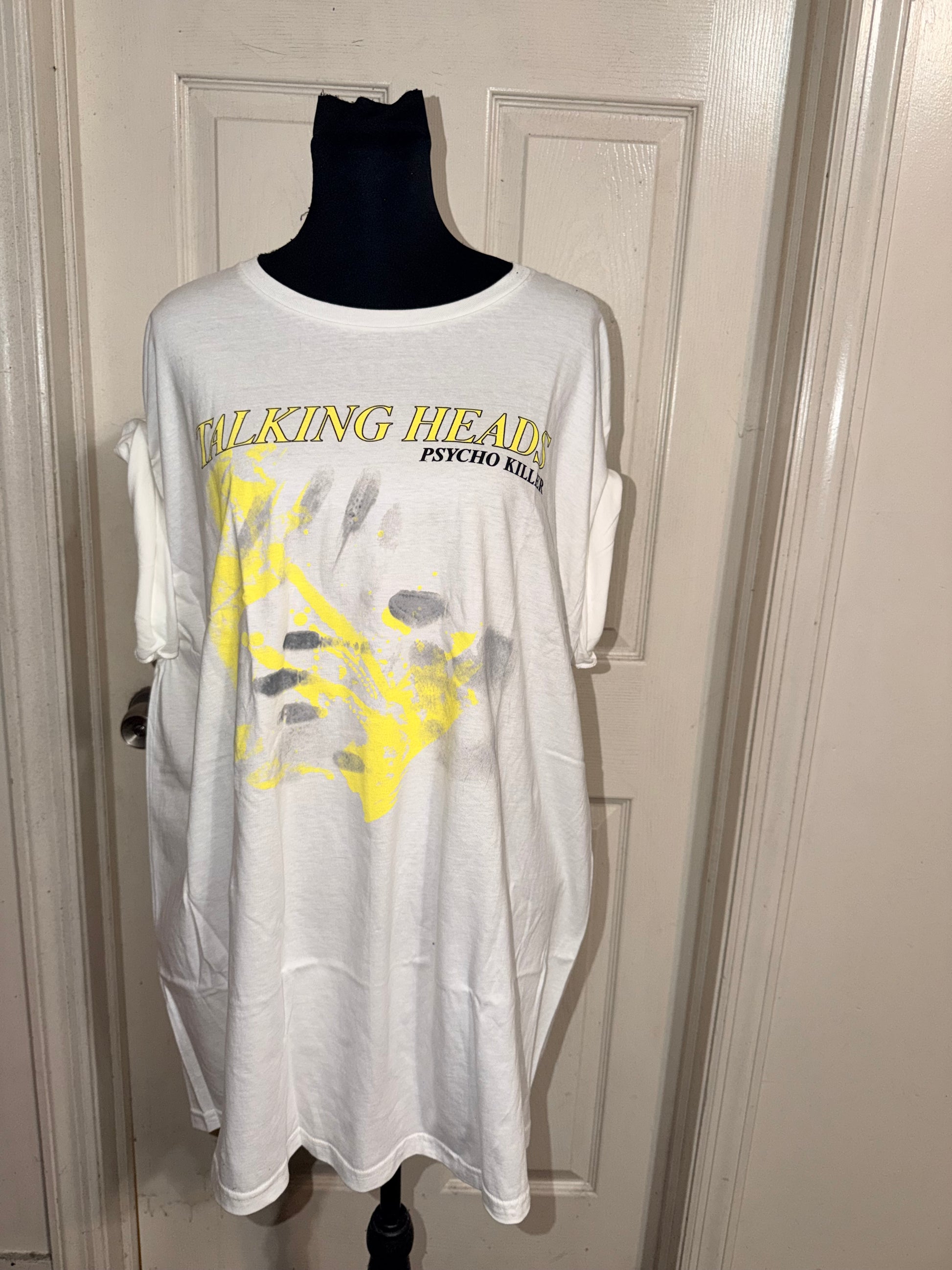 This is now a preorder. A white Talking Heads Psycho Killer tee. Oversized.