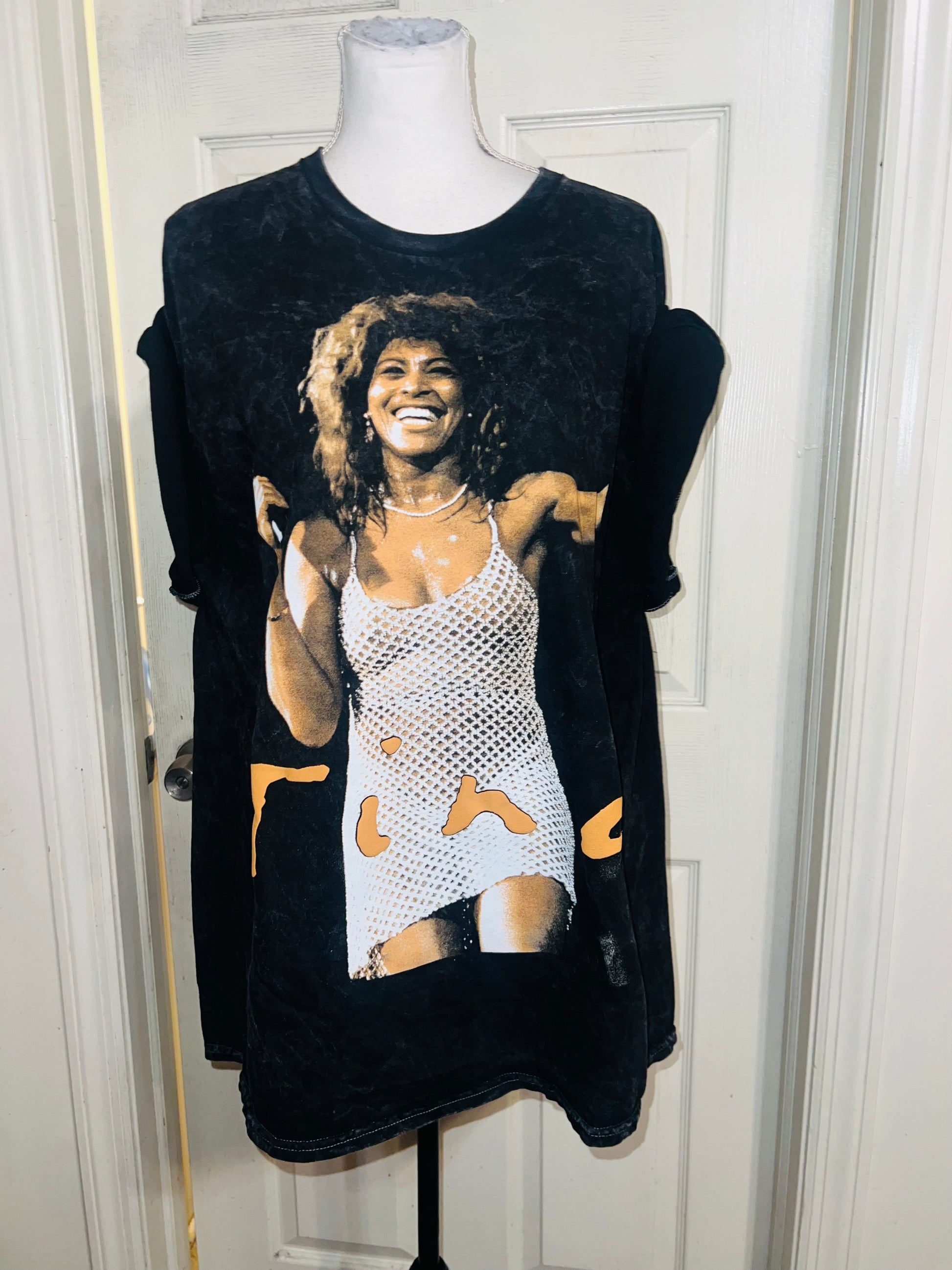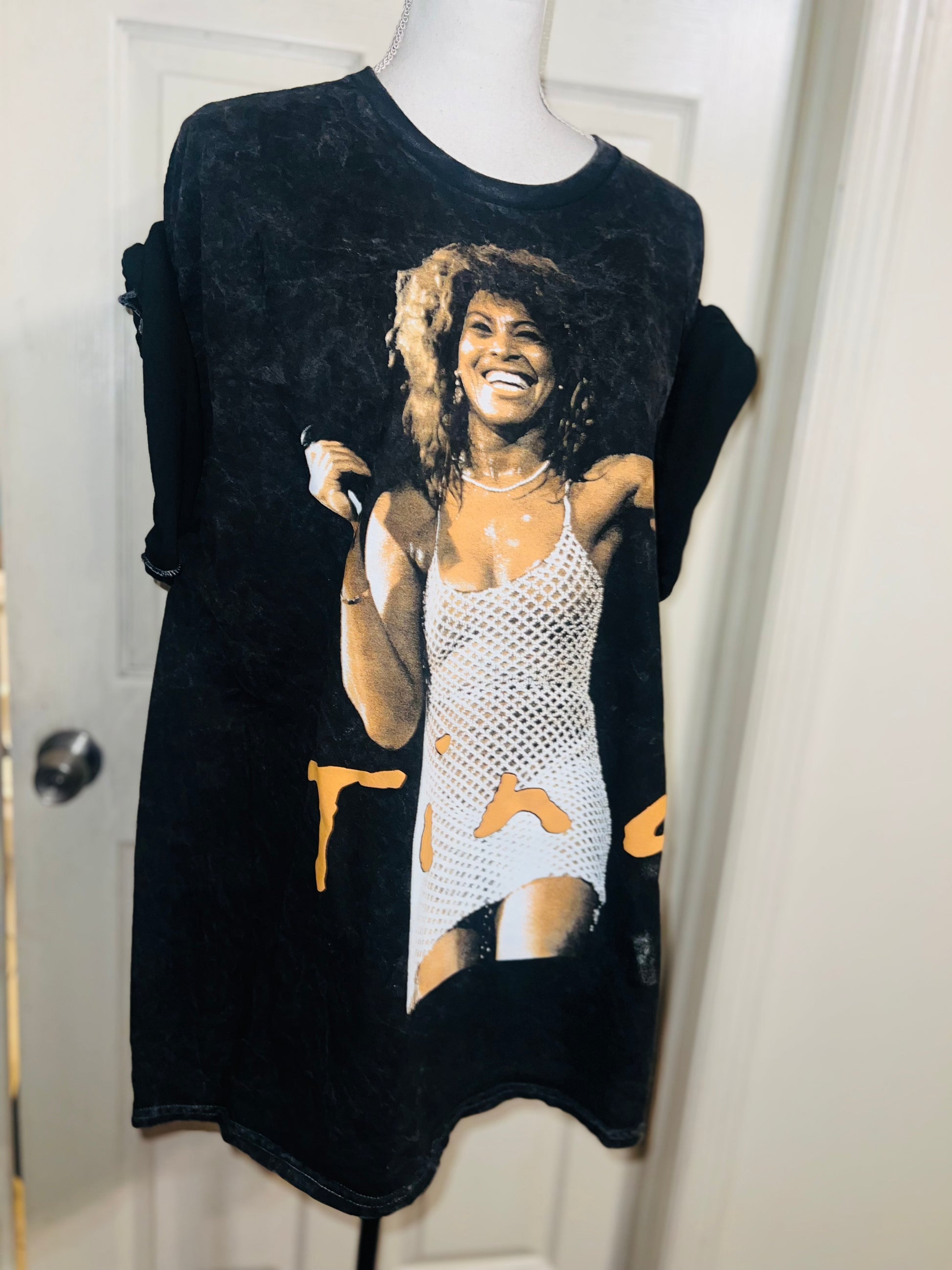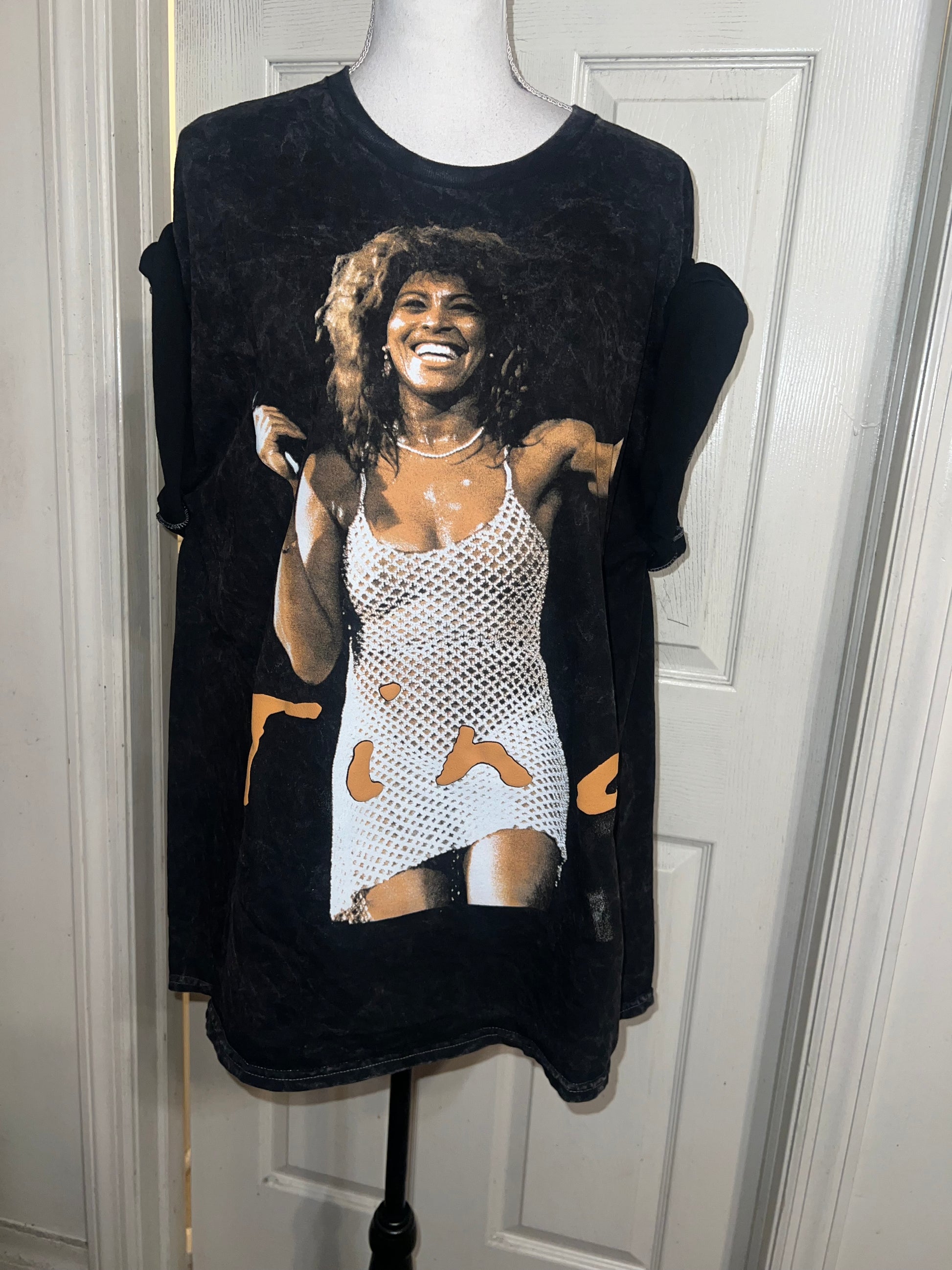 A dark grey black mineral washed Tina Turner tee. Size L/XL, oversized.
