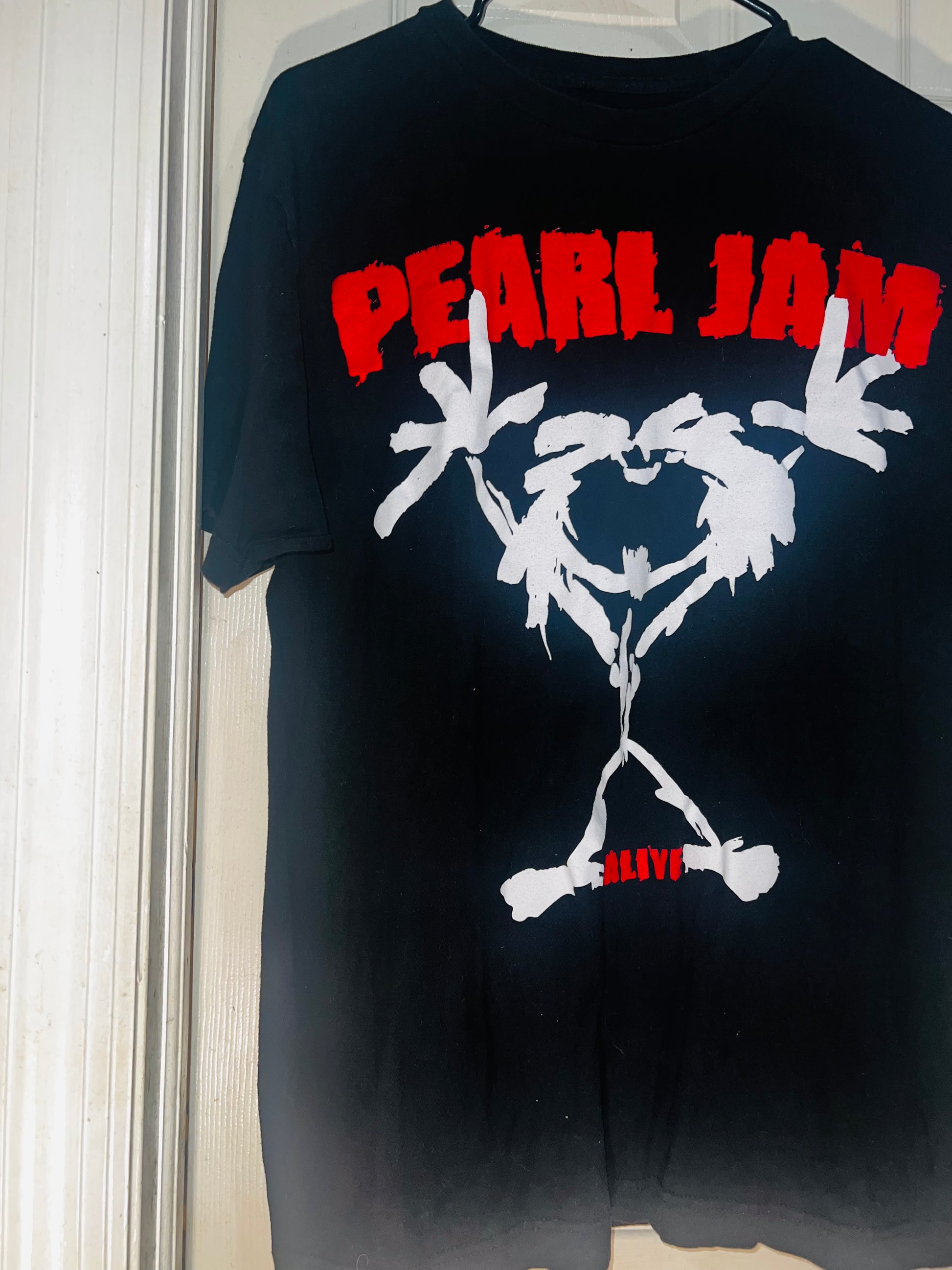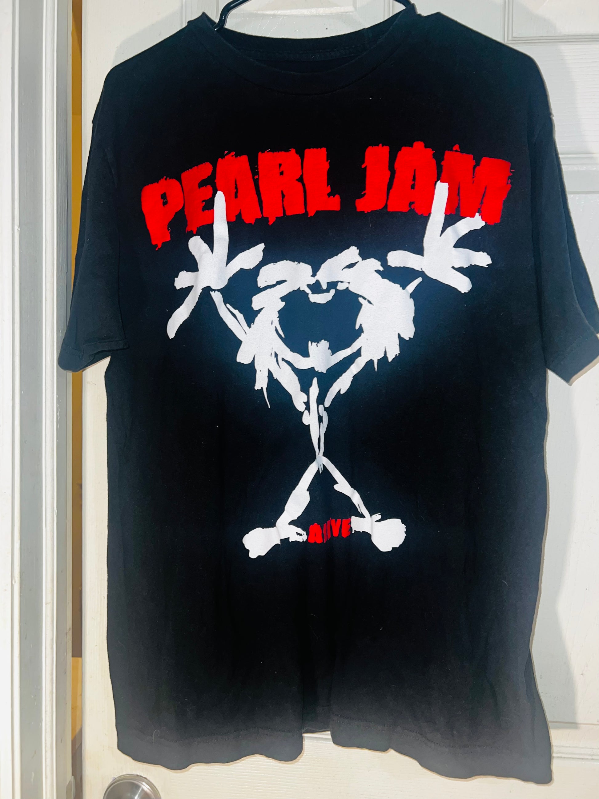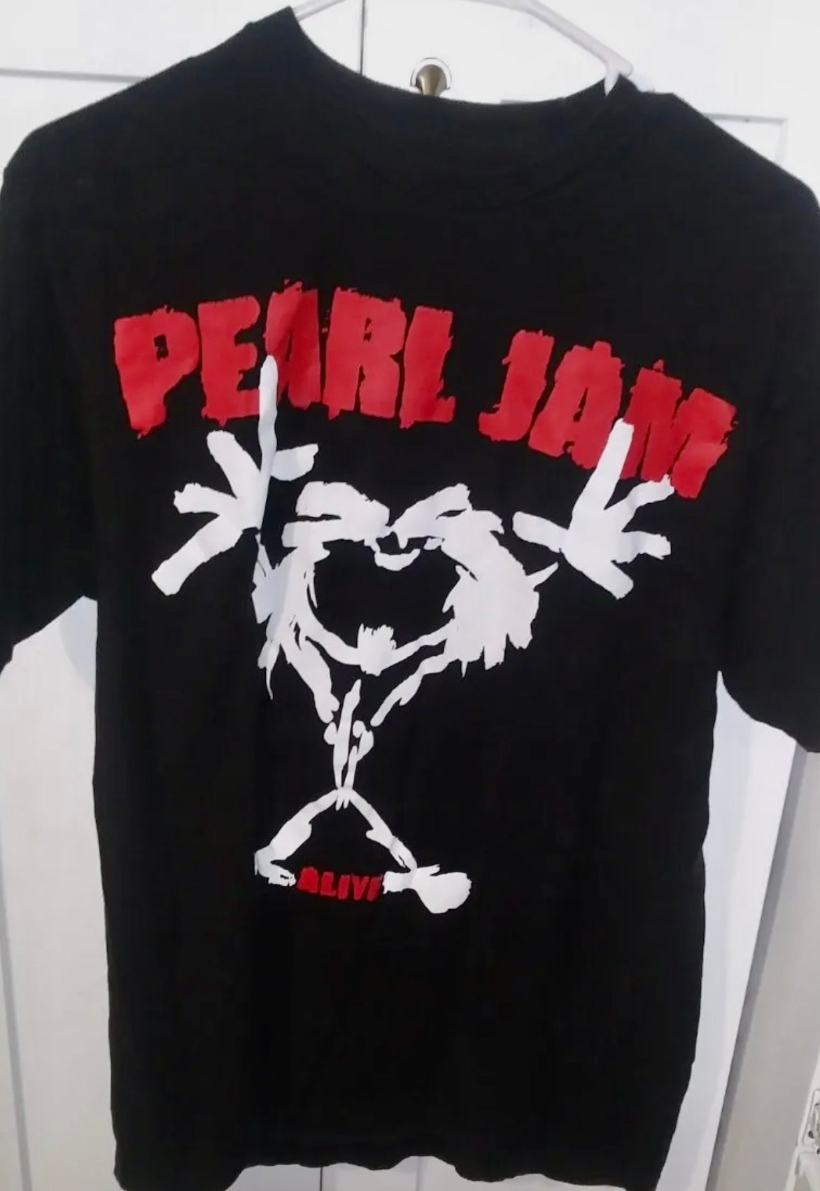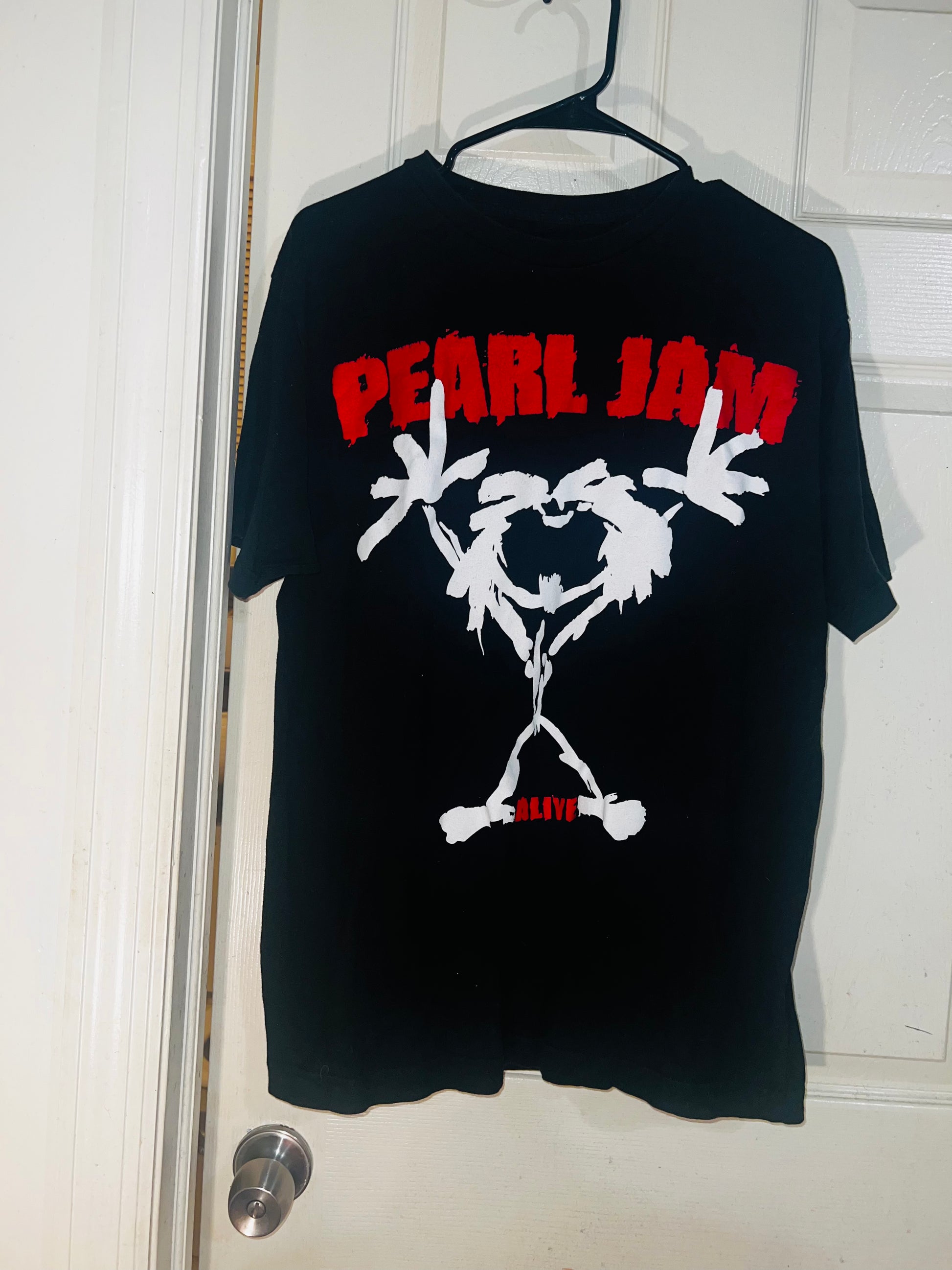 This sold, so it’s now a preorder. Please allow extra processing and shipping time if purchased. A black Pearl Jam oversized tee that’s double sided. The iconic Pearl Jam logo on the front of the tee and the track list on the back. I rarely get Pearl Jam! Size L/XL, oversized.
