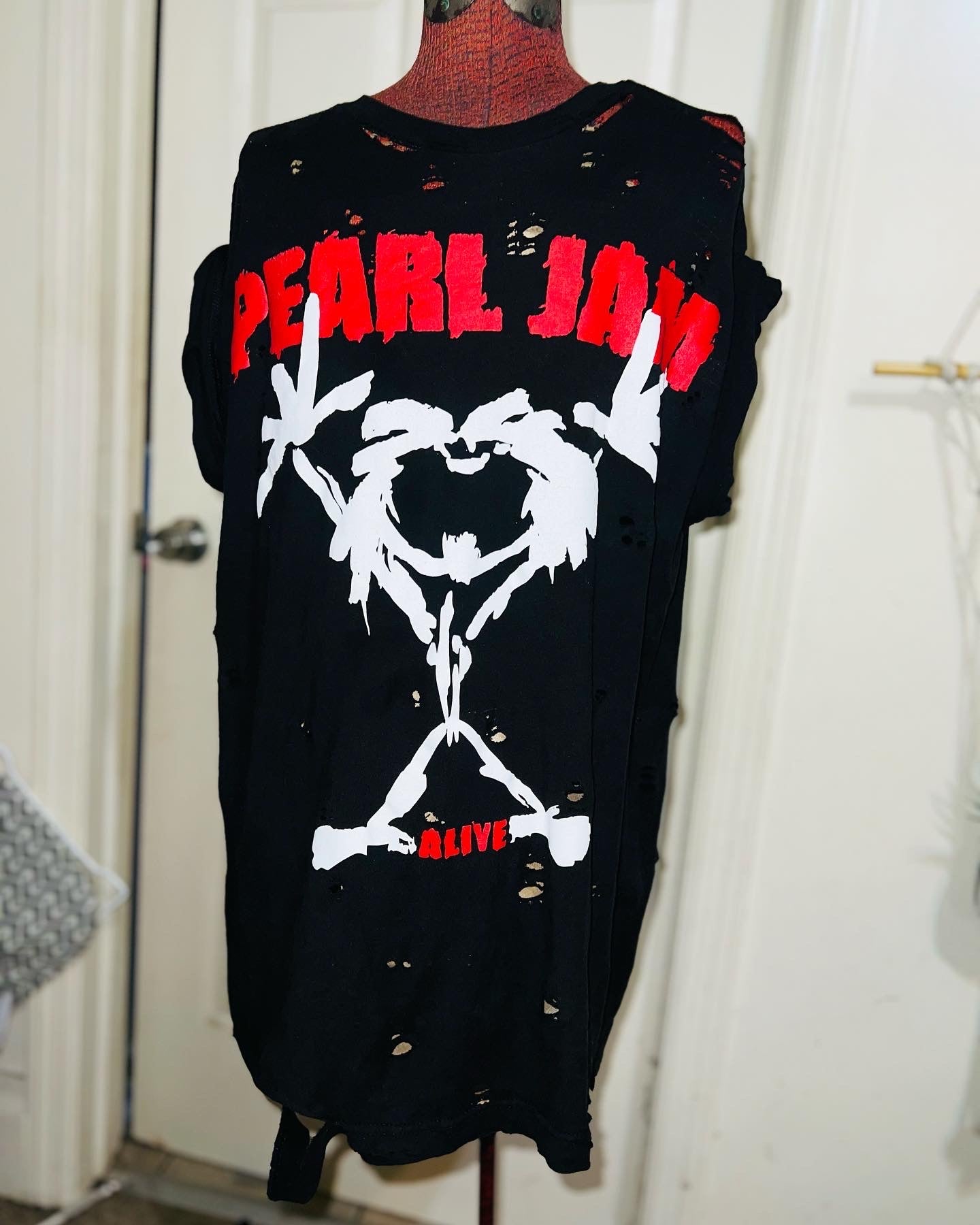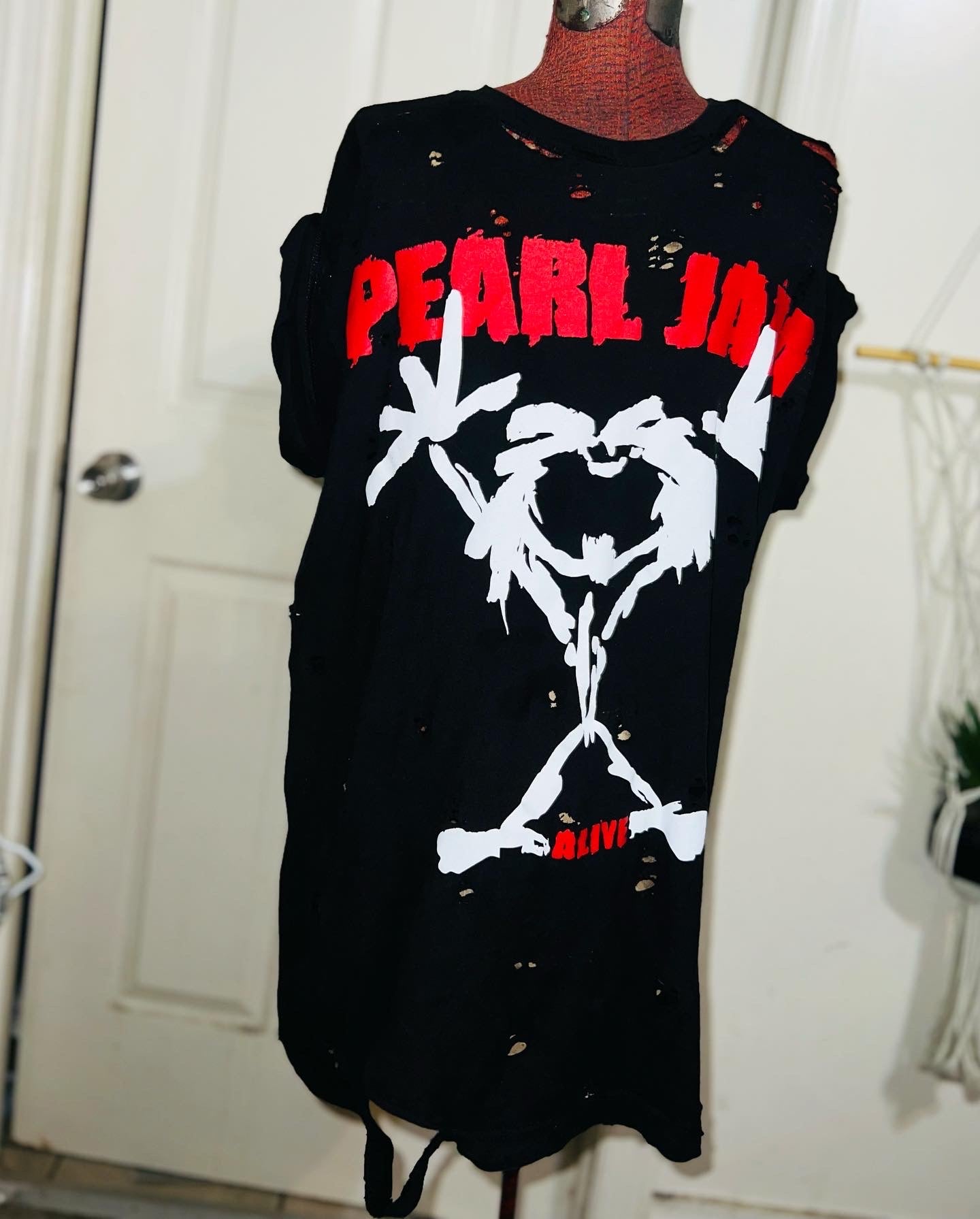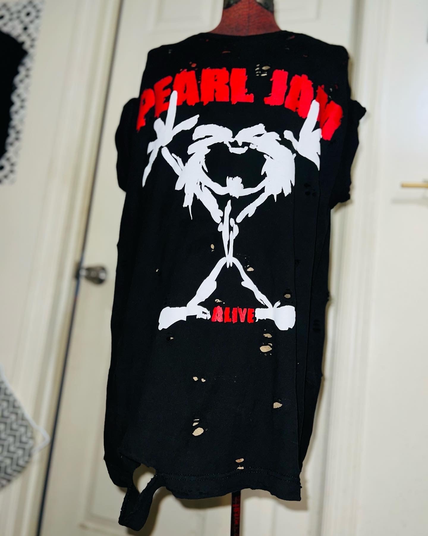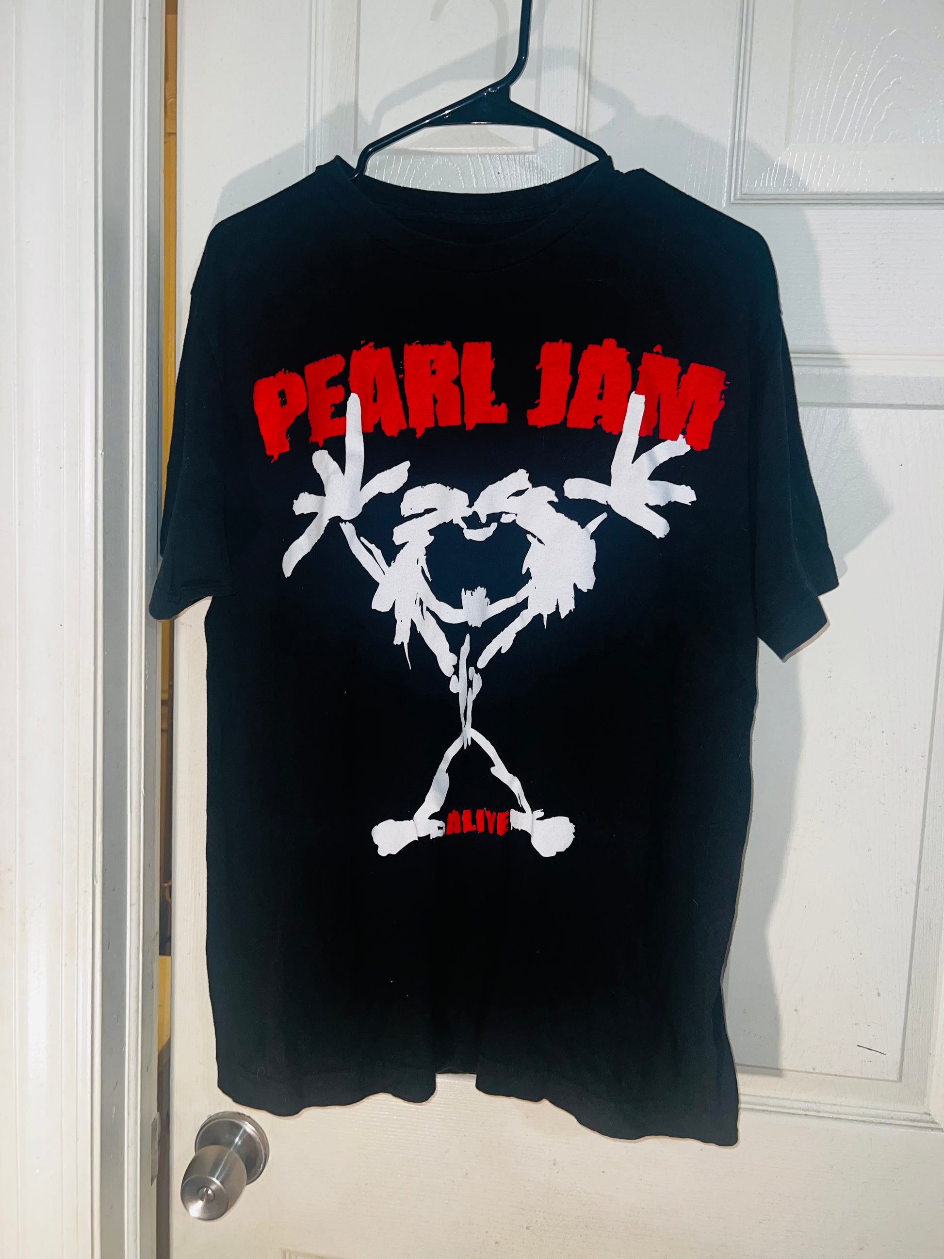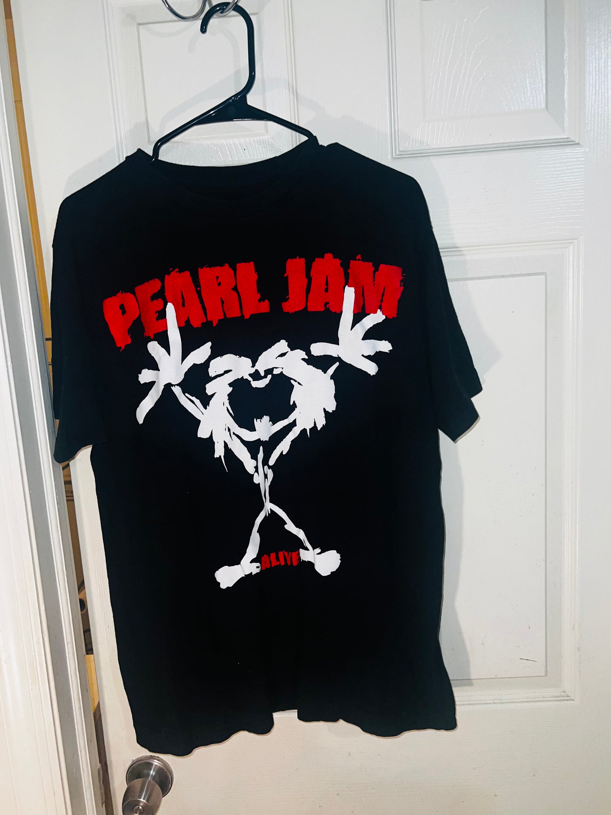 This sold, so it’s now a preorder. Please allow extra processing and shipping time if purchased. A black Pearl Jam oversized tee that’s double sided. The iconic Pearl Jam logo on the front of the tee and the track list on the back. I rarely get Pearl Jam! Size L/XL, oversized.