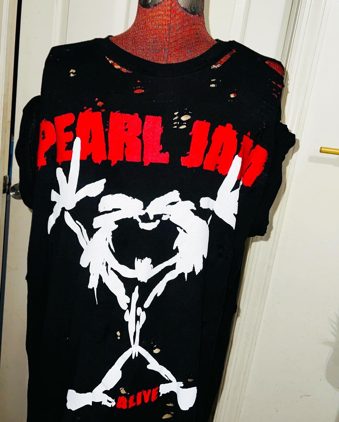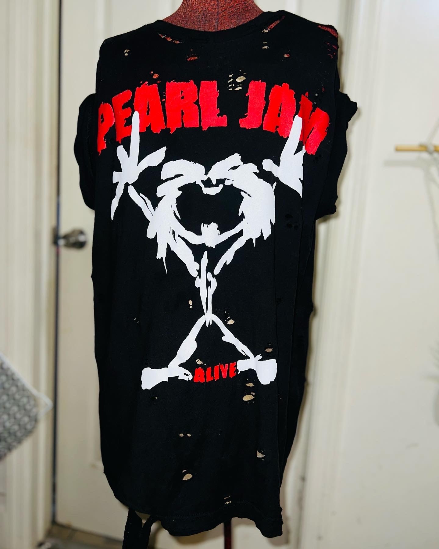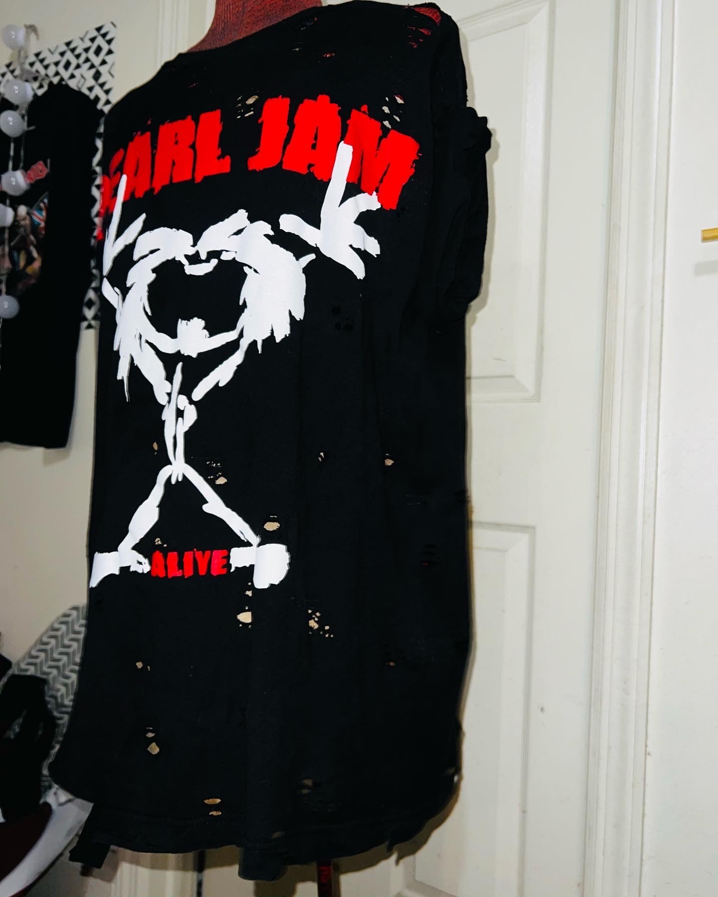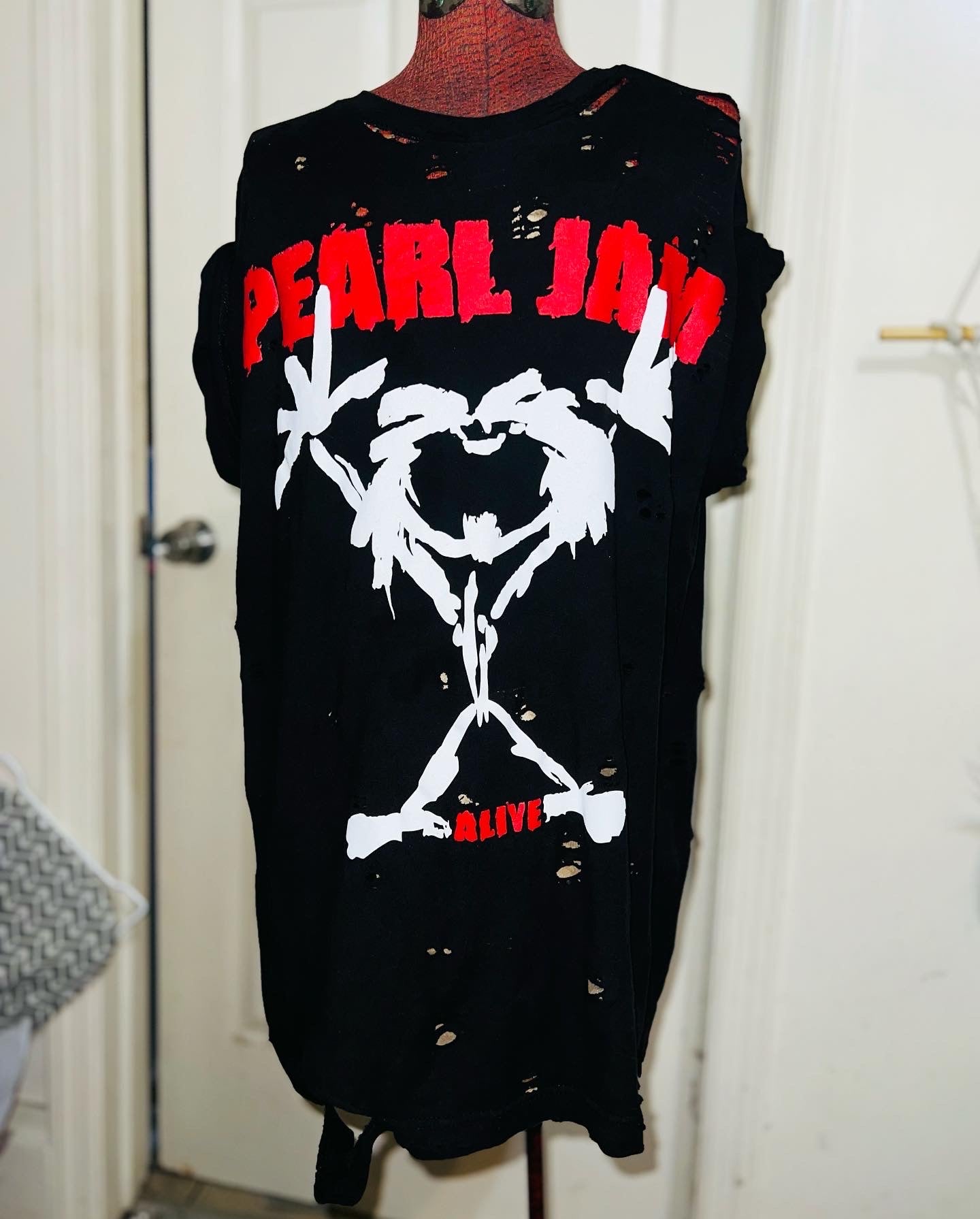 This sold, so it’s now a preorder. Please allow extra processing and shipping time if purchased. A black Pearl Jam oversized tee that’s double sided. The iconic Pearl Jam logo on the front of the tee and the track list on the back. I rarely get Pearl Jam! Size L/XL, oversized.