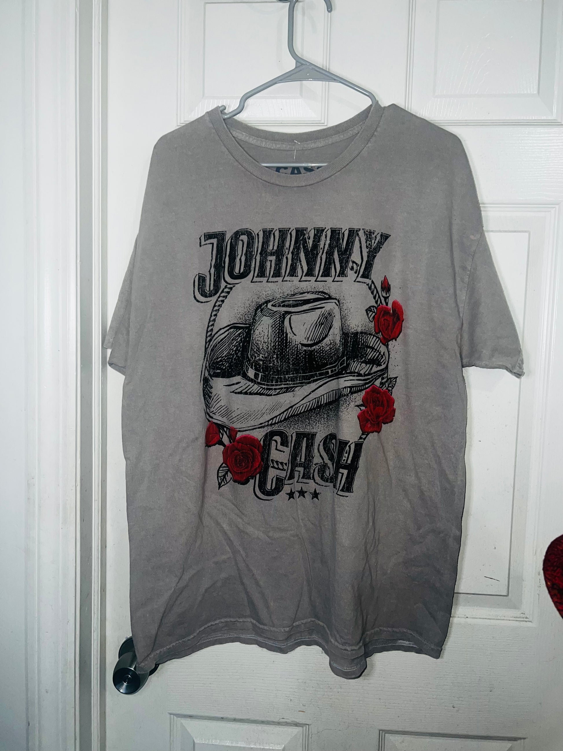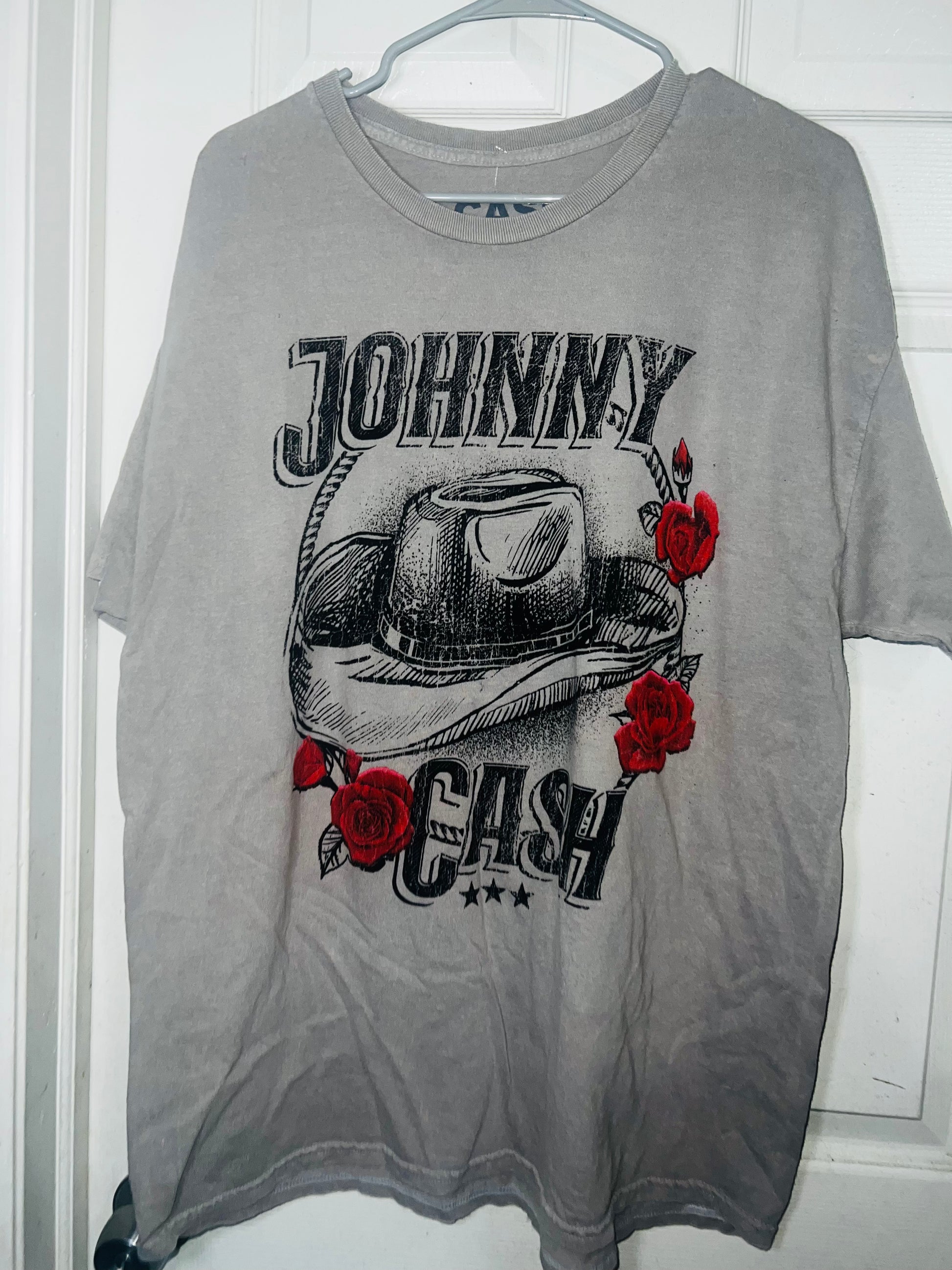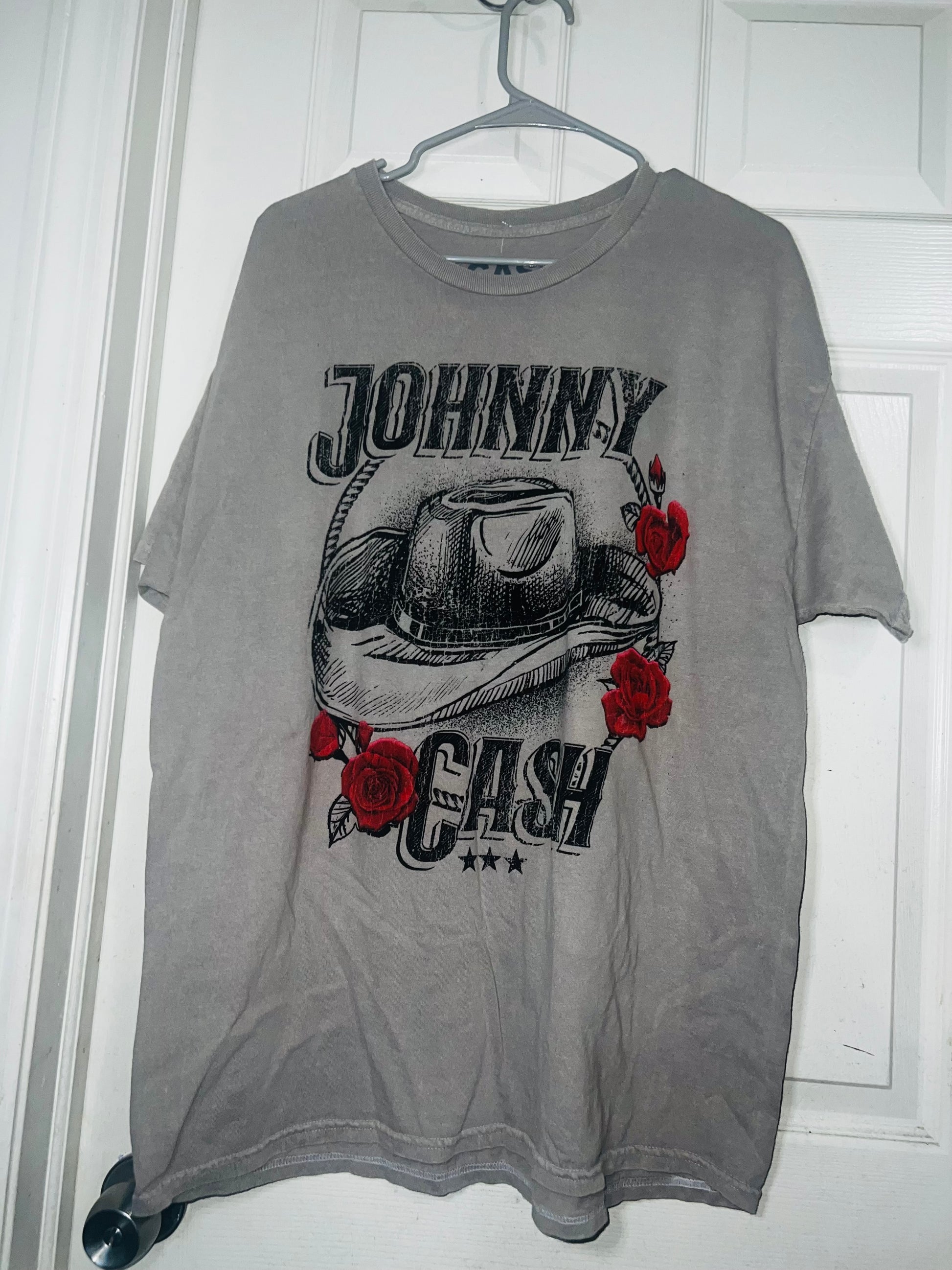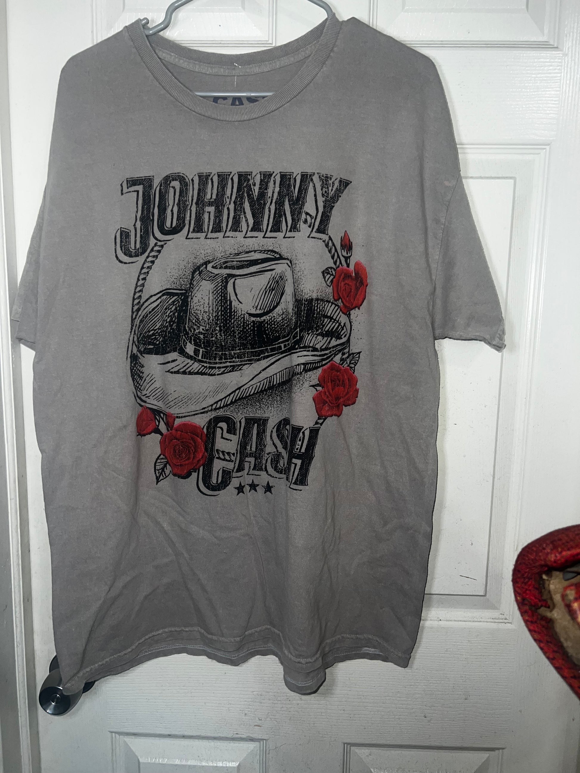 This is a preorder, it’s on its way. Please allow extra time. A beige, oversized super cute Johnny Cash tee! The roses and the cowboy hat give it the western vibe. Size L/XL, comfy and roomy!