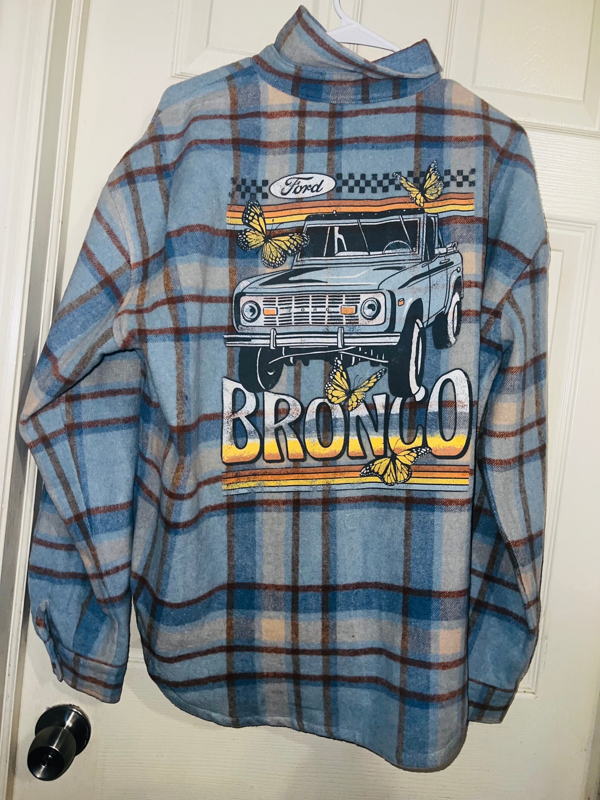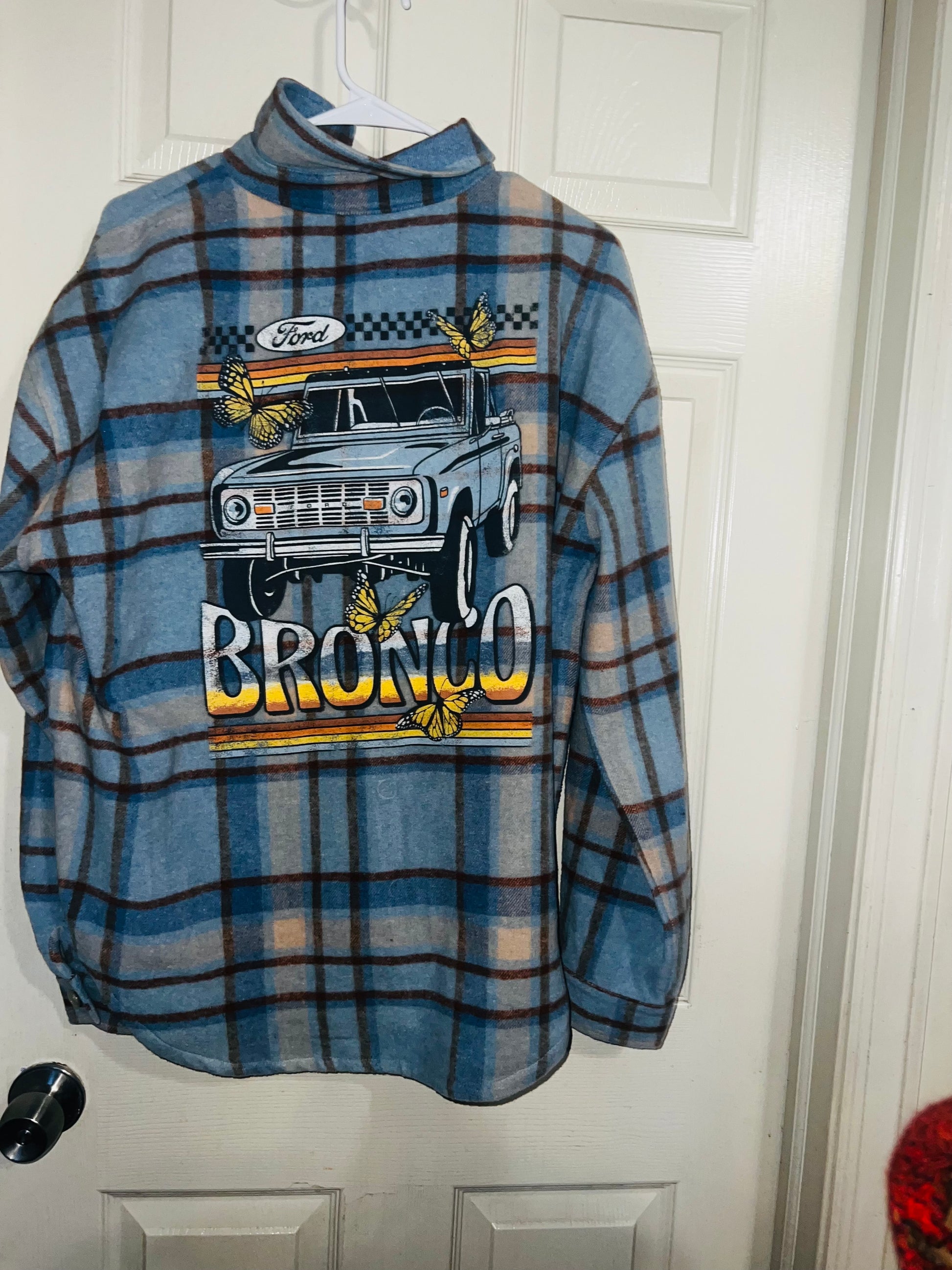 This is a preorder. This VERY comfortable fleece Ford Bronco is so soft and comfortable! The back had an amazing Ford Bronco decal. Oversized! I can distress the edges and whatever you’d like. Size XL.