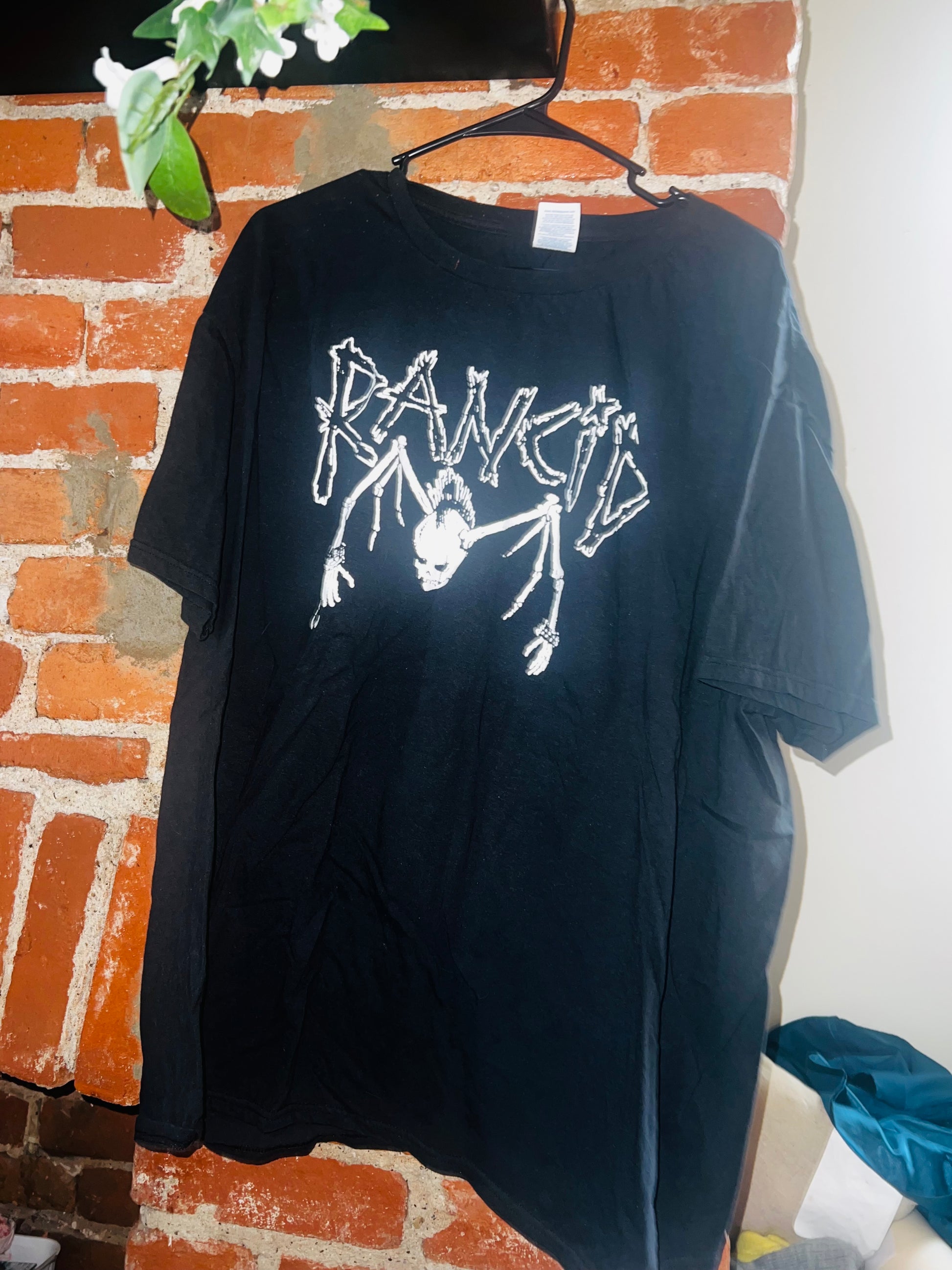 This is a preorder, please allow extra time for processing and shipping. Perfecr for punk fans, this Rancid tee has the spider graphic and their logo. Matches everything, soft, oversized, and amazing! Because it’s vintage, there are some slight dots on bleach on the back of a sleeve and just a couple on the front I can try to distress around. I can also add bleach. Size XL, oversized.