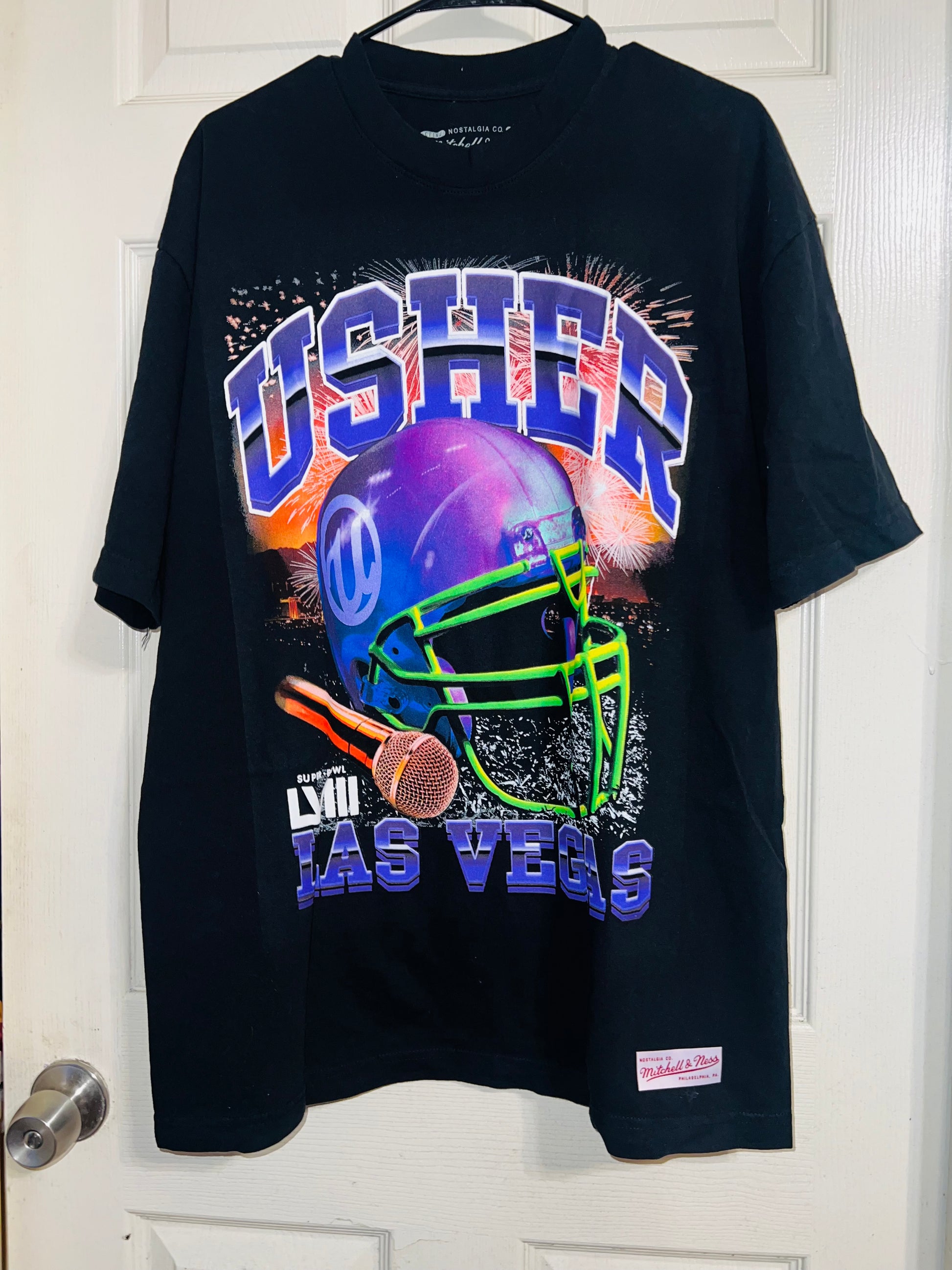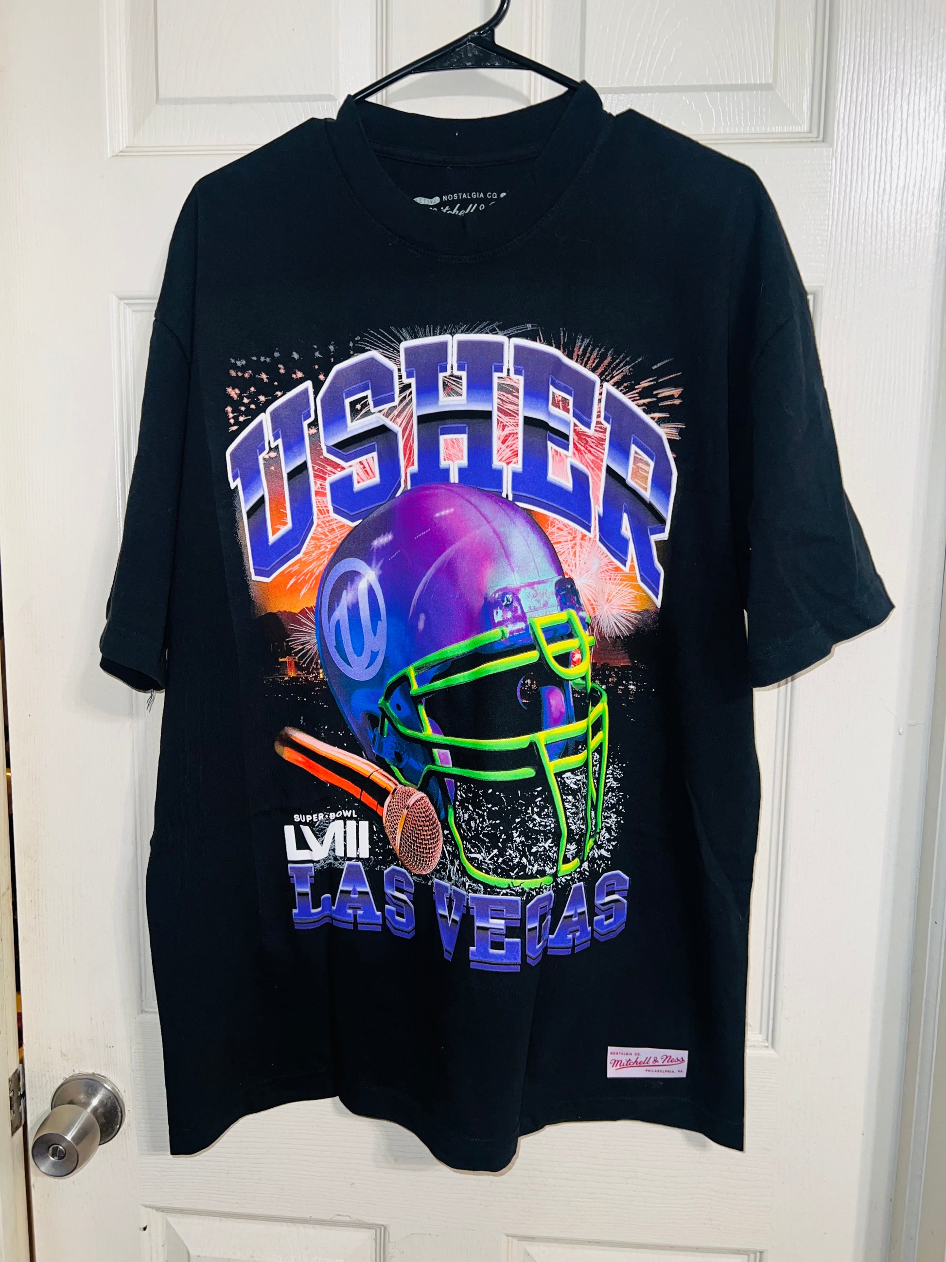A black Usher halftime performance tee from the Super Bowl. Super cool and unique to have as a memory and to keep and grow in value! Size L/XL, oversized.