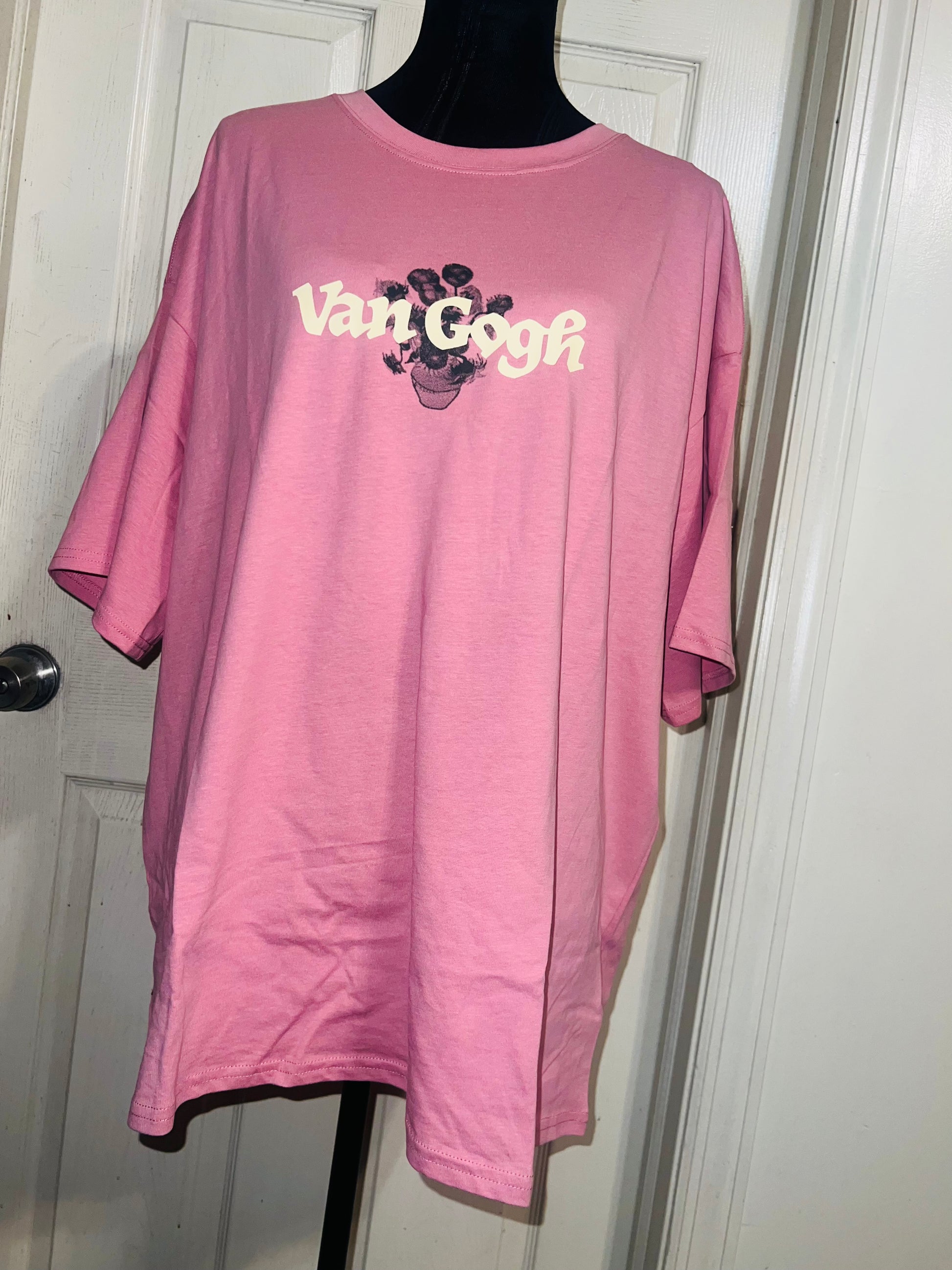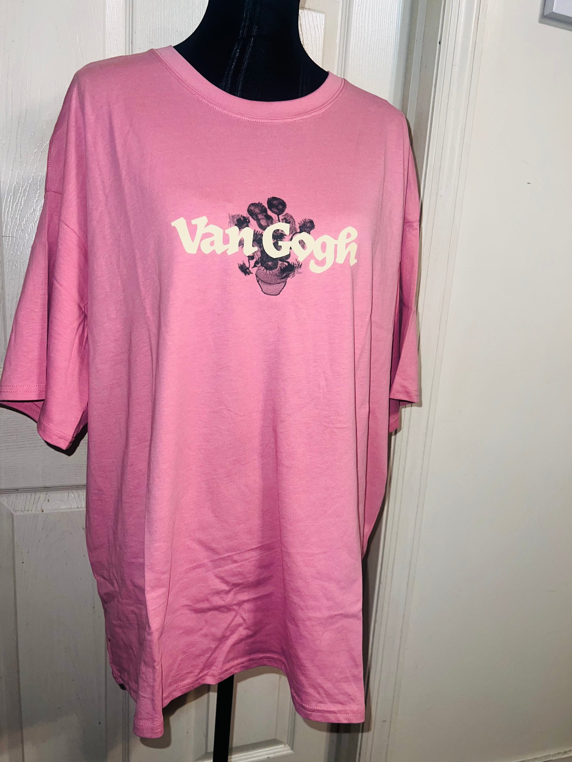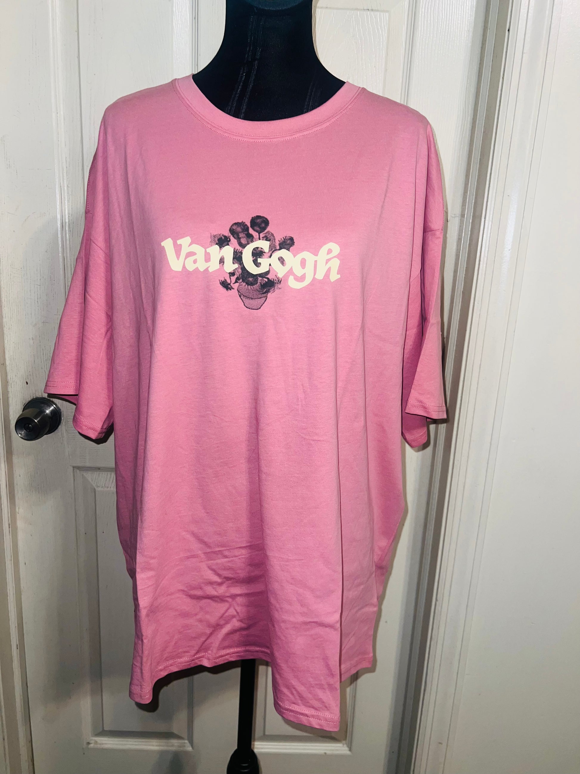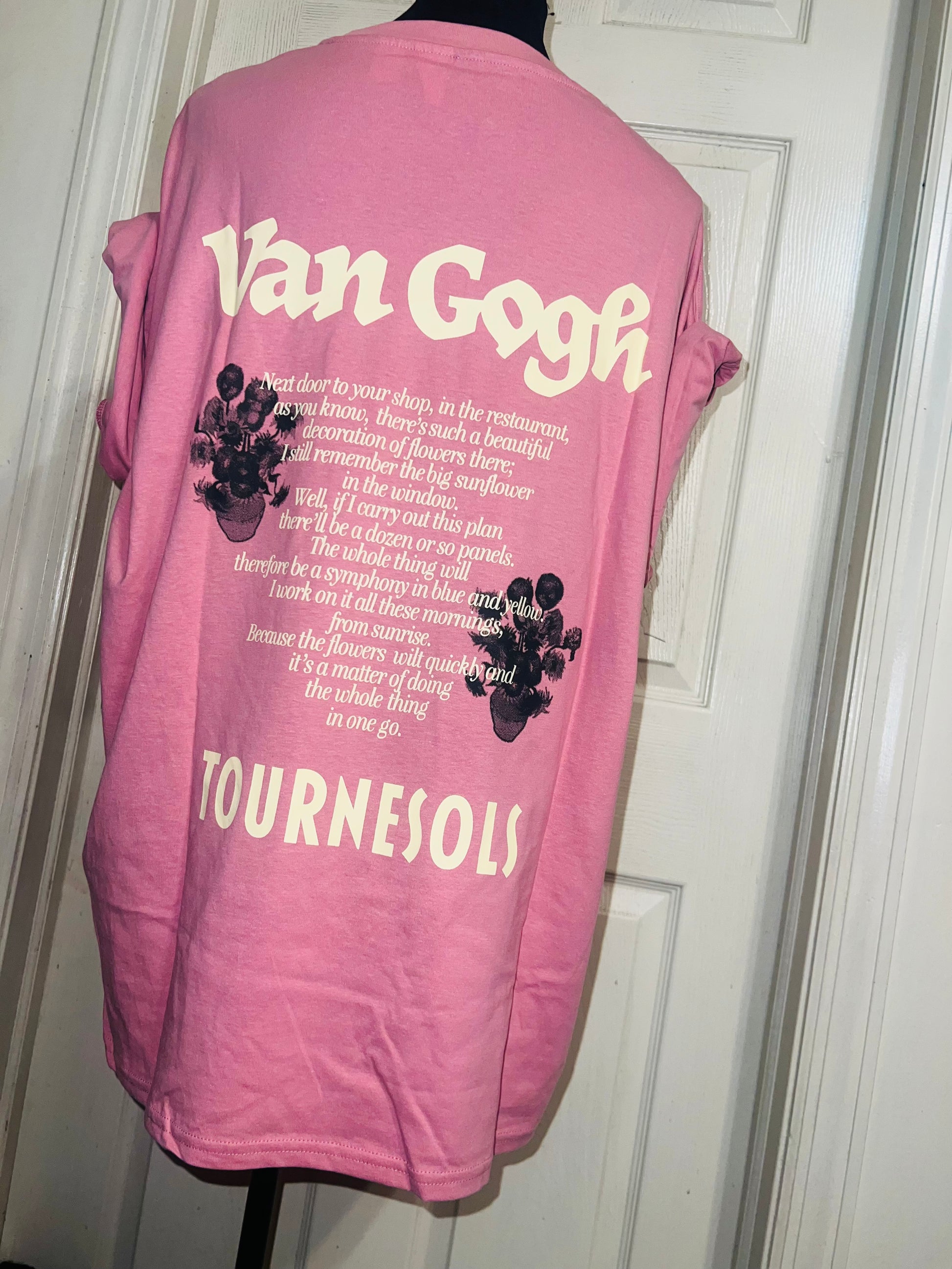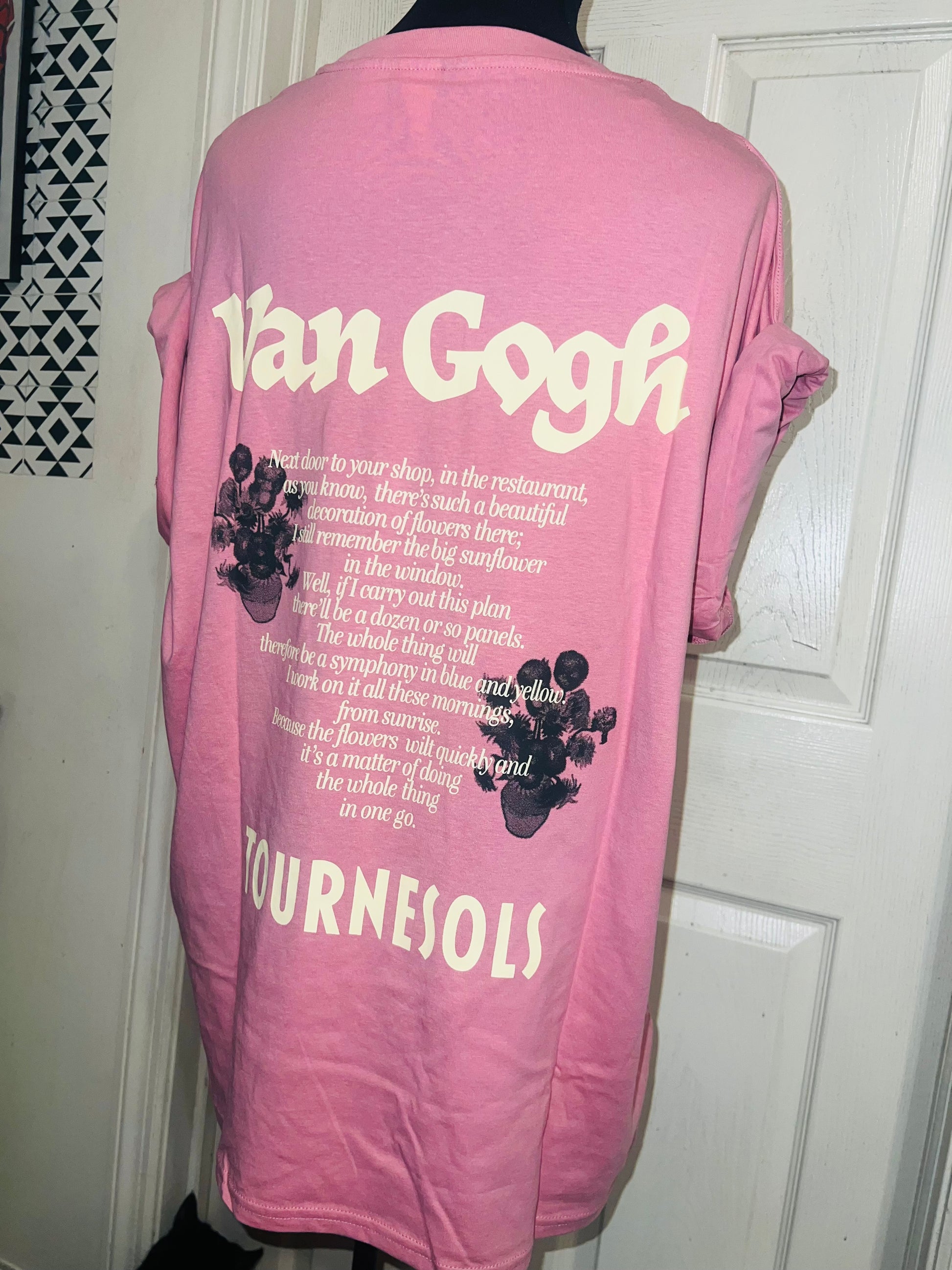 A pale pink double sided Vincent Van Gogh tee with drop shoulders. Tournesols writing on the back, so cute and unique. Size XL, oversized.