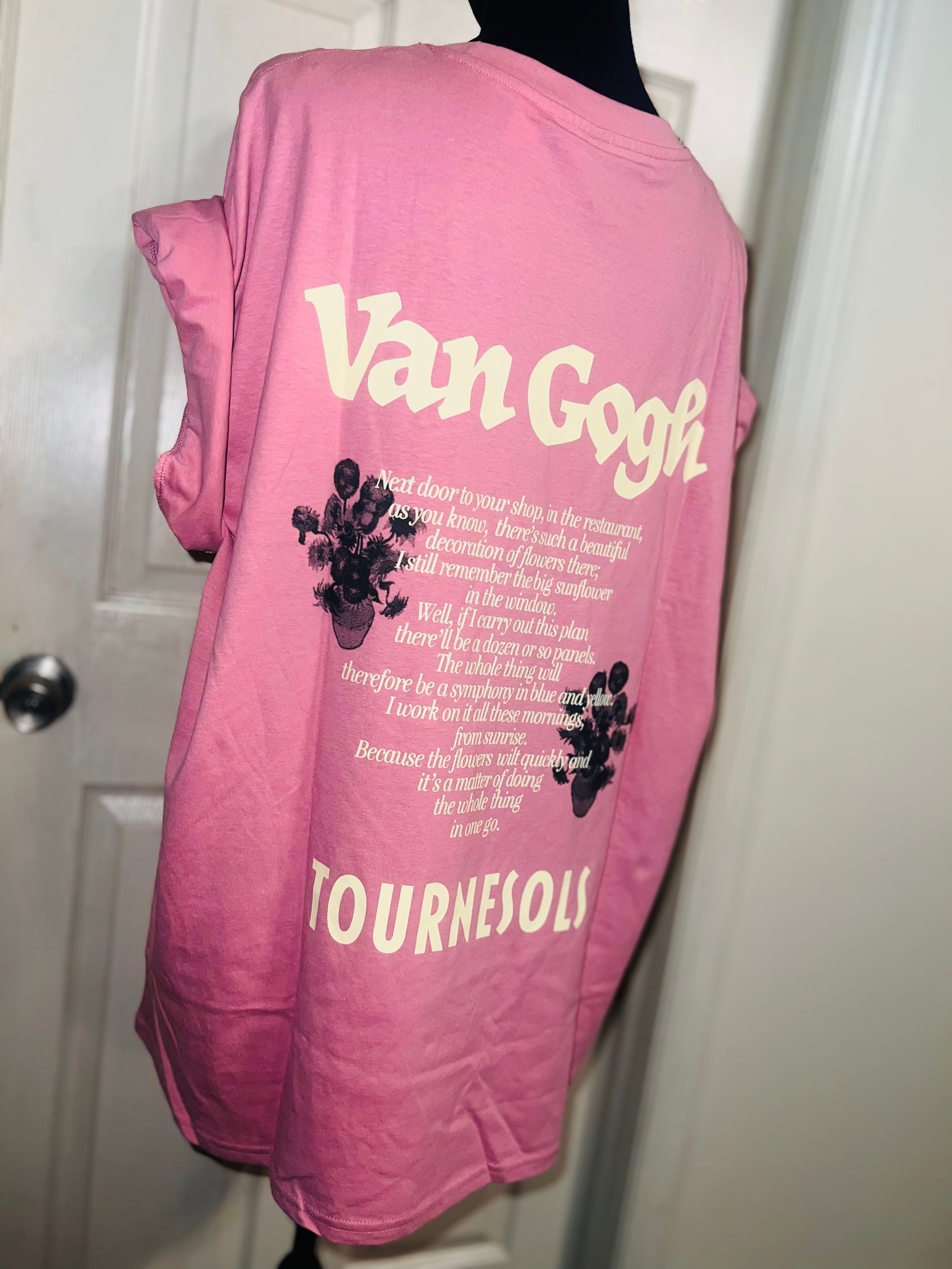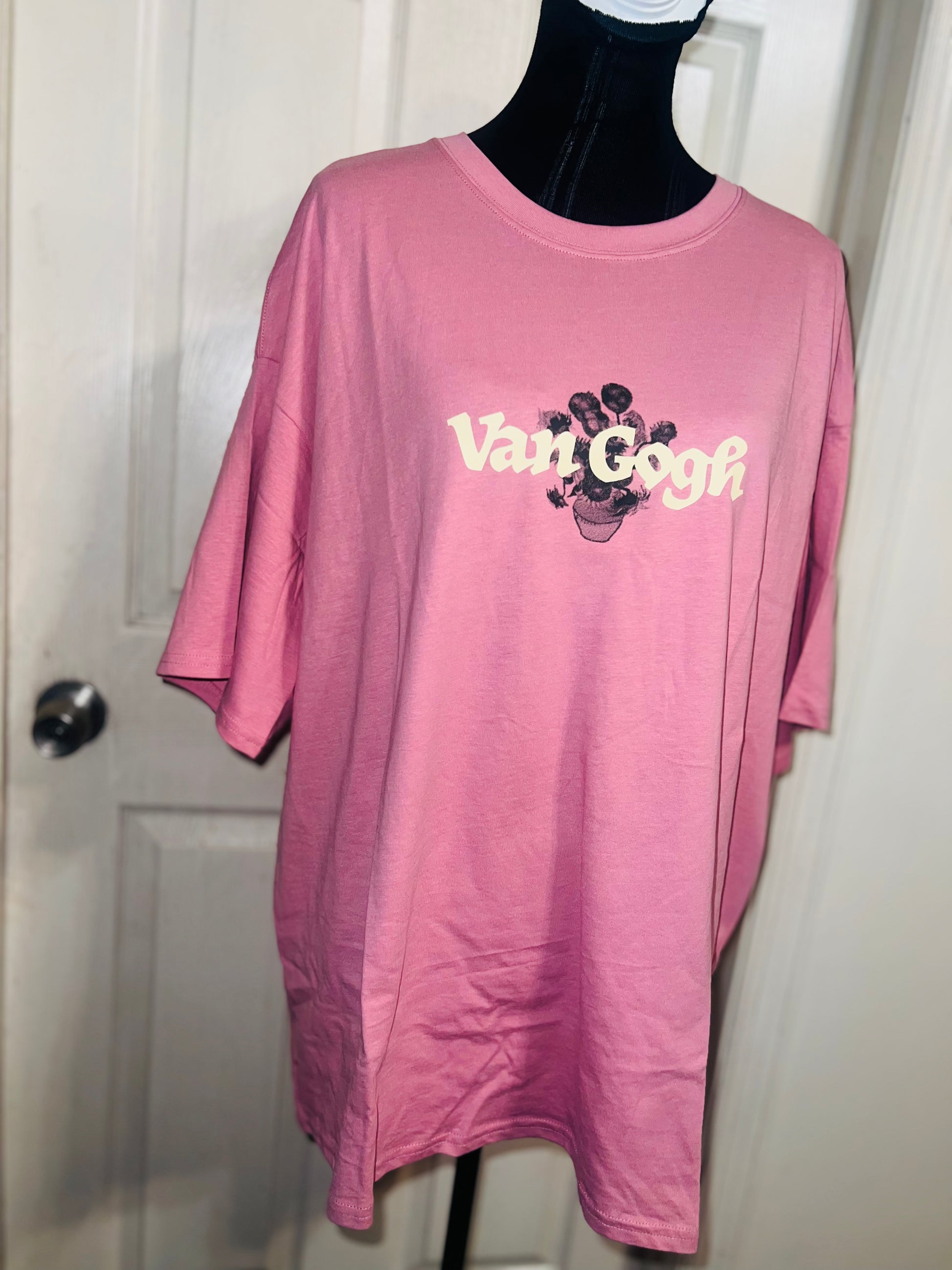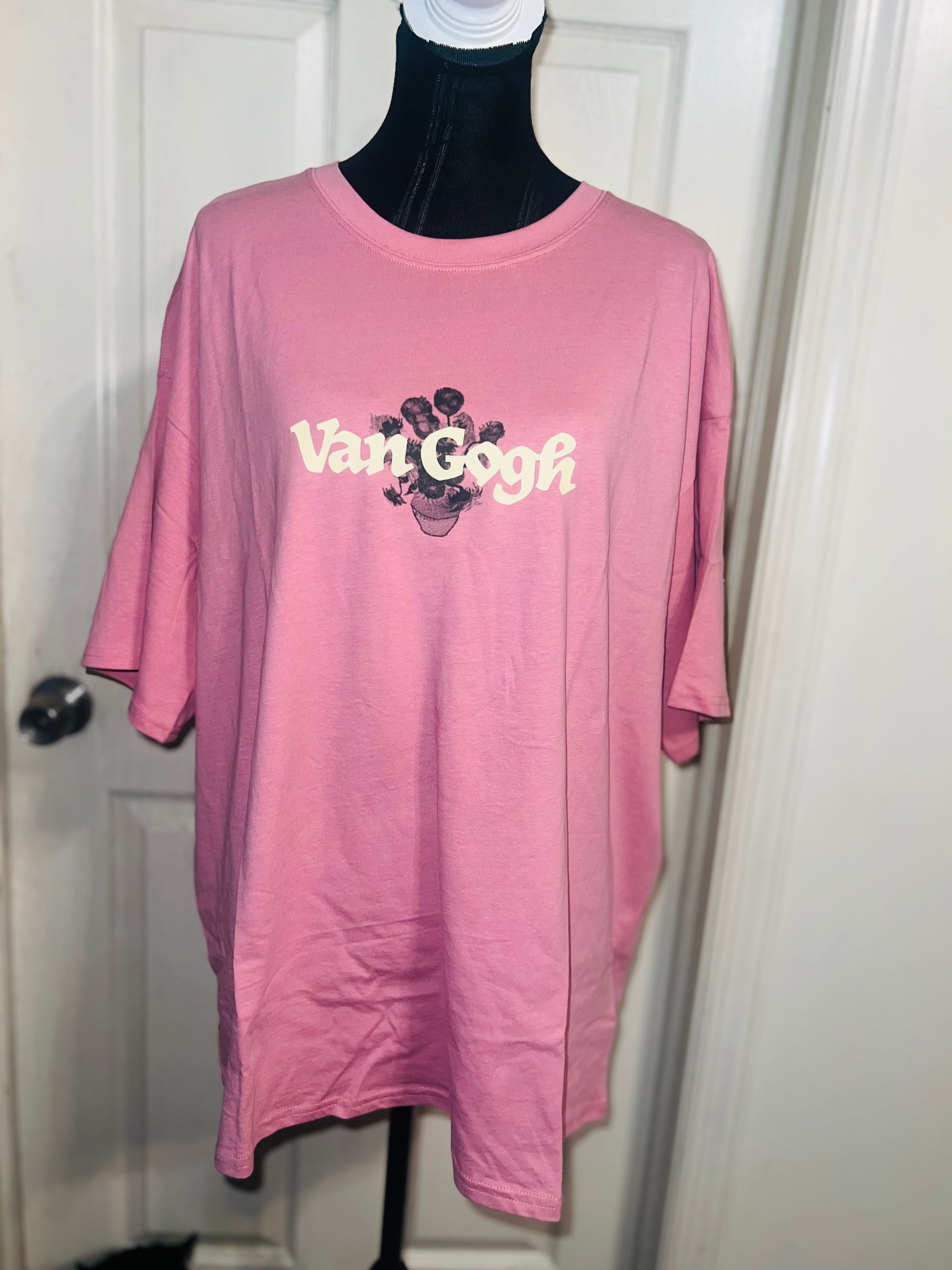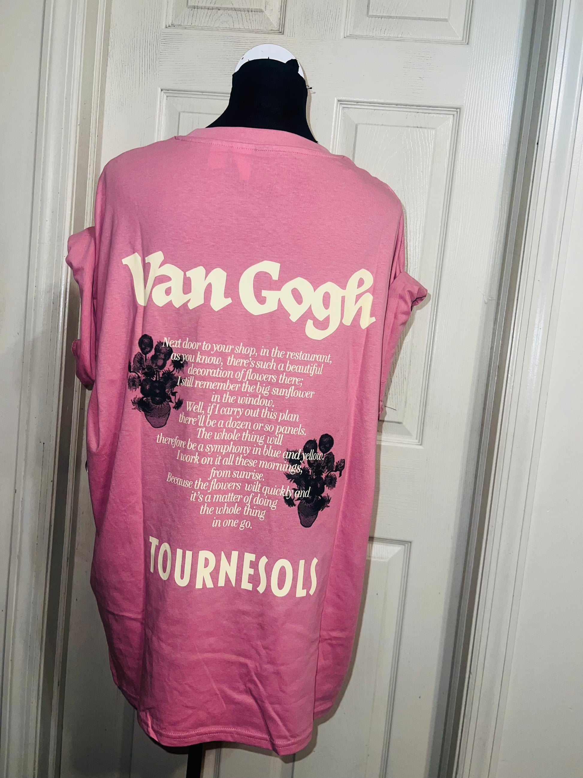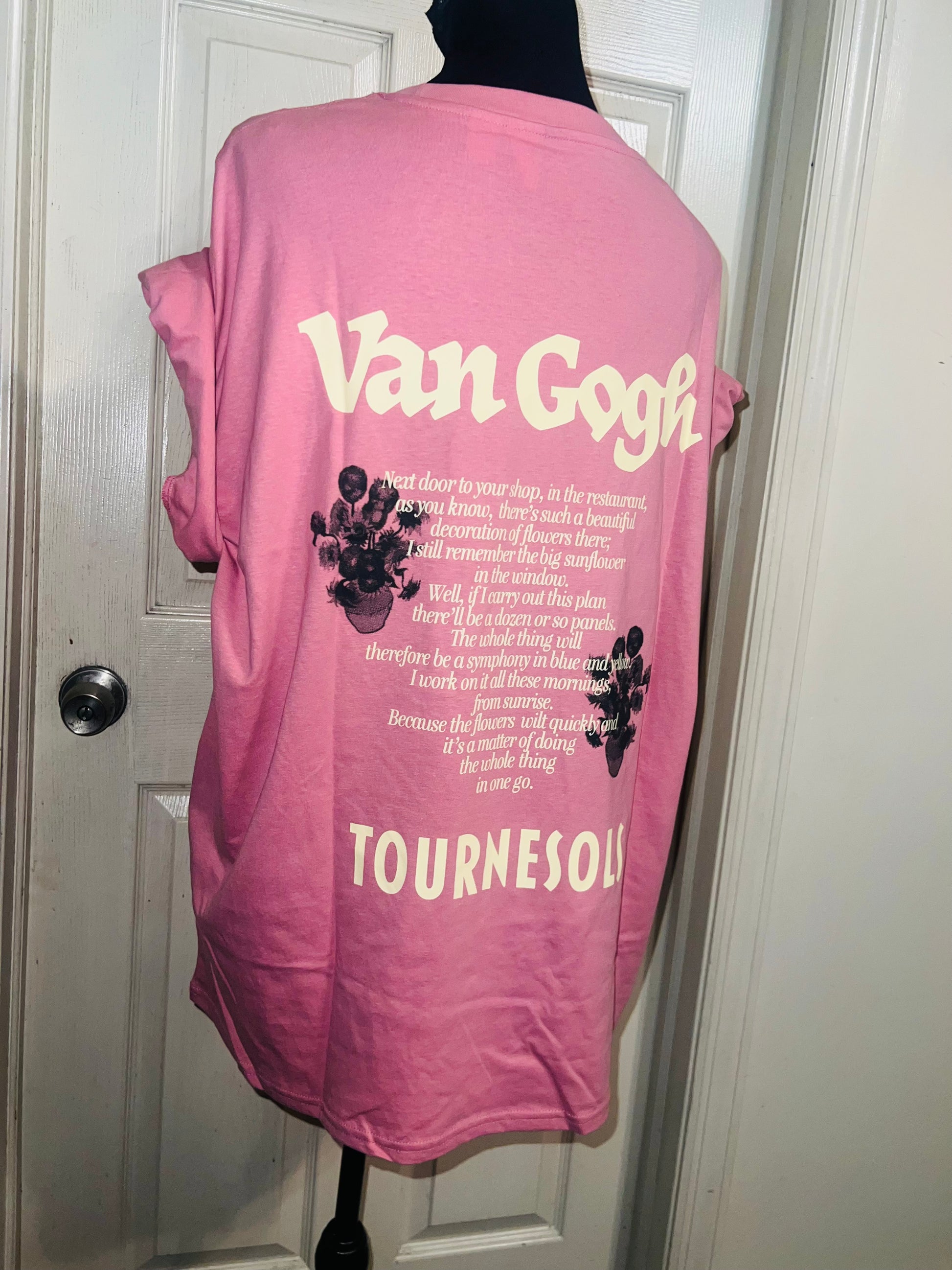 A pale pink double sided Vincent Van Gogh tee with drop shoulders. Tournesols writing on the back, so cute and unique. Size XL, oversized.
