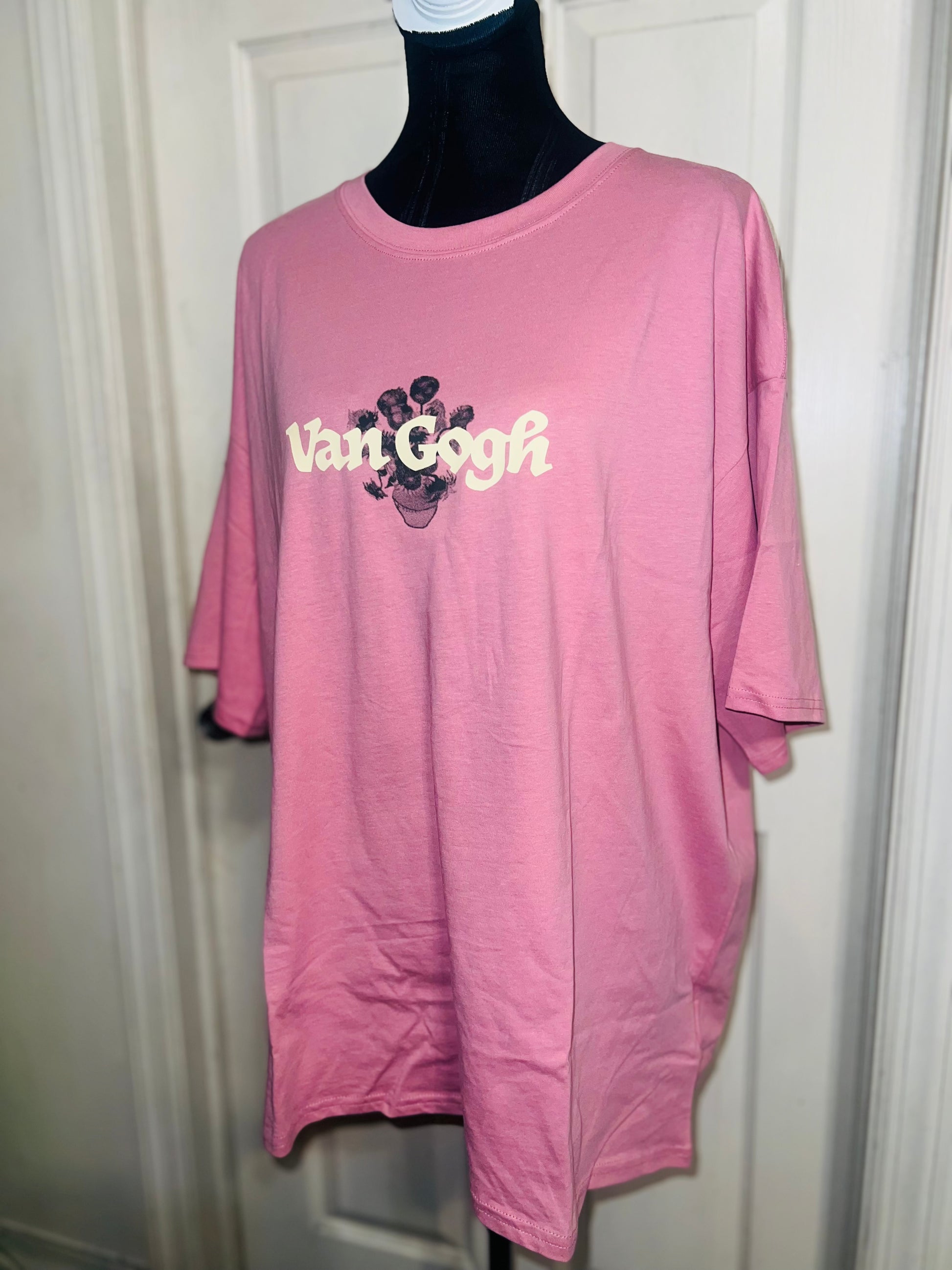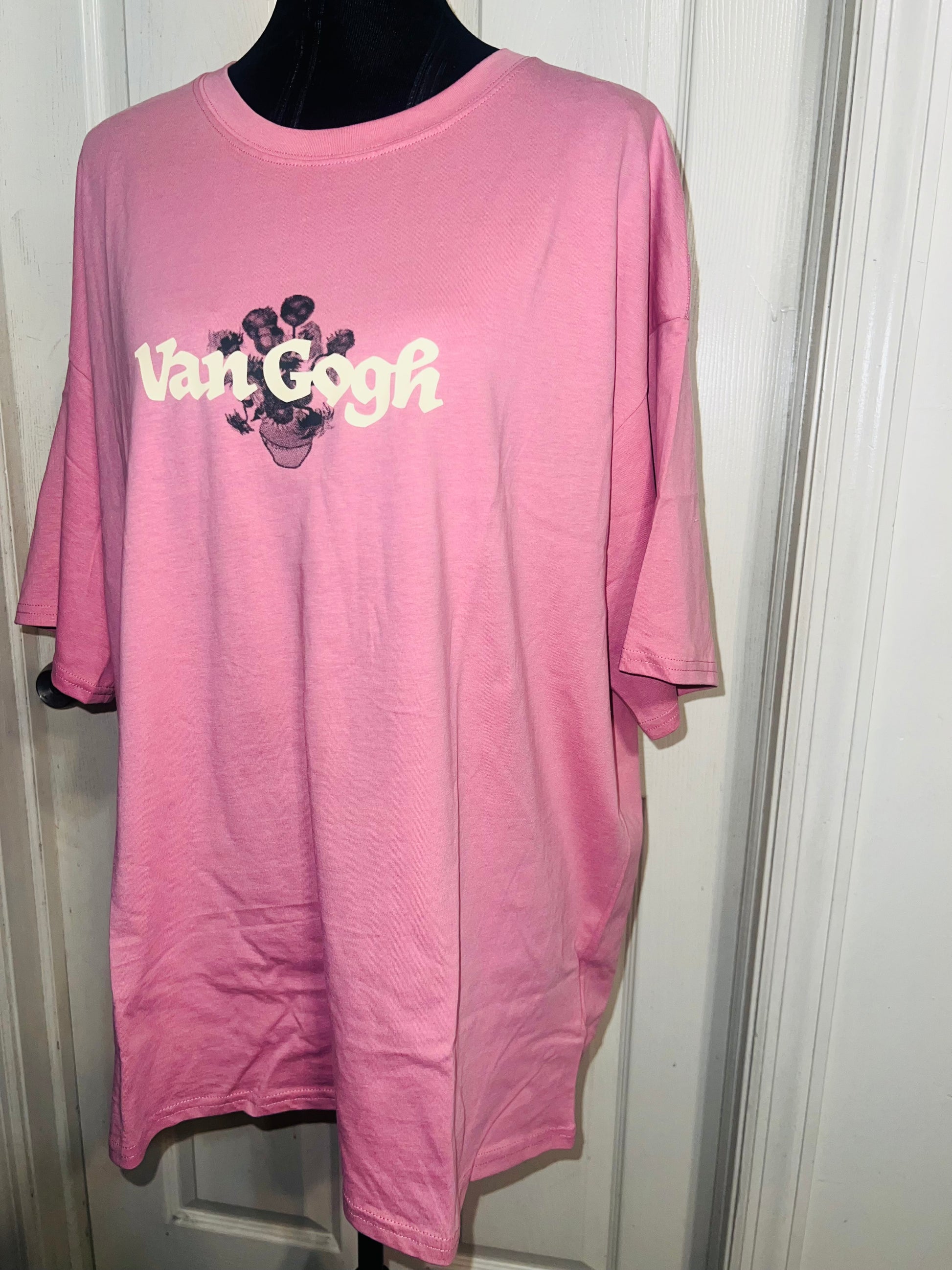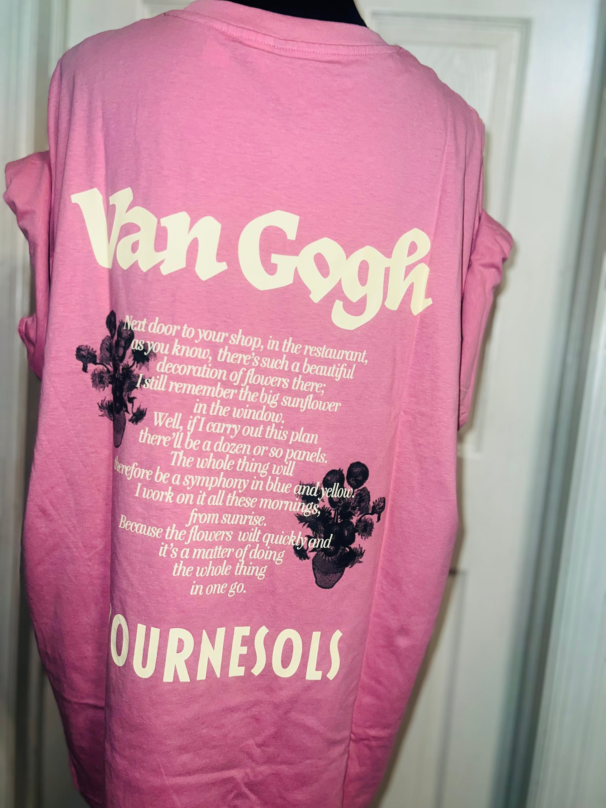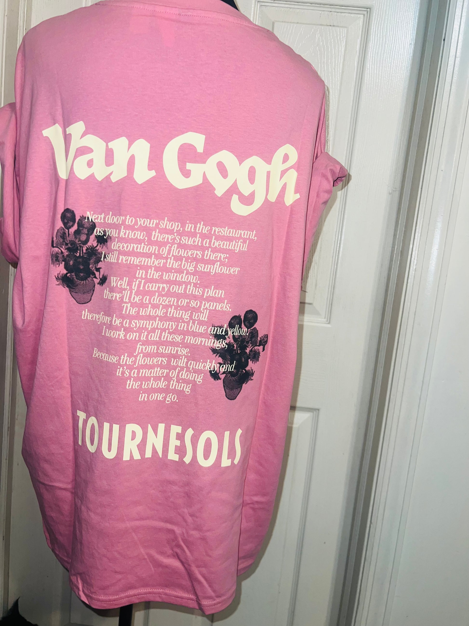 A pale pink double sided Vincent Van Gogh tee with drop shoulders. Tournesols writing on the back, so cute and unique. Size XL, oversized.