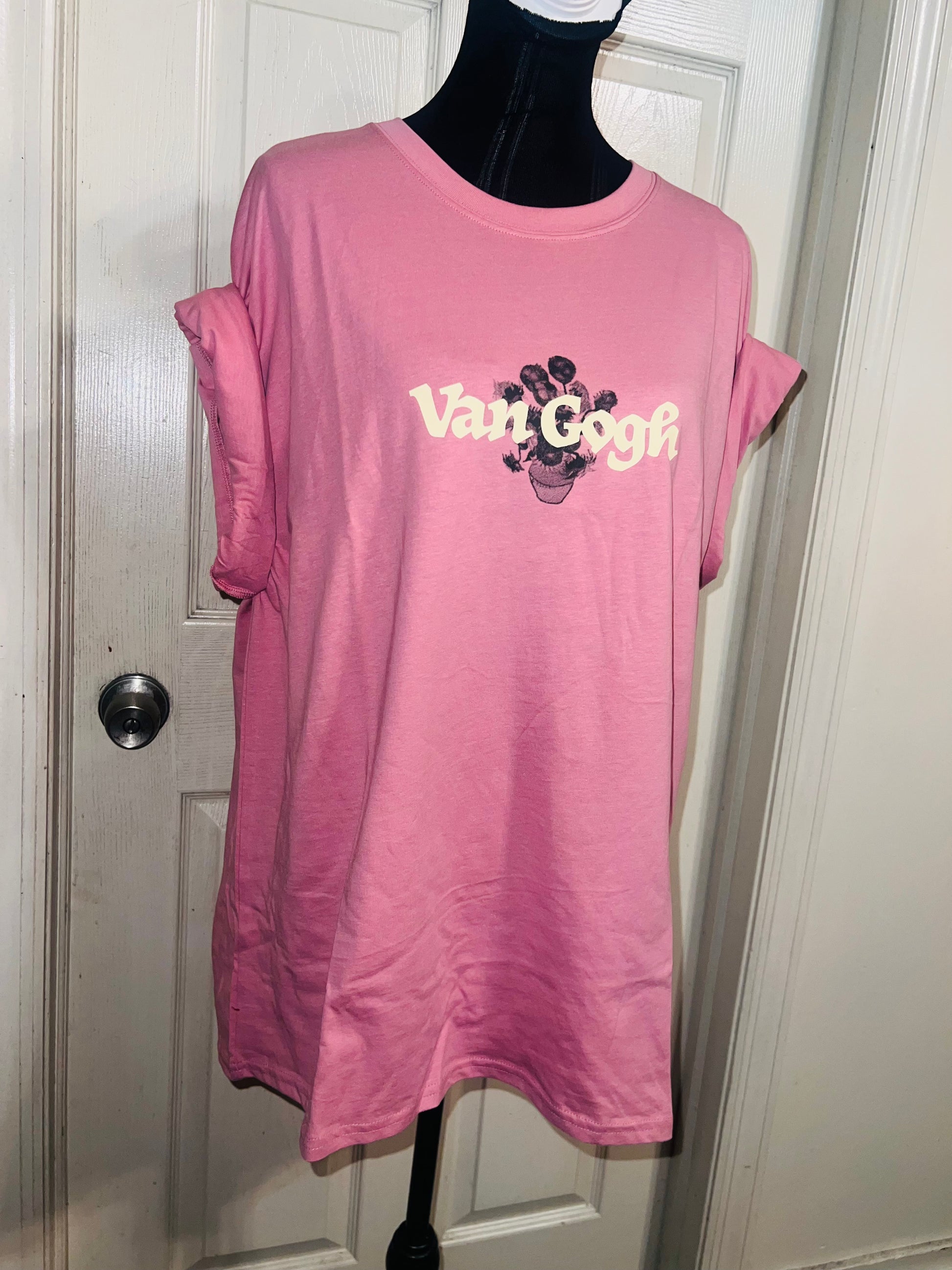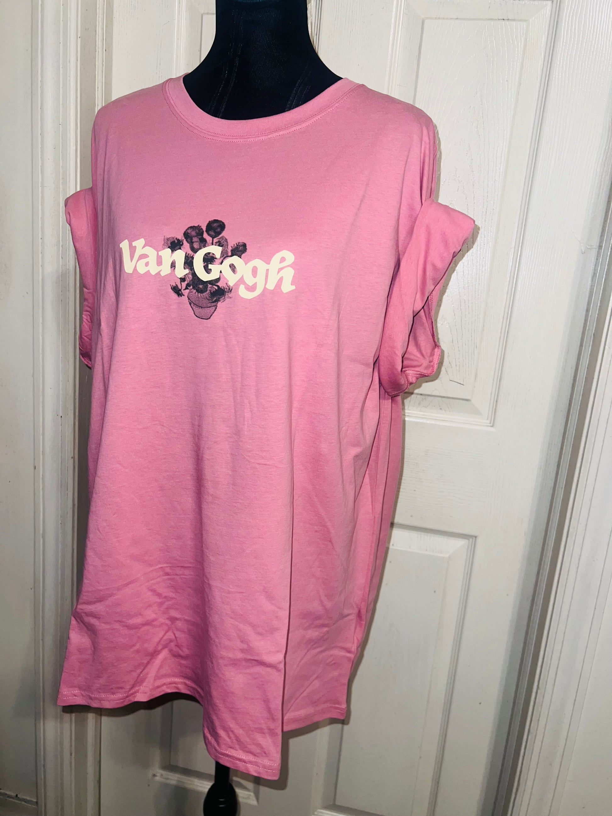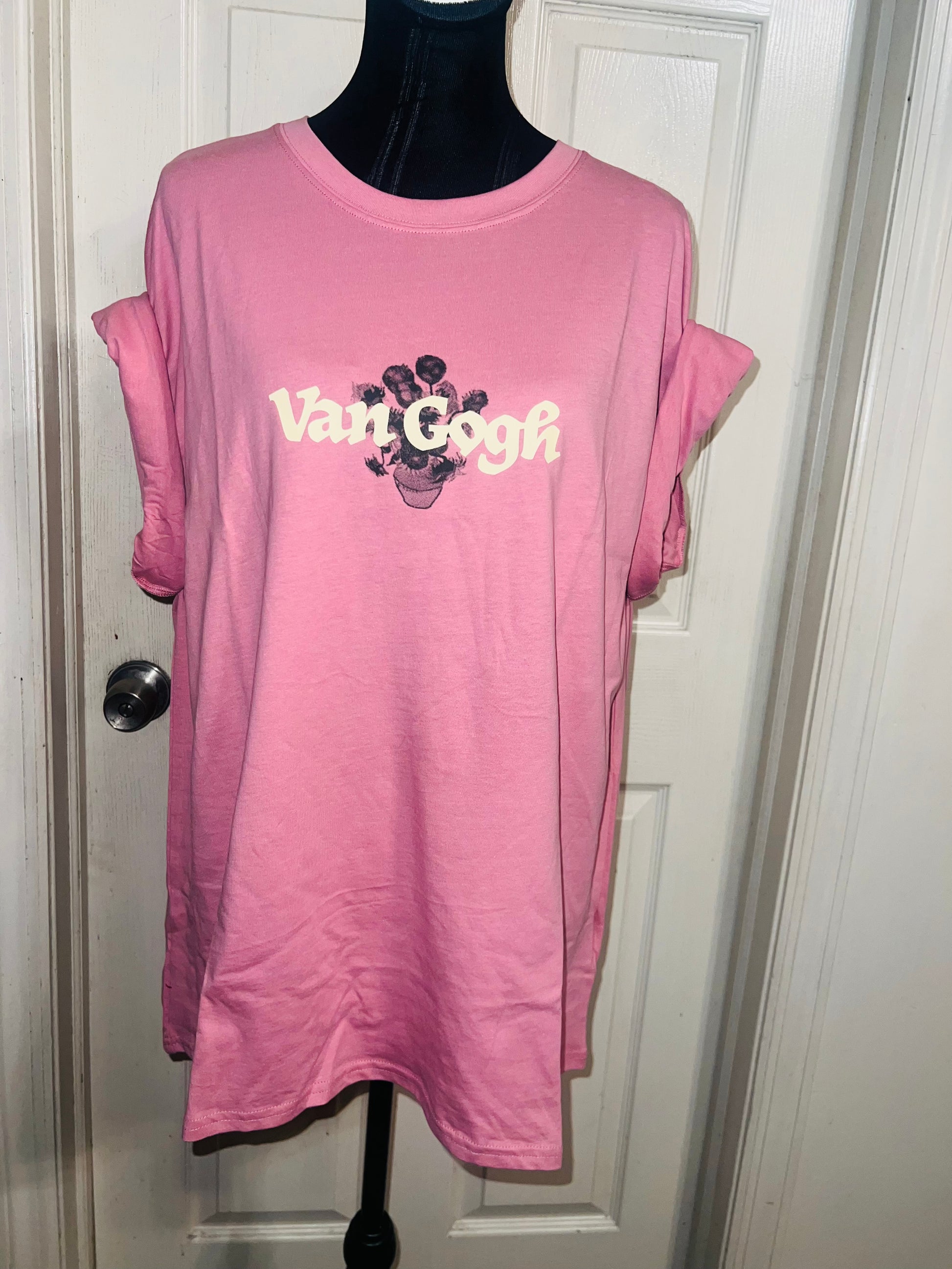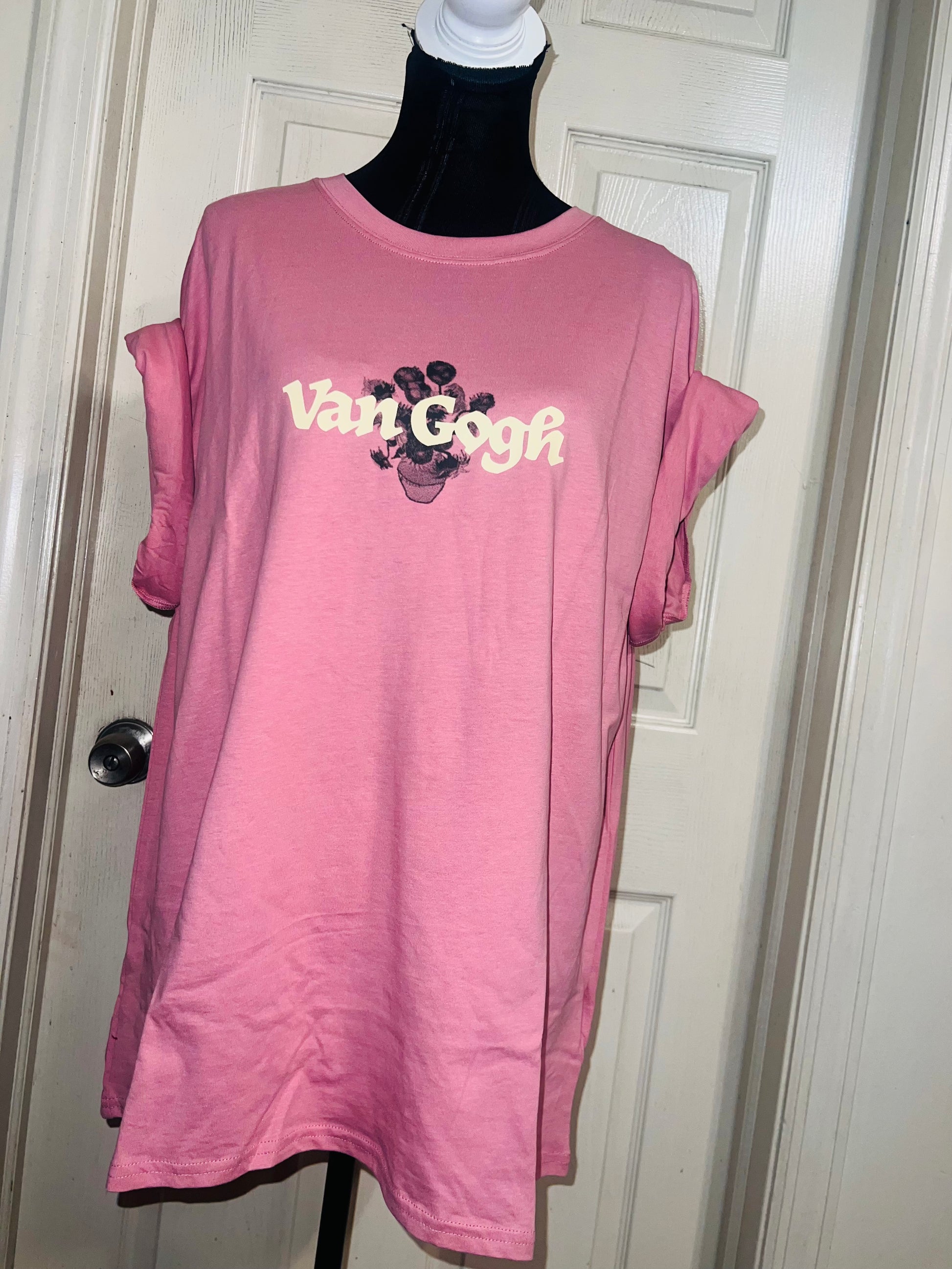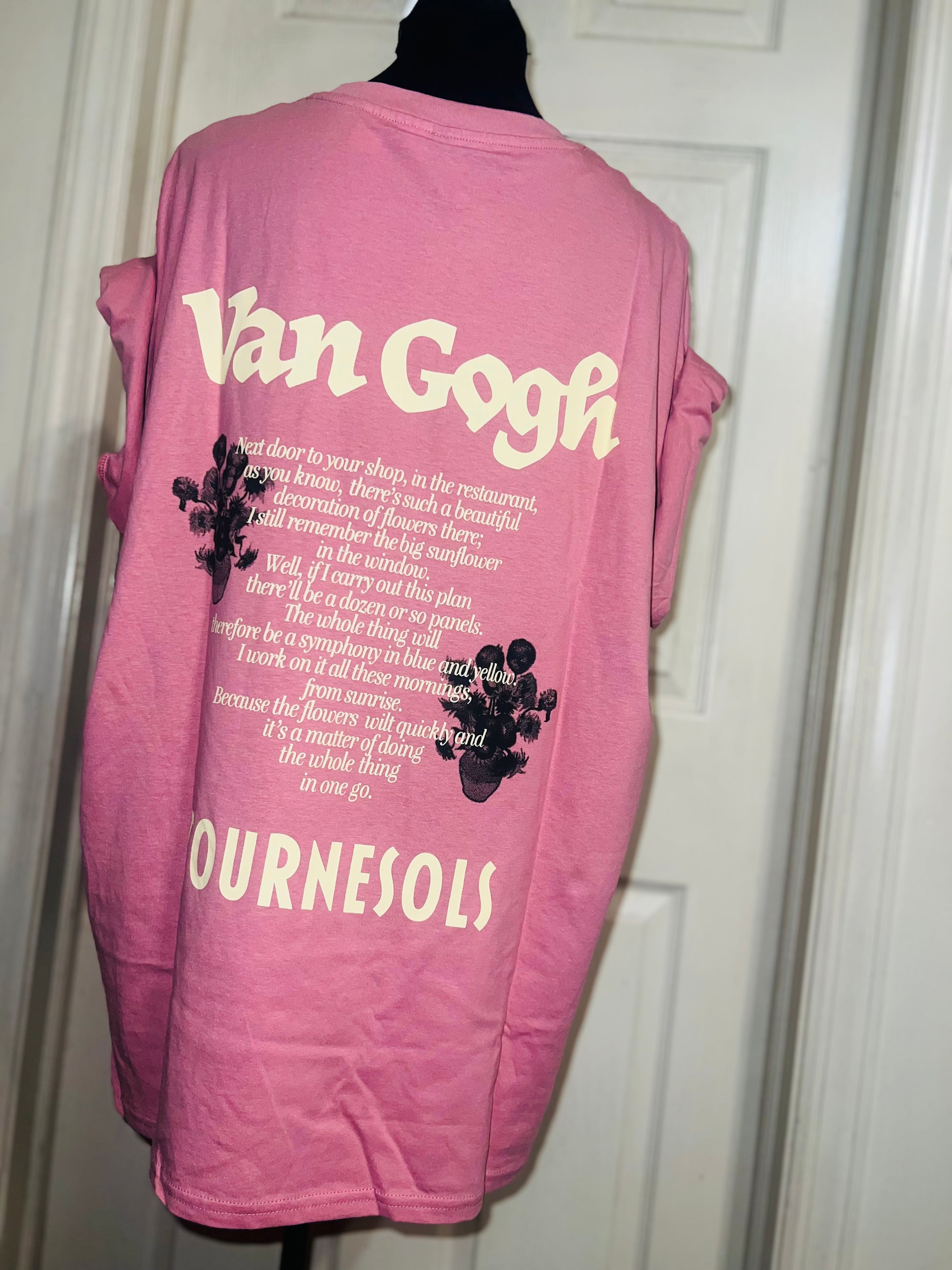 A pale pink double sided Vincent Van Gogh tee with drop shoulders. Tournesols writing on the back, so cute and unique. Size XL, oversized.