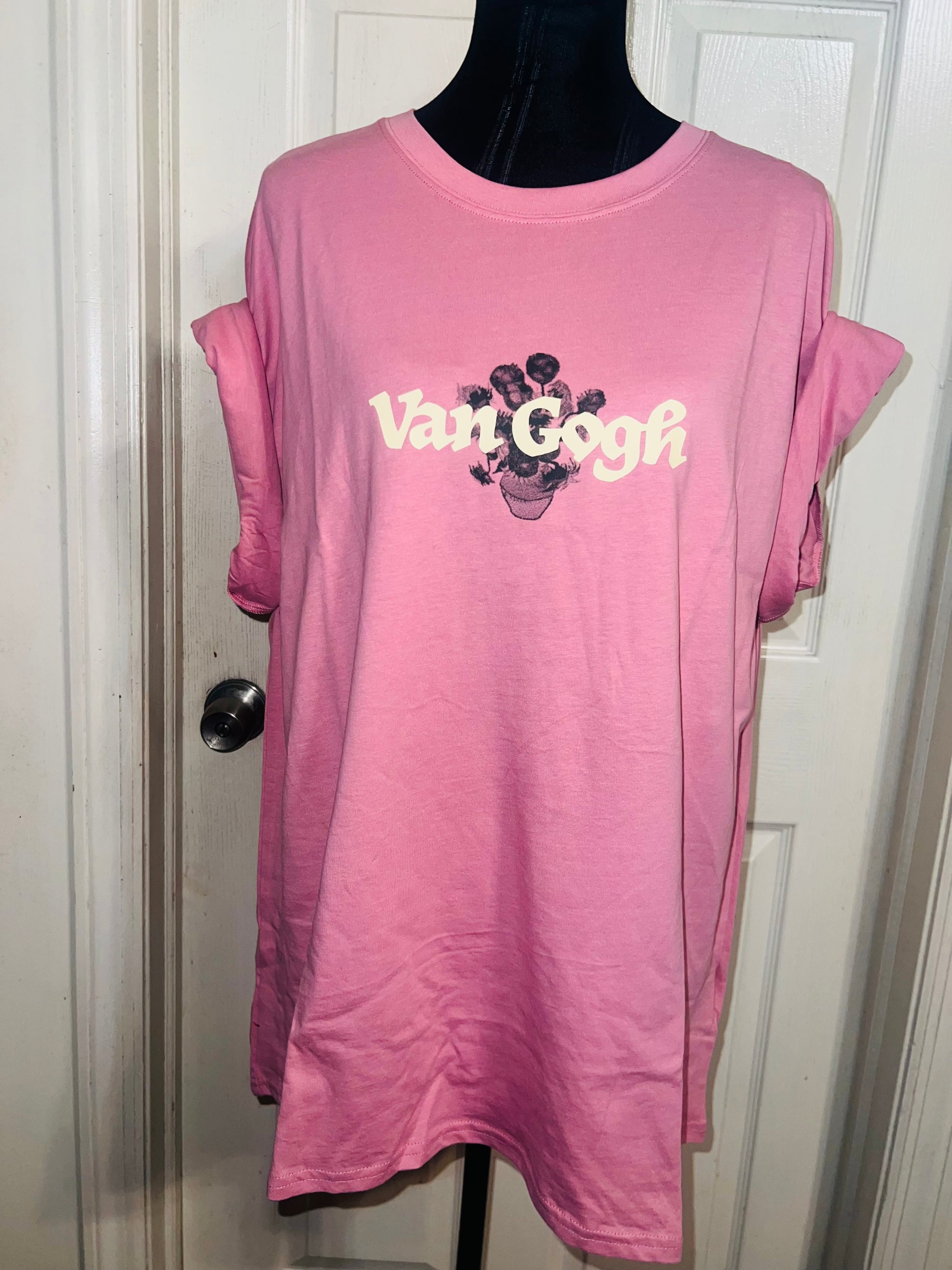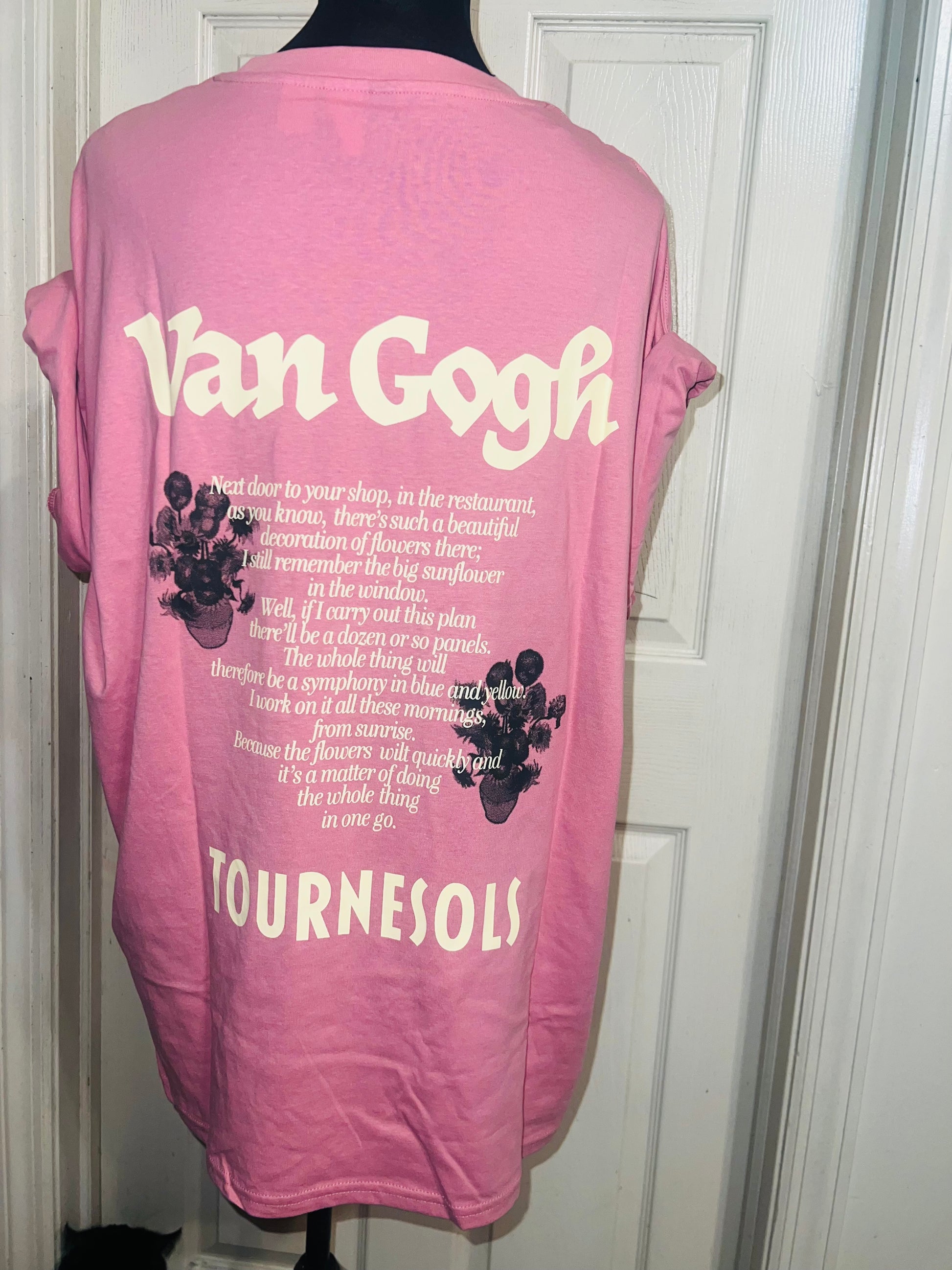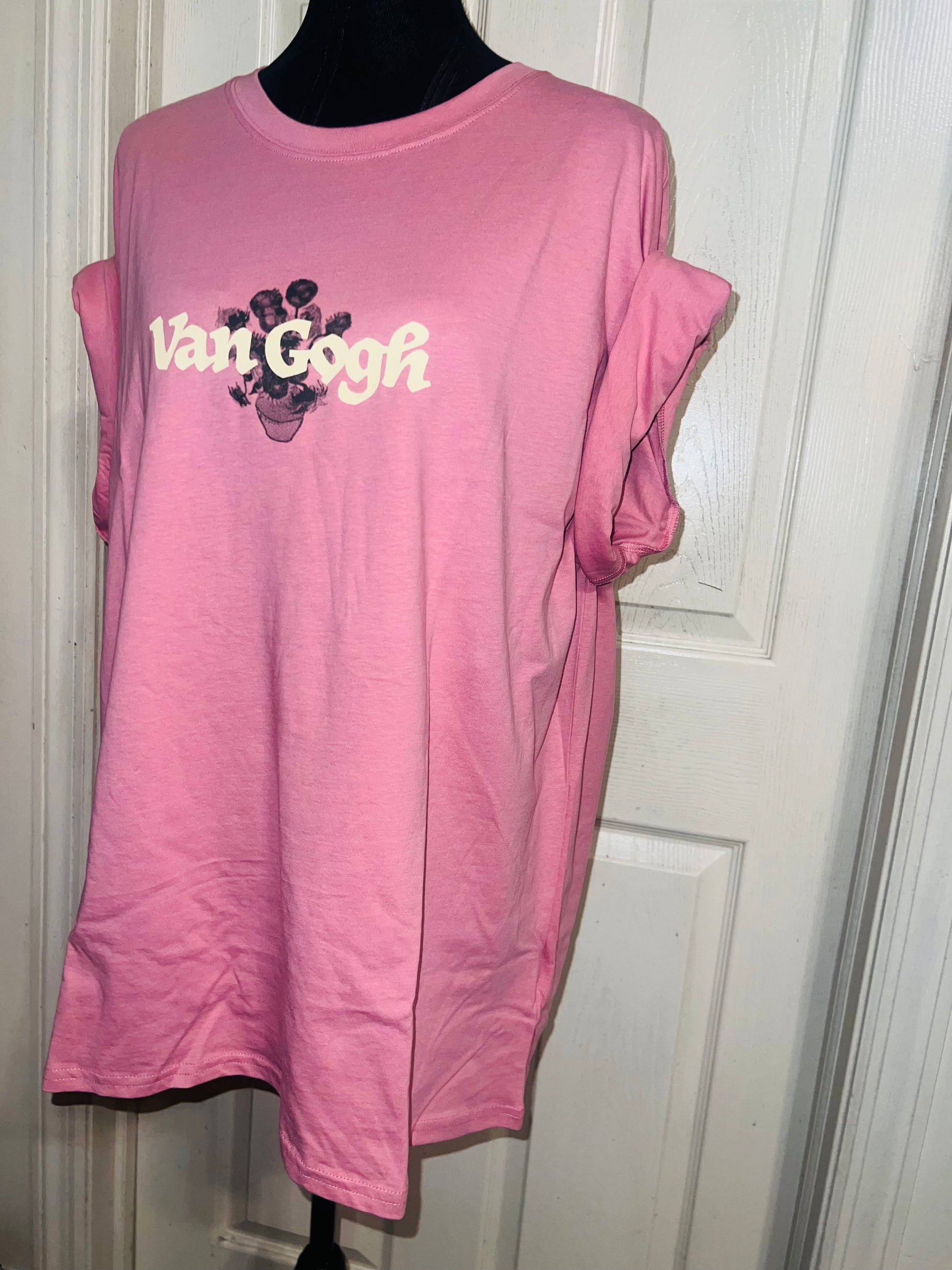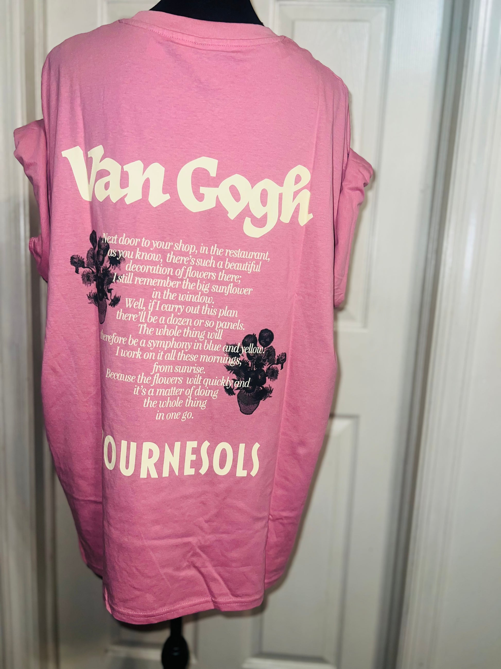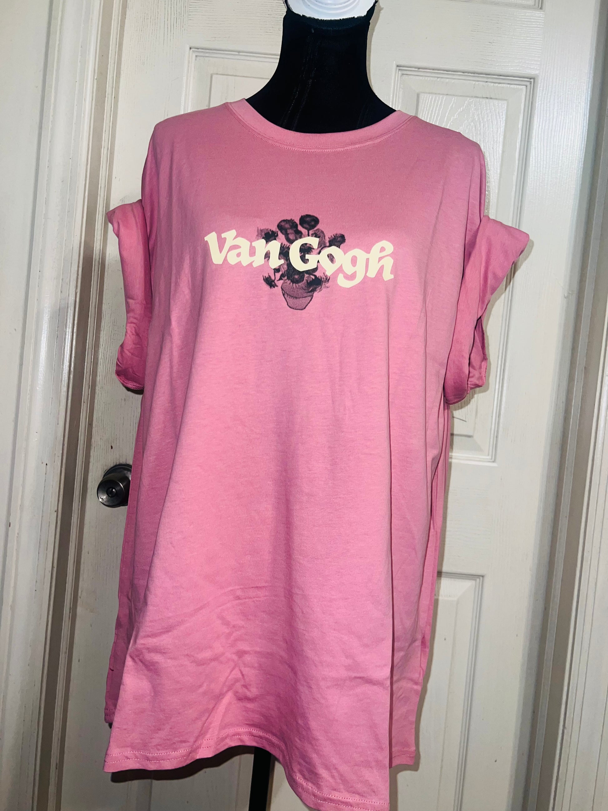 A pale pink double sided Vincent Van Gogh tee with drop shoulders. Tournesols writing on the back, so cute and unique. Size XL, oversized.