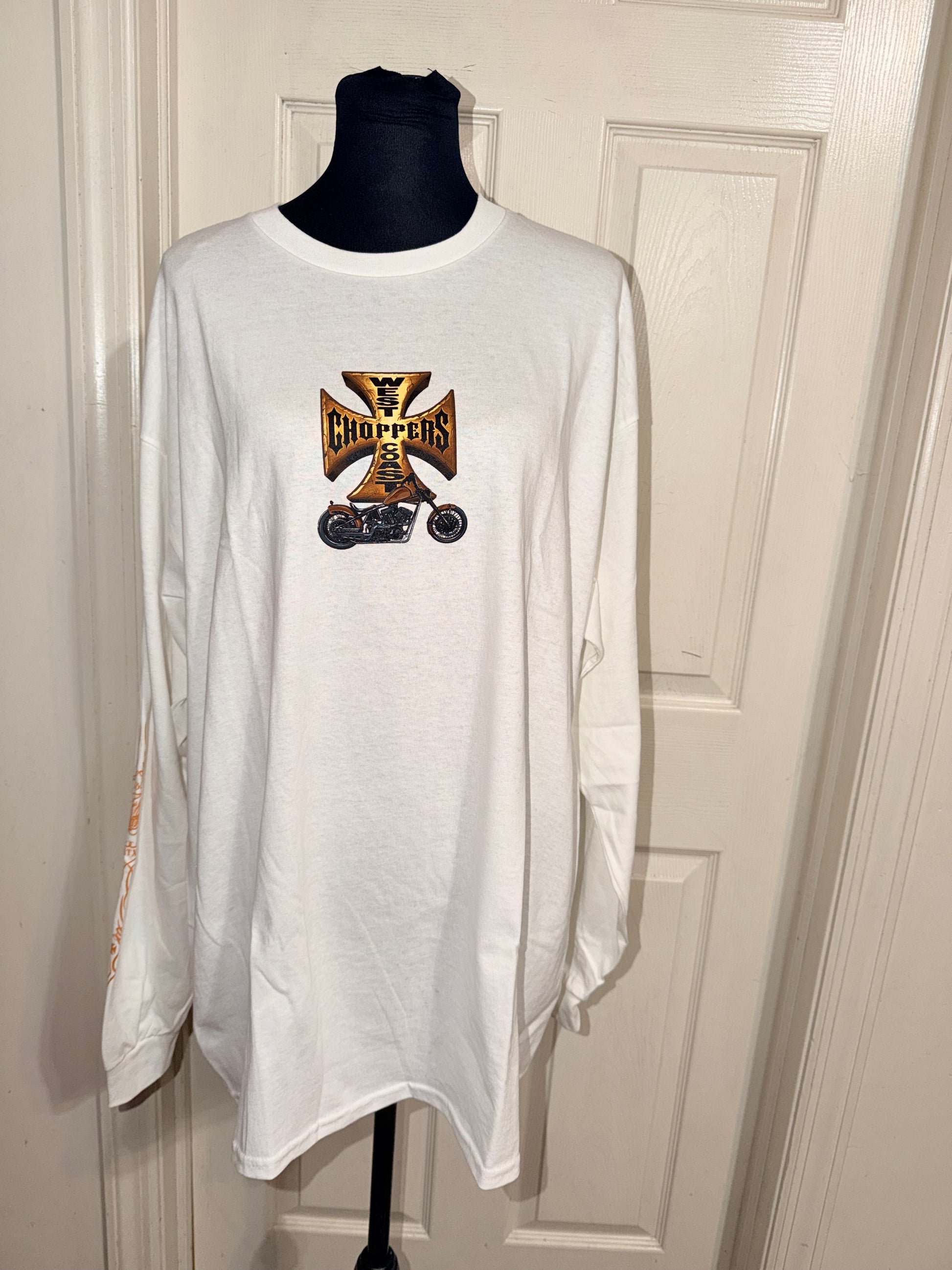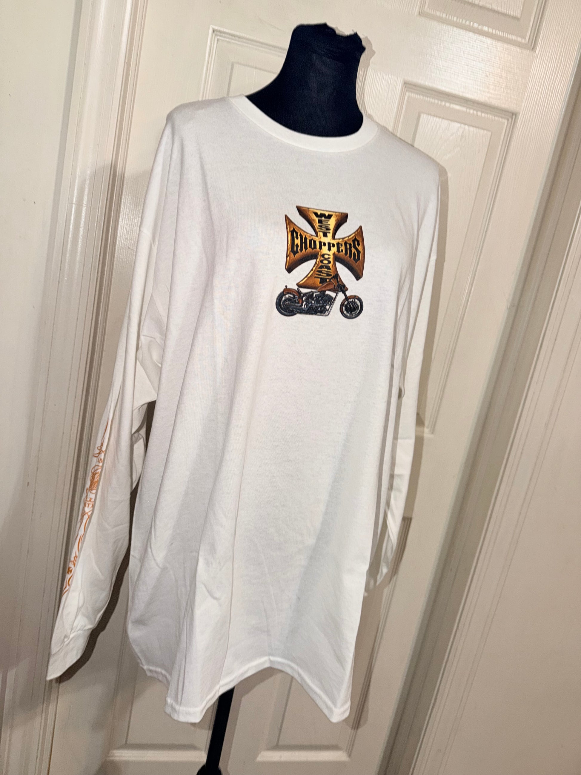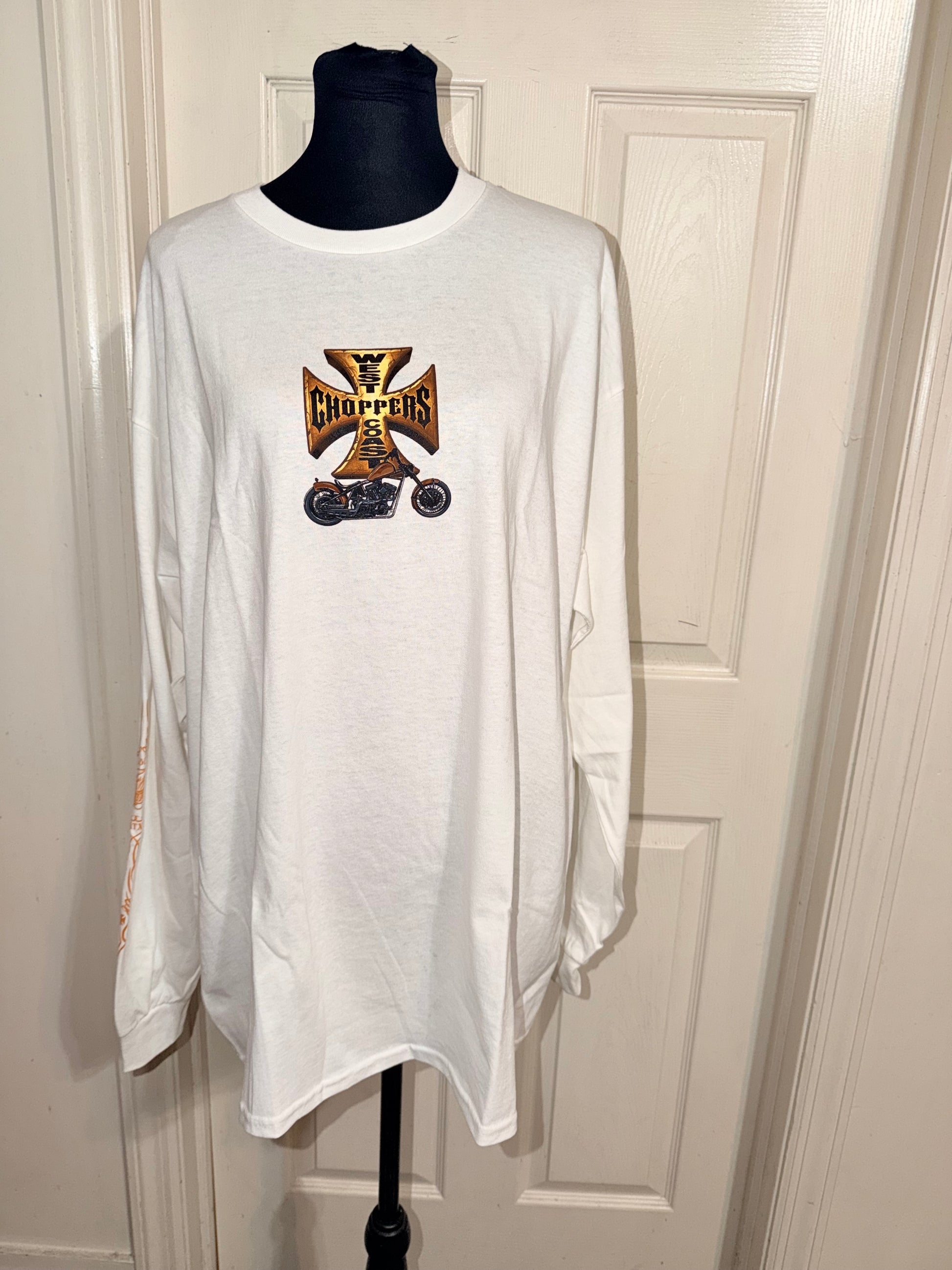 A super cute white West Coast Choppers long sleeve tee with a graphic down the sleeves, double sided and oversized.