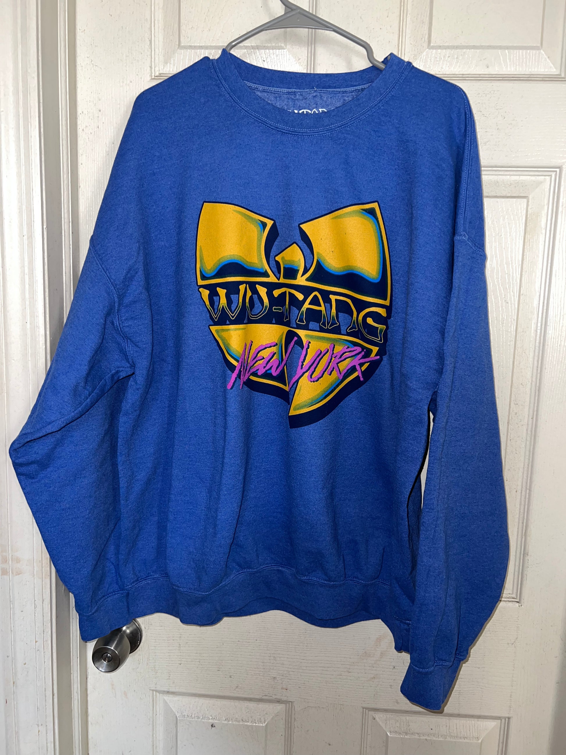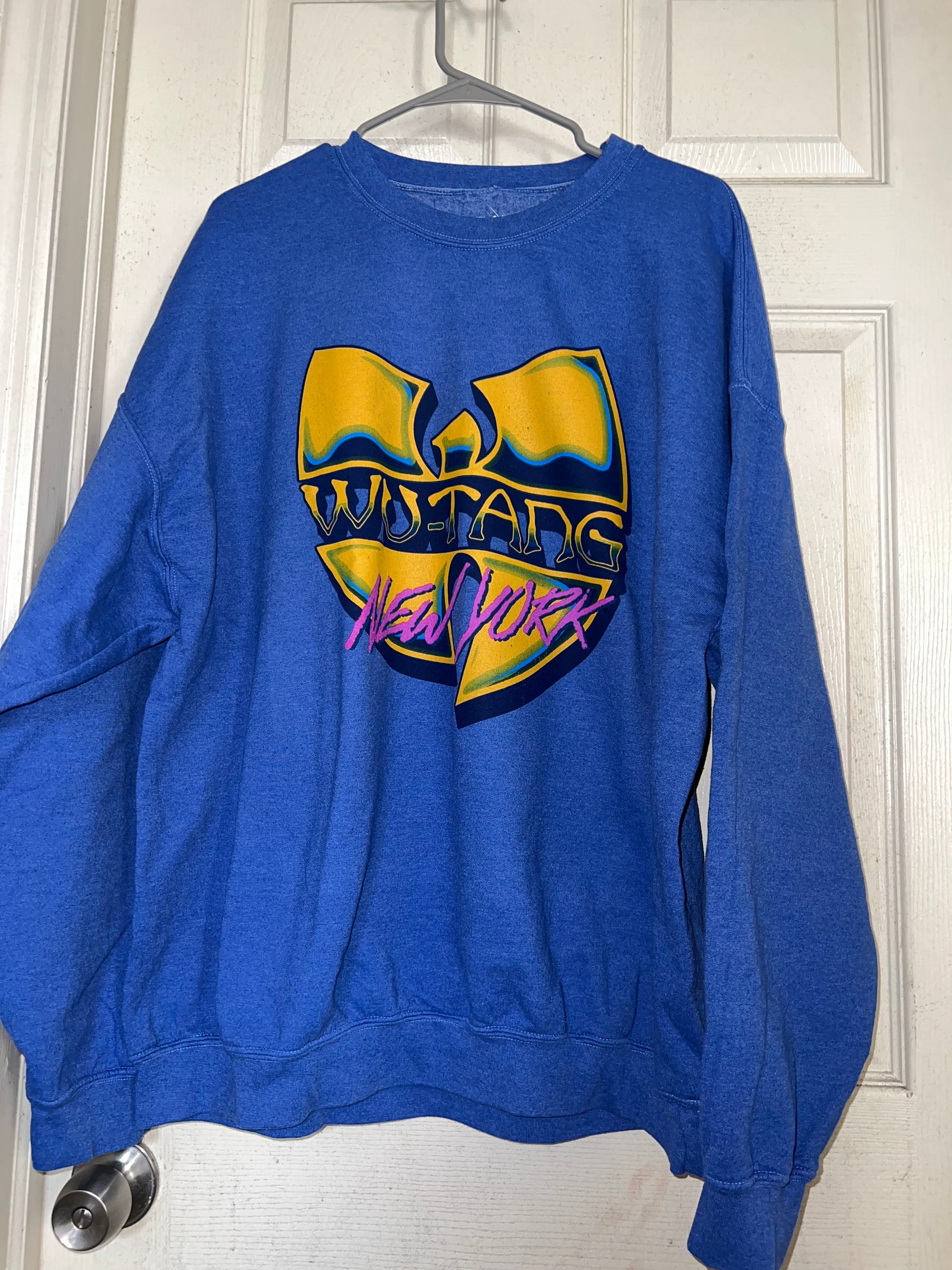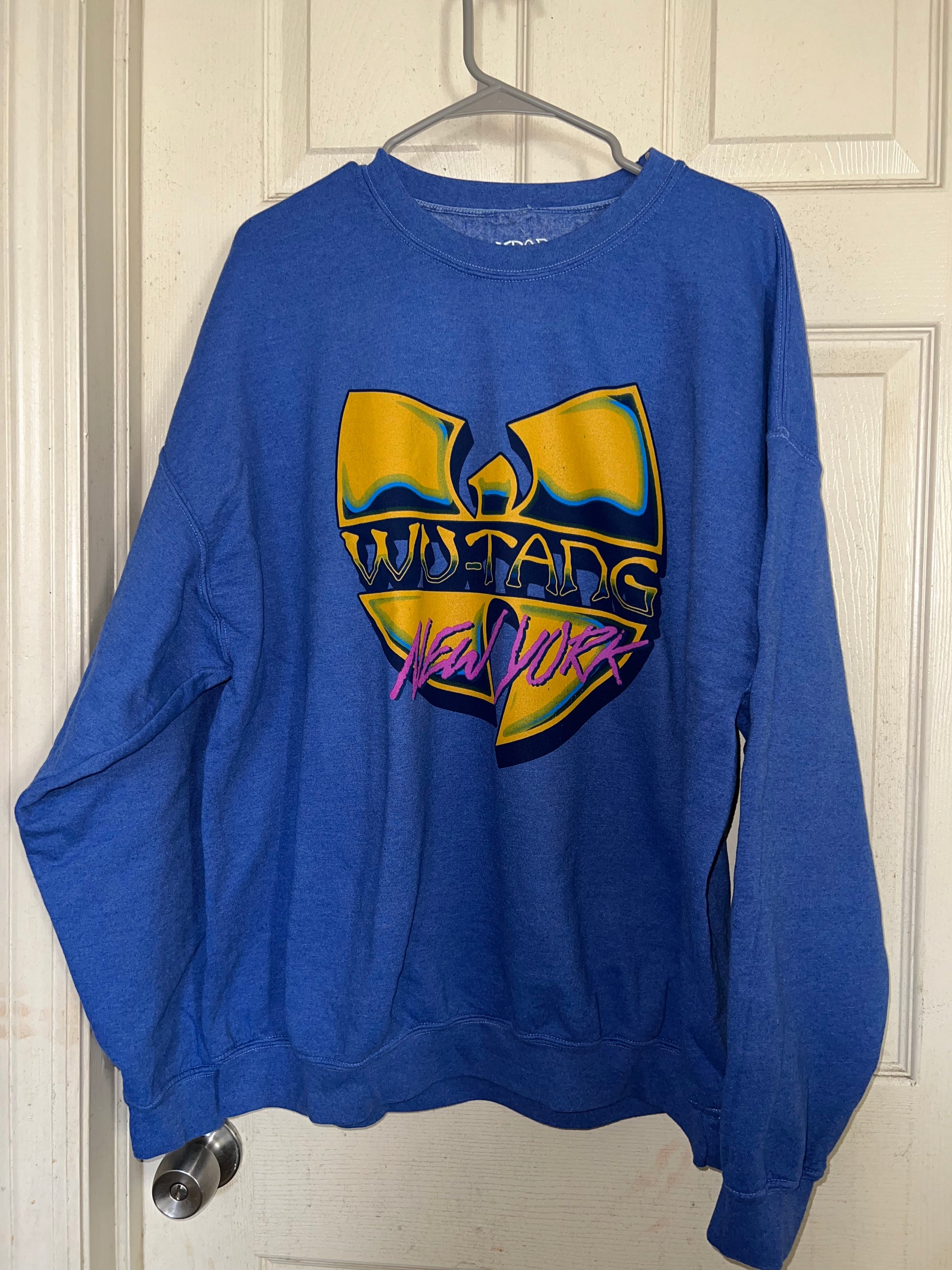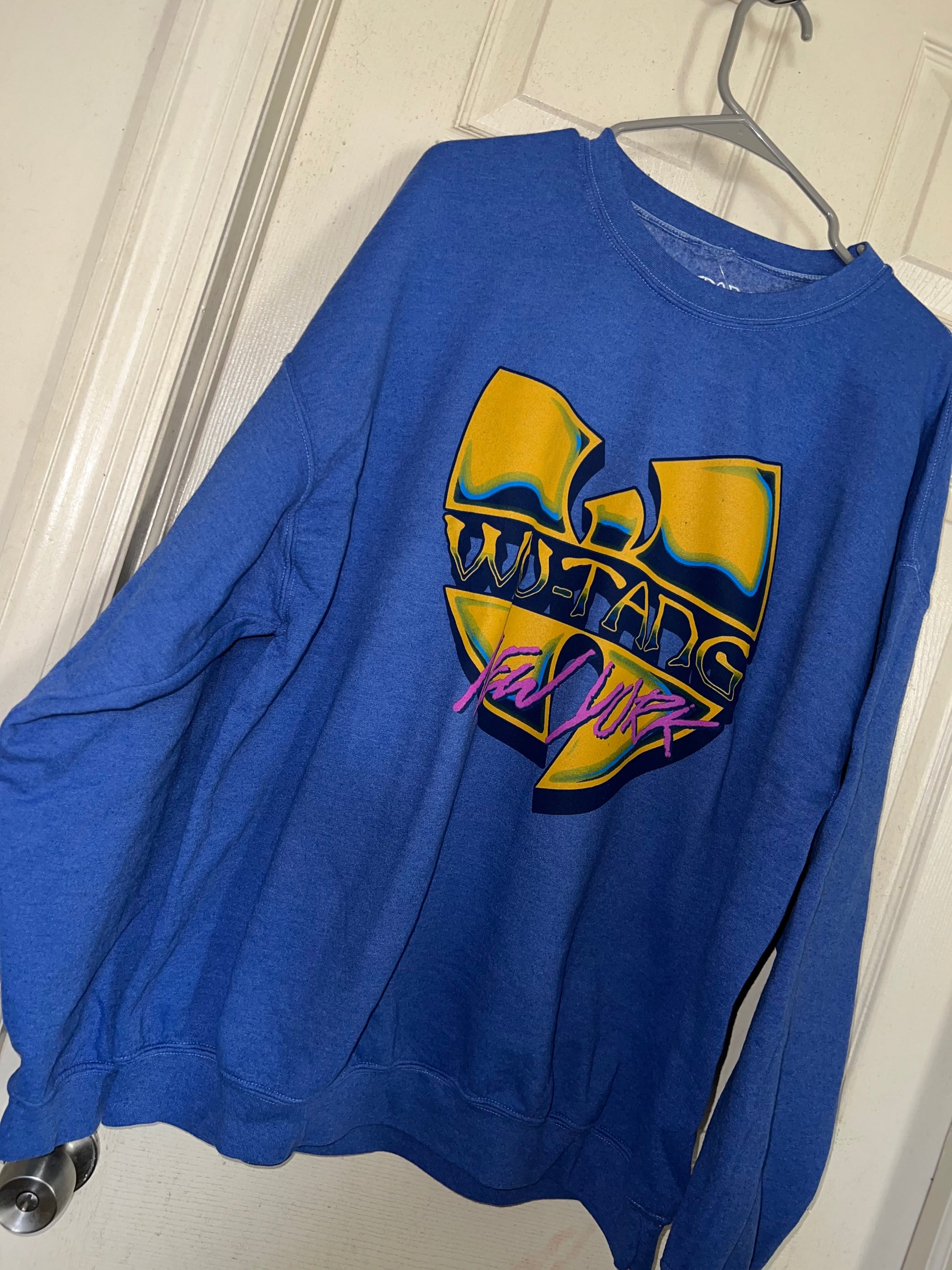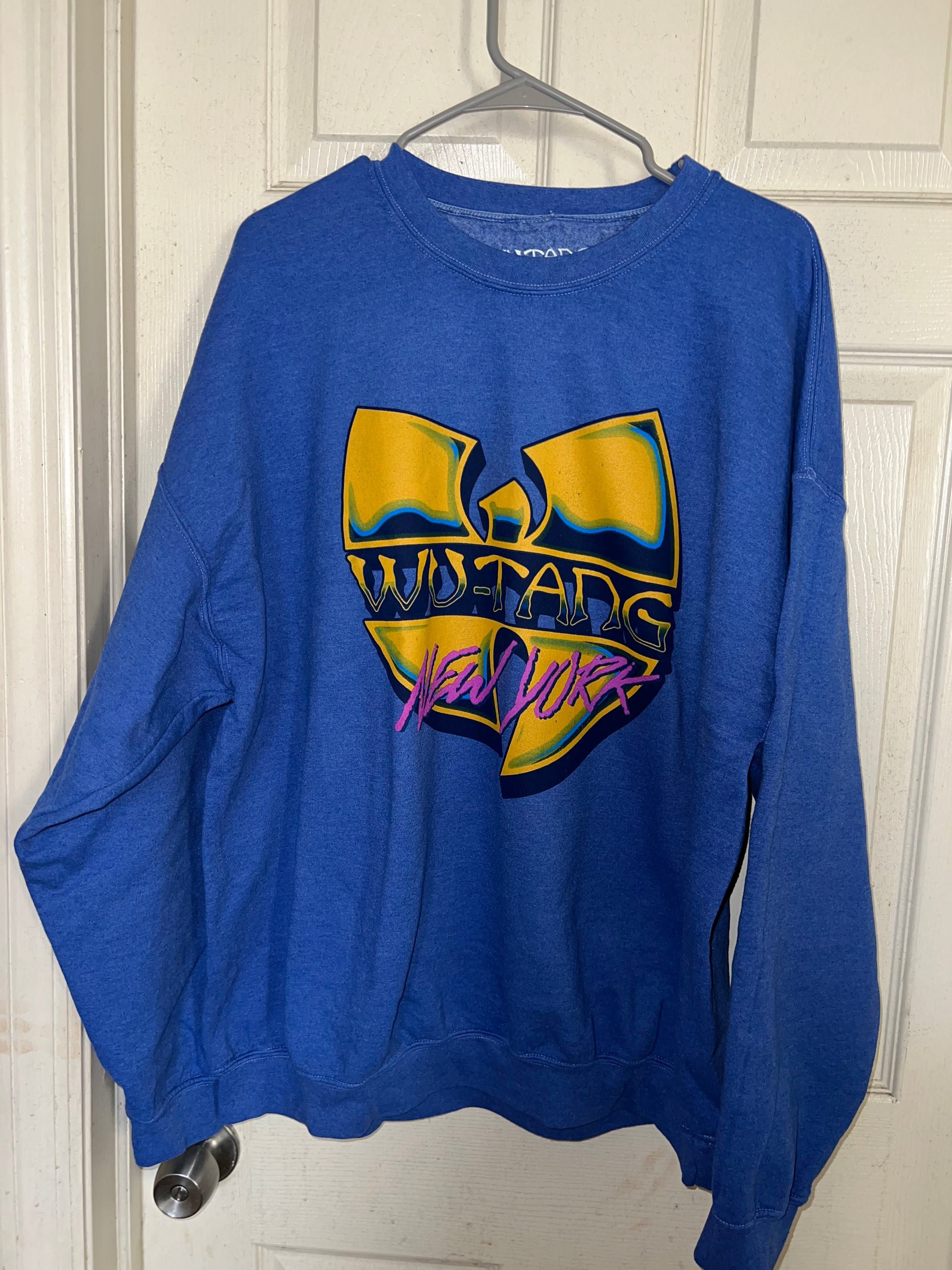 This is a preorder. A blue oversized Wu-Tanf sweatshirt. So very comfortable and so sick! Size XL.
