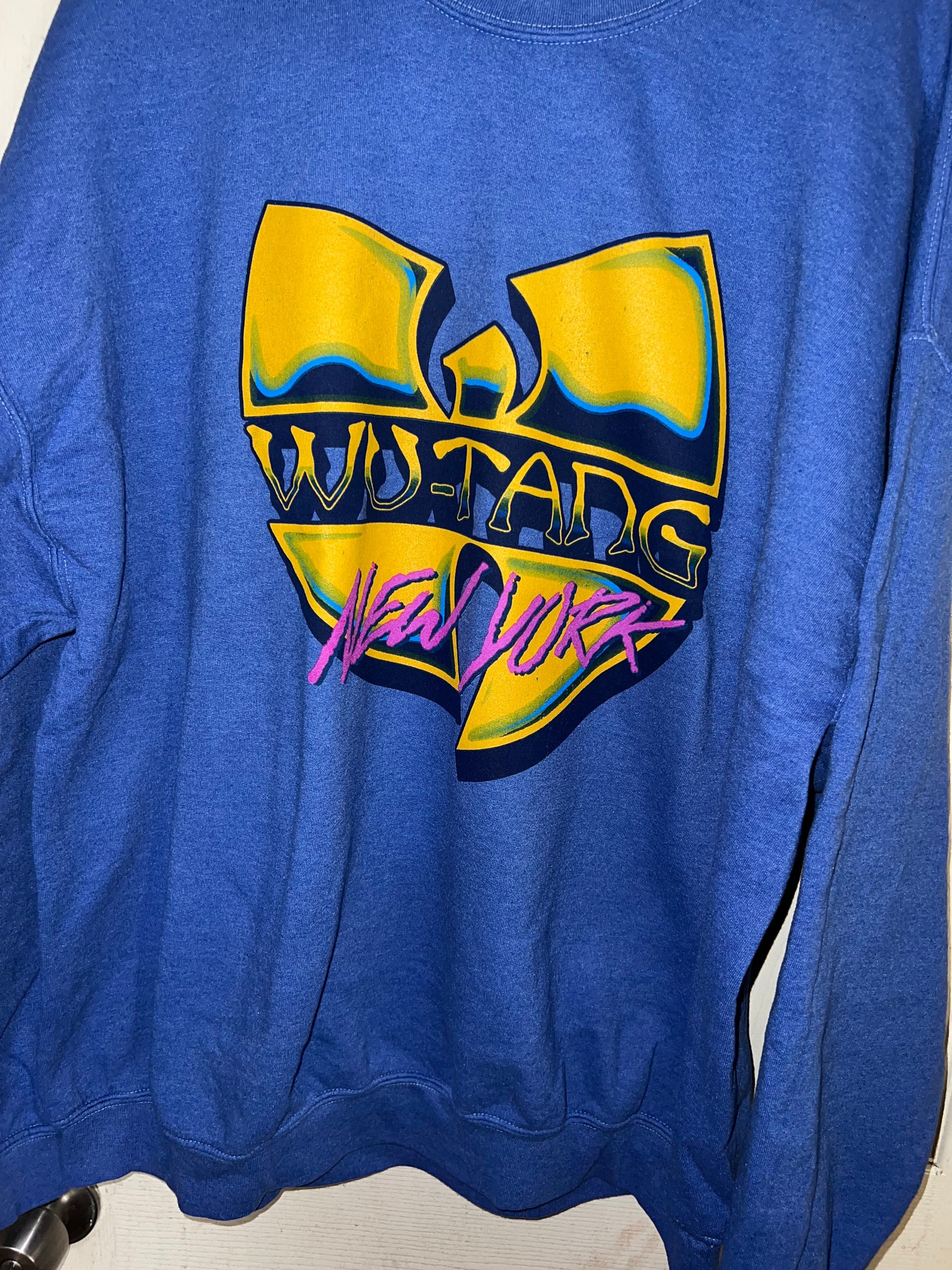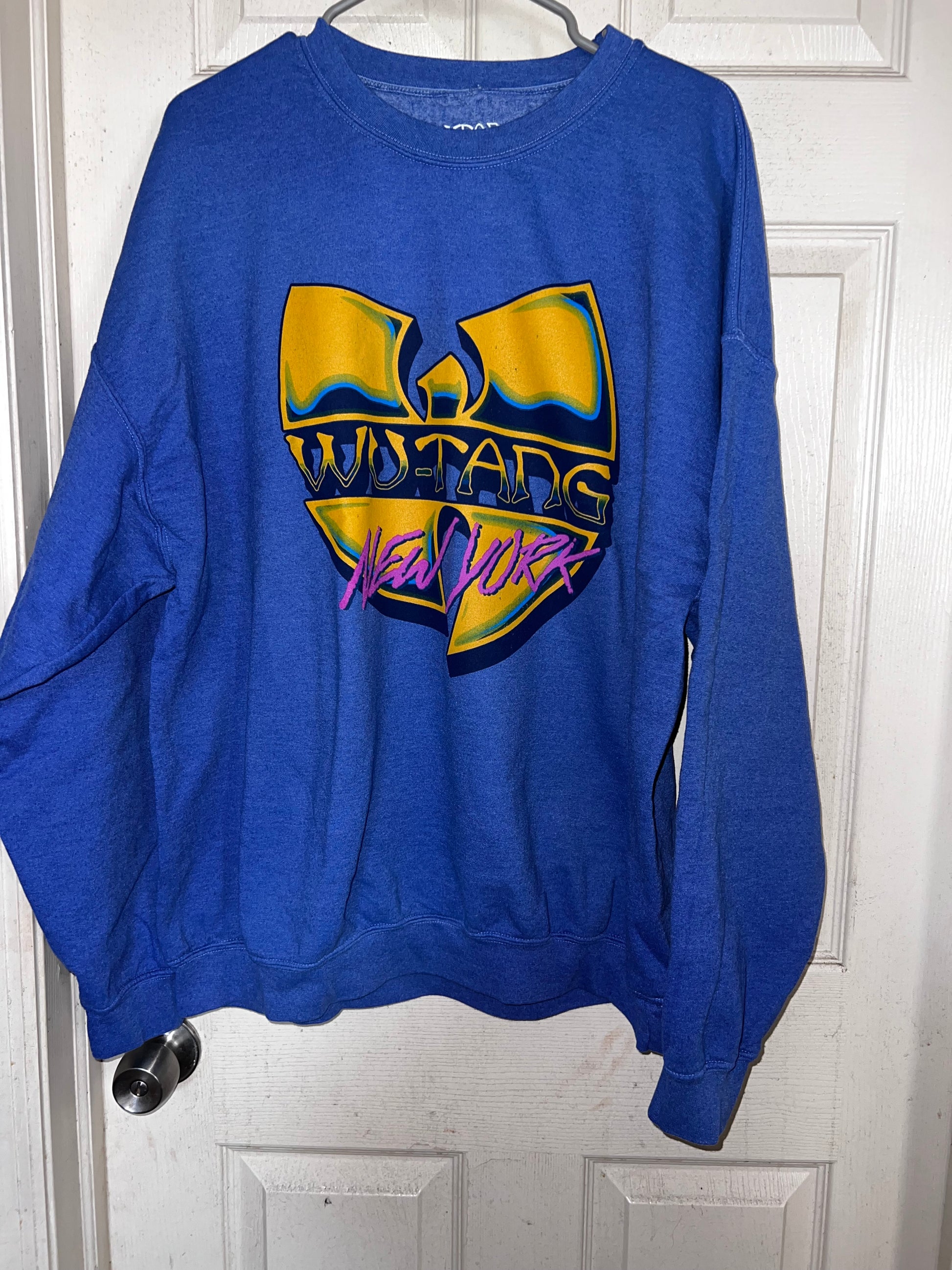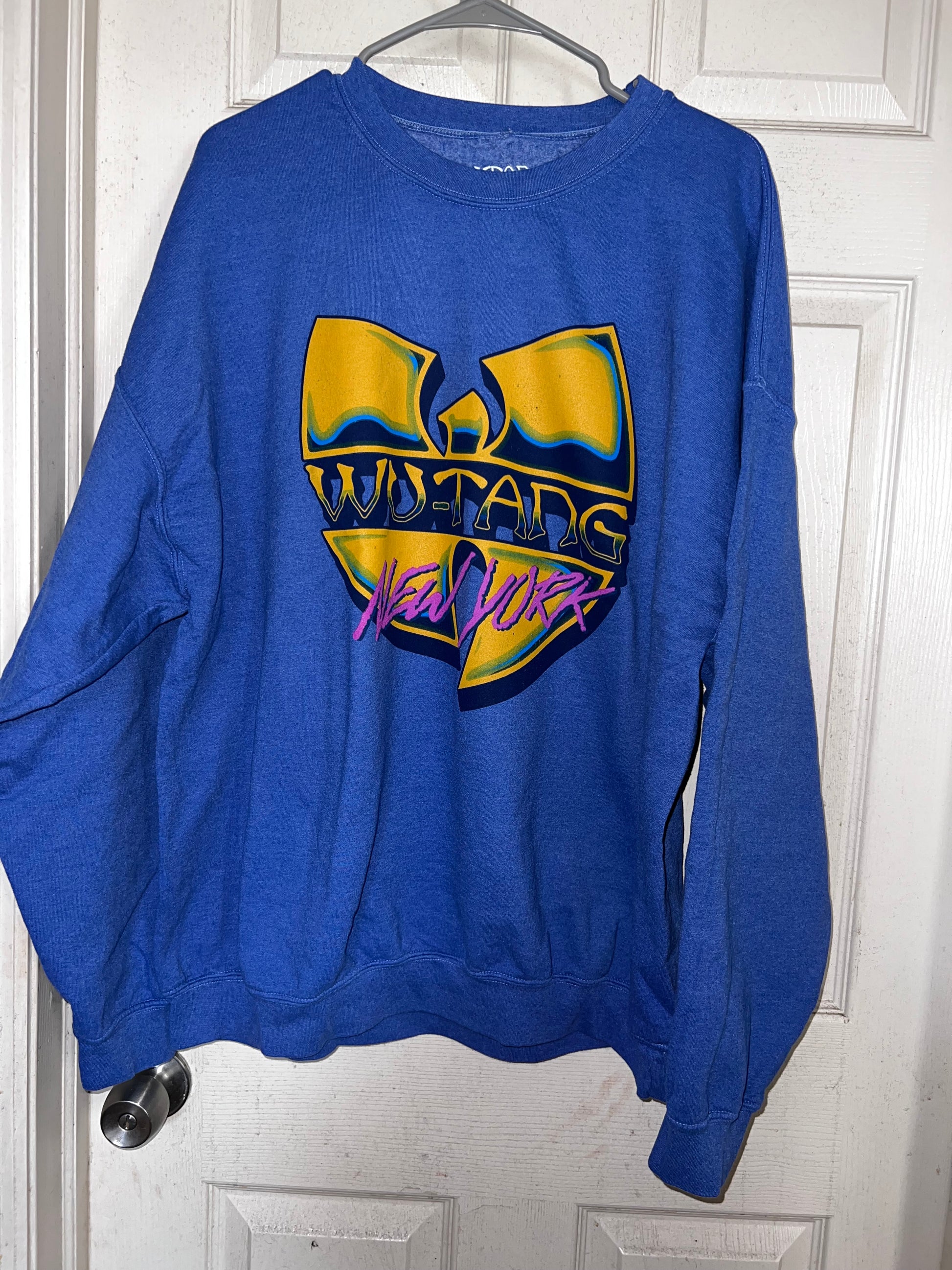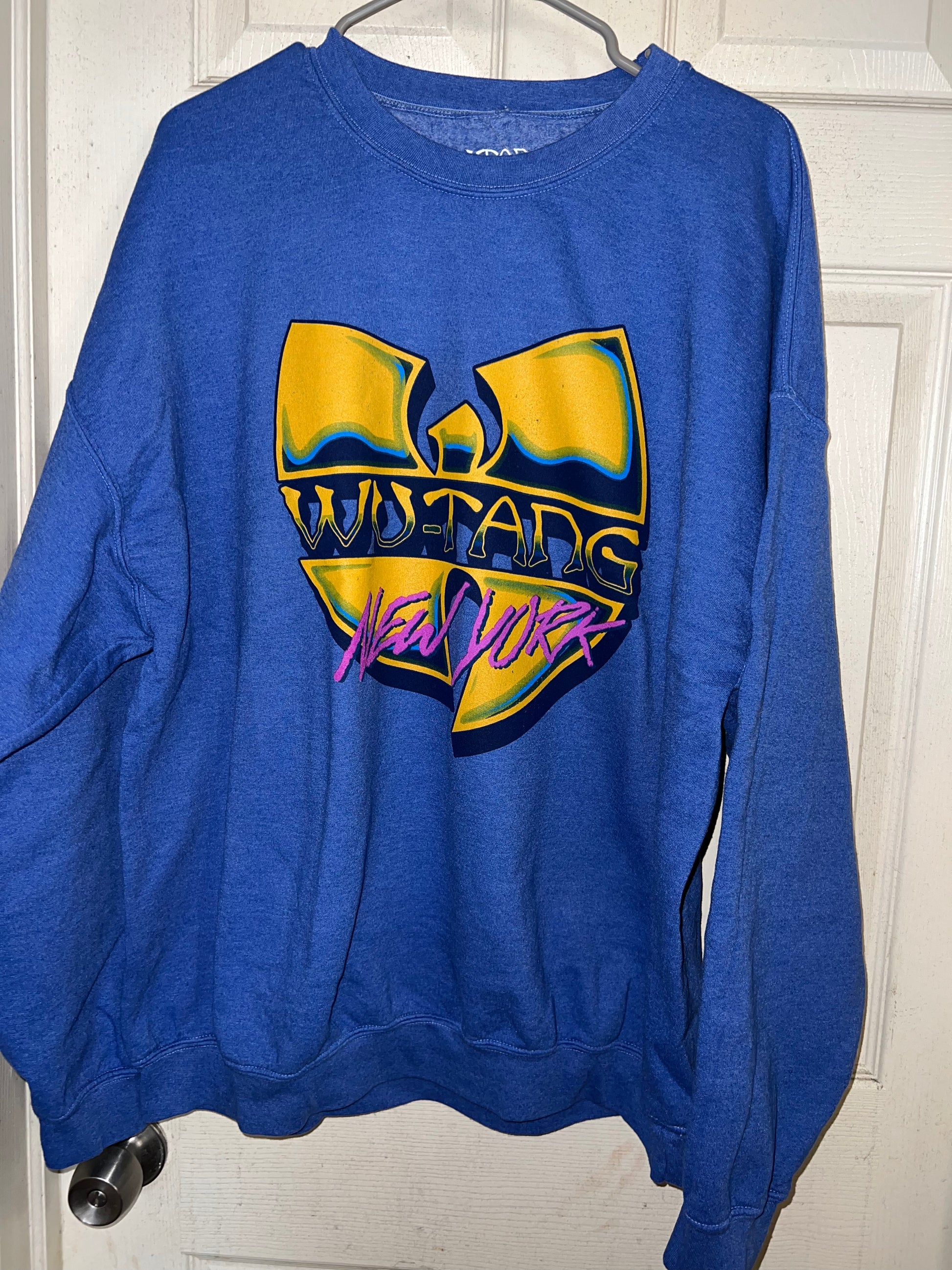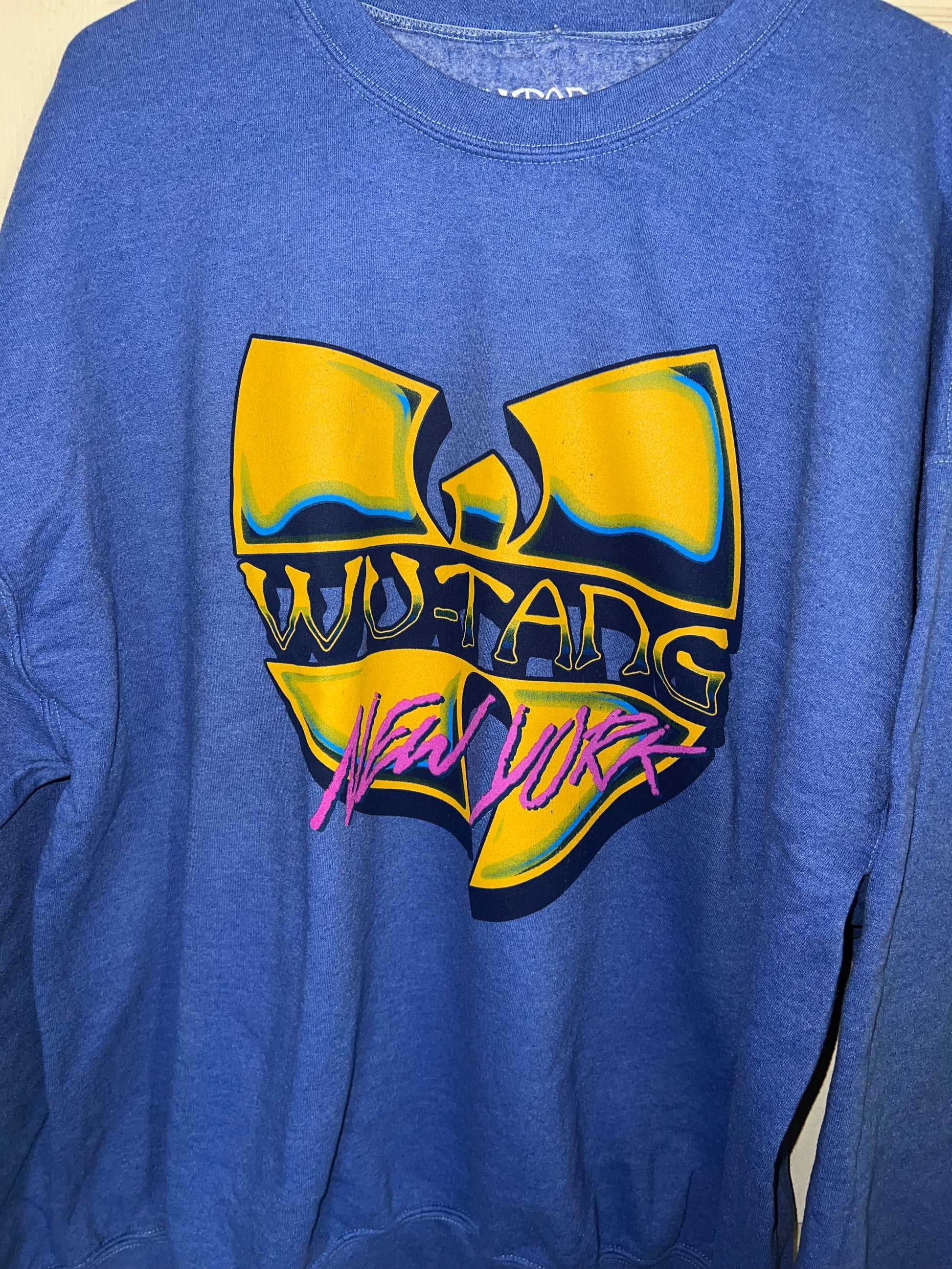 This is a preorder. A blue oversized Wu-Tanf sweatshirt. So very comfortable and so sick! Size XL.
